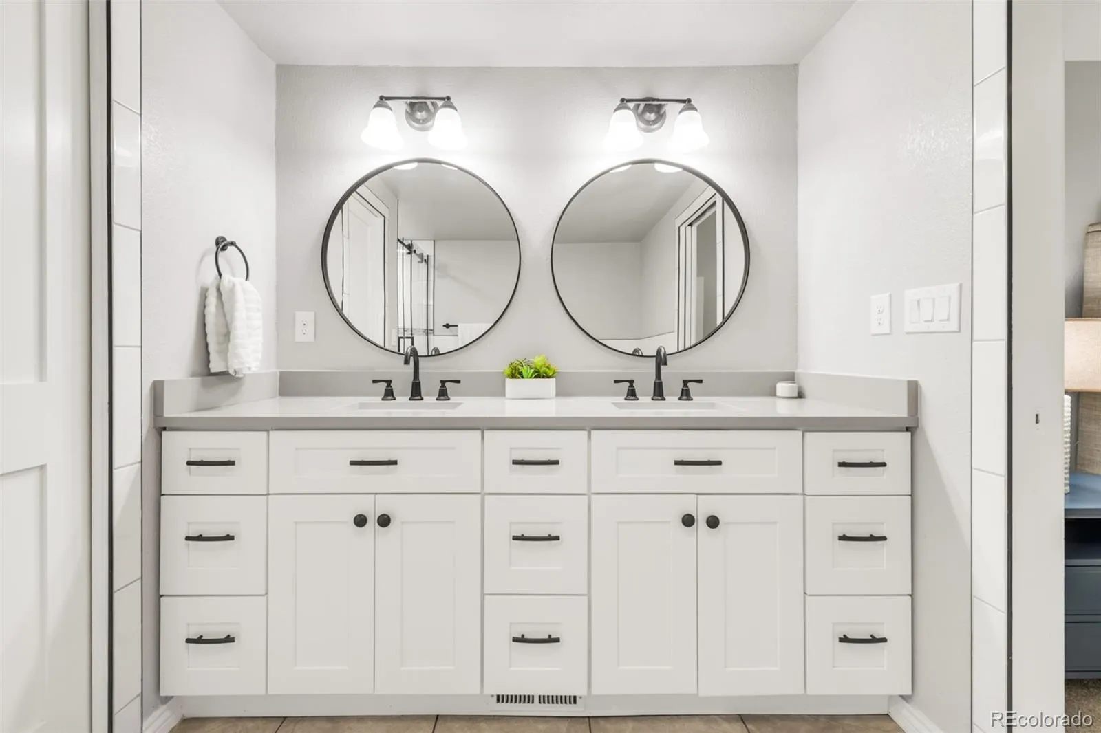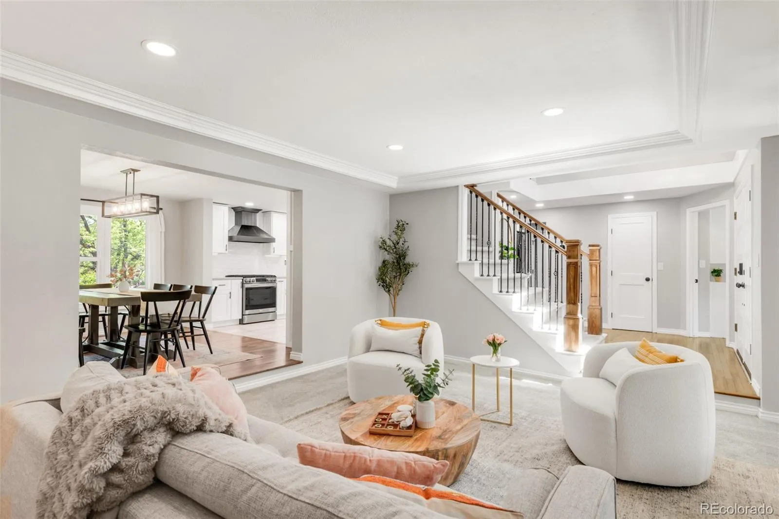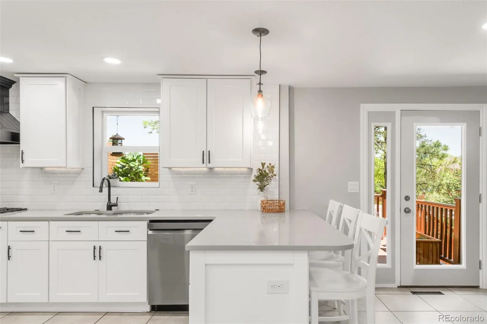 Timeless style and modern comfort are showcased throughout this beautifully updated home tucked in the coveted Heritage Greens community. An inviting covered front porch welcomes you into sunlit interiors, where all new windows, updated flooring and fresh paint enhance every corner. The formal living room flows into an elegant dining area, ideal for entertaining. A sleek kitchen features stainless steel appliances, all-white cabinetry and a peninsula with bar seating. The adjacent living area exudes warmth with a brick fireplace framed by custom built-ins. Upstairs, the generous primary suite impresses with vaulted ceilings, a large walk-in closet and a spa-like, 5-piece bath, while three additional bedrooms provide flexibility. The finished walkout basement adds a spacious rec room and a flexible fifth bedroom. Enjoy outdoor living in the expansive, fenced backyard with a deck and patio. Community amenities include a clubhouse, pool, 4 tennis courts, sand volleyball, soccer field, and ample open space — truly resort-style living. South Suburban golf course is steps away from this bubbling, active community, as well as Linksview Park.