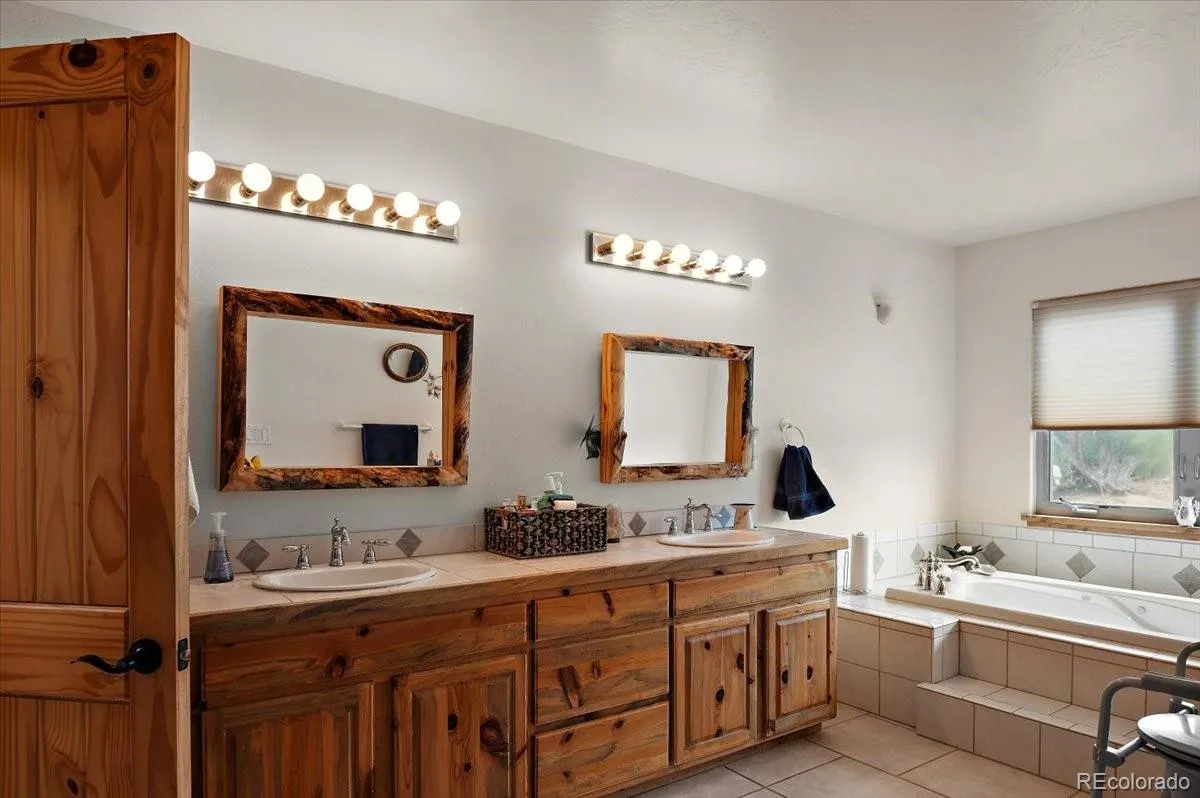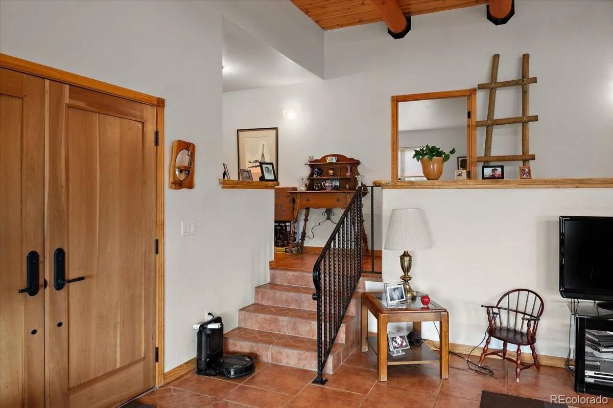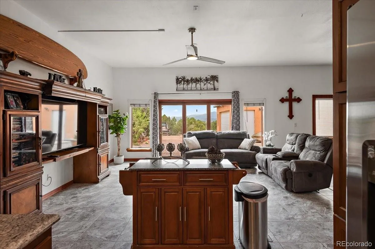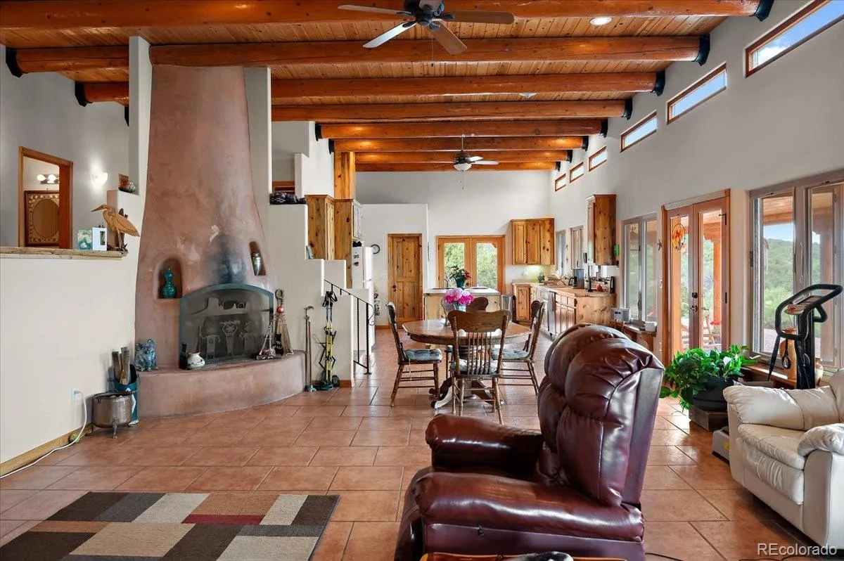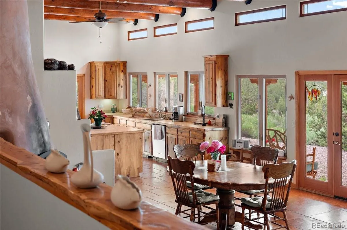 Views, views, views!!! Welcome to this custom home plus guest house on 42 acres backing to BLM land with gorgeous mountain views! As you approach the home you will notice the hand carved cherry front doors and wrap around covered patio. Entering the home you will notice the Douglas fir ceiling with wood logs and beautiful Kiva fireplace. Light and bright, this home offers an open floor plan with multiple windows and mountain views from every corner. The living room flows easily into the dining area and kitchen. Notice the custom Beetle kill wood cabinets, tile counter tops and pantry. The primary en-suite offers a gas fireplace and full bath with soaking tub, separate shower, double sinks and walk-in closet. Two other spacious bedrooms and full bath complete the home. There is also a 2 car garage on the property. The main home is 2522 square feet and has a domestic well and septic, gas forced air furnace and central air.