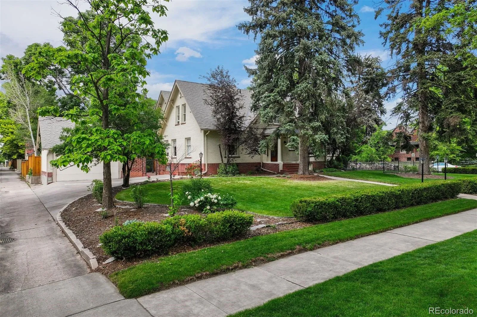 The Gem of Park Hill! Beautiful & charming home on sunny corner lot. Every room is warm, inviting and tastefully finished. Newer two story addition has a completely renovated kitchen/family room while the upper floor is a very private and quiet primary bedroom suite with 5-piece bath & dressing room style walk-in closet. Lovely landscaping with plenty of lawn and two brick terraces to enjoy easy outdoor living. Stunning architectural details include dark hardwood floors, picture windows, carrera marble, French doors, generous crown moldings, lots of built-in cabinetry, vaulted and beamed ceilings. Kitchen with two pantries opens to family room with fireplace and three sets of French doors opening to brick patio with pergola. European style hutch and 6 burner Wolf stove anchor the kitchen. Plenty of space for casual dining. Gorgeous living room with wood burning fireplace faces south and opens to sunroom and dining room. Butlers pantry is beautifully functional with built-in cabinetry, marble counters, sink, and wine fridge. Large mudroom with lots of storage. Master bedroom suite is private and only steps from the second floor laundry room.