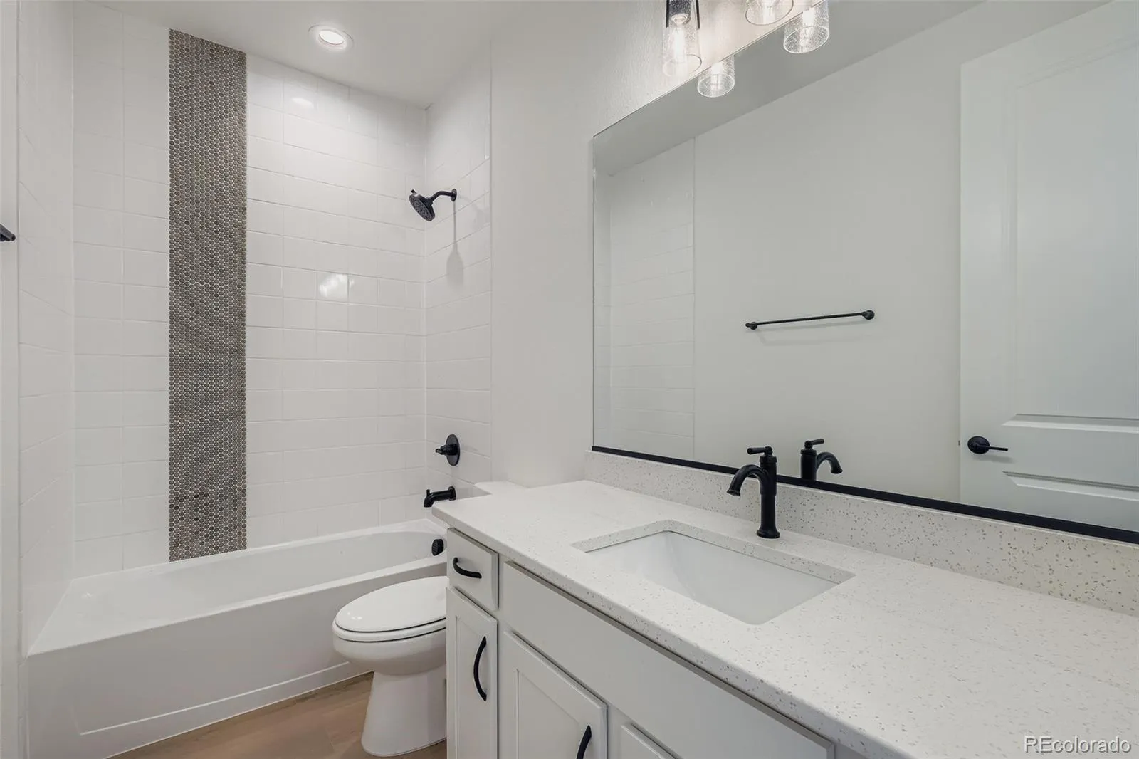 This charming ranch-style home, located in a quiet cul-de-sac, features an open concept design with 4 bedrooms, 3 full baths, and a 3-car garage. The heart of the home includes a spacious family room, dining area, and gourmet kitchen, perfect for entertaining. The kitchen boasts upgraded cabinets, an island, and high-end stainless steel appliances. The cozy family room highlights a floor-to-ceiling fireplace and large windows that fill the space with natural light. The main level also offers a convenient laundry area, a main bedroom suite with dual vanities, a soaking tub, and a walk-in closet, along with a guest bedroom and full bath. Downstairs, the finished basement offers a large rec room, two additional guest bedrooms, and a full bath, along with a beautiful wet bar. Throughout the home, you’ll find upgraded countertops, fixtures, and custom closets with shoe racks. Other features include a tankless water heater and a 96% efficient furnace. This home is located next to Sand Creek and has great access to the trail system in Sterling Ranch! THIS HOME INCLUDES FULL LANDSCAPING AND FENCE!