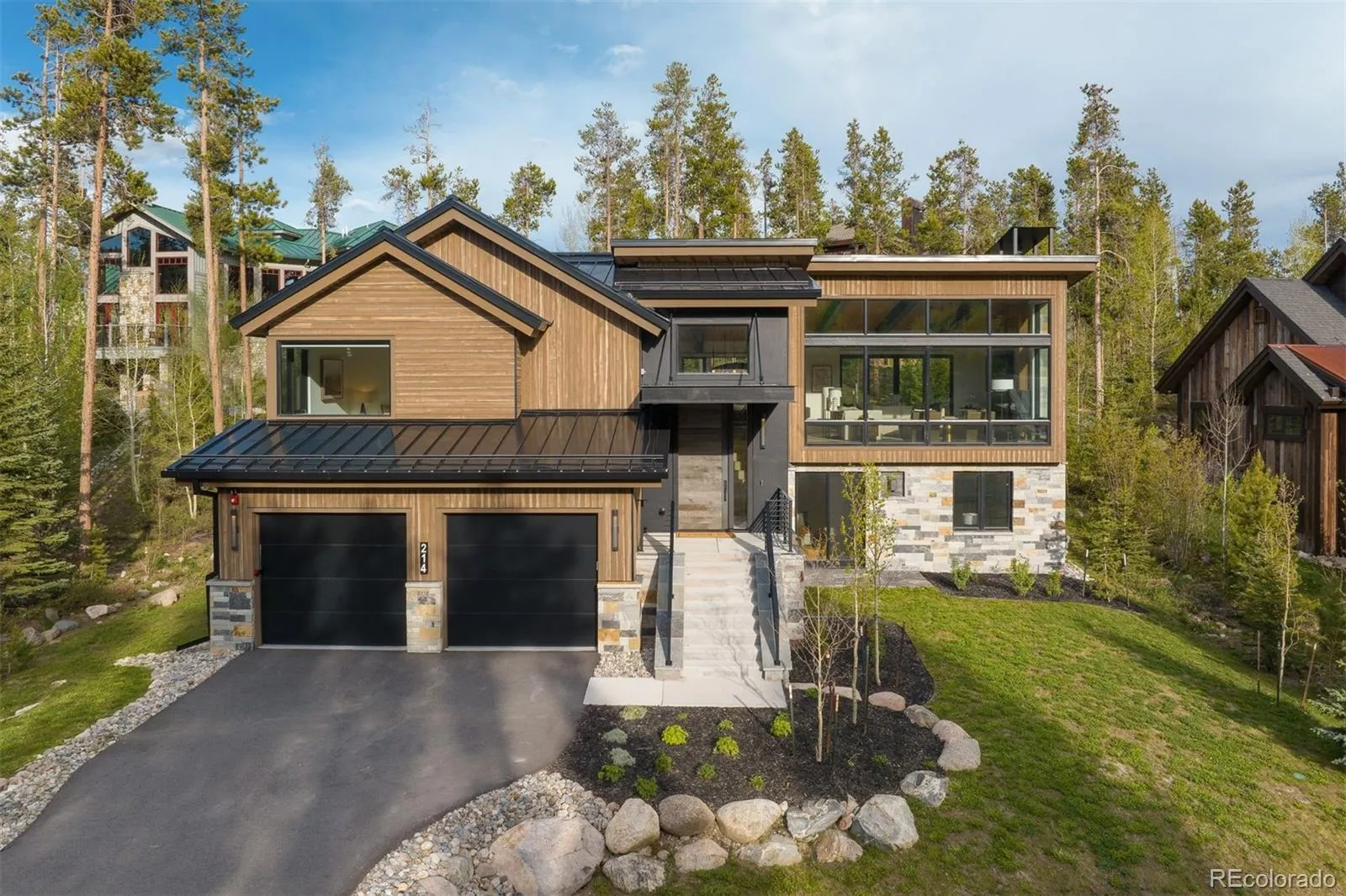214 Windflower Lane welcomes you! A stunning, brand-new, high-end custom home with 5 bedrooms/5.5 bathrooms is located in the prestigious Reserve at Frisco. This luxury mountain contemporary home is a showcase of exceptional design and expert craftsmanship — a true one-of-a-kind offering in the heart of Summit County. With unobstructed views of Mount Royal and peaceful open space, the home is perfectly positioned to take full advantage of its breathtaking surroundings. Expansive windows flood the interior with natural light and frame the dramatic alpine scenery from nearly every room. Custom tile and hardwood floors throughout the home add to the elegance. The kitchen is built with the dreams of top chefs – Sub Zero and Wolf appliances make cooking a magical experience! For your listening pleasure – High Fidelity Sonos audio system in great room, family room, kitchen, office, owner’s bedroom, and bathroom. While a metal roof offers protection from above, custom shiplap siding and high-end windows keep the elements outside. Speaking of the outside – location location location! Views for miles and centrally located in the middle of everything! The home is move-in ready, and allows the new owner to step in and experience this amazing treasure on Day 1.