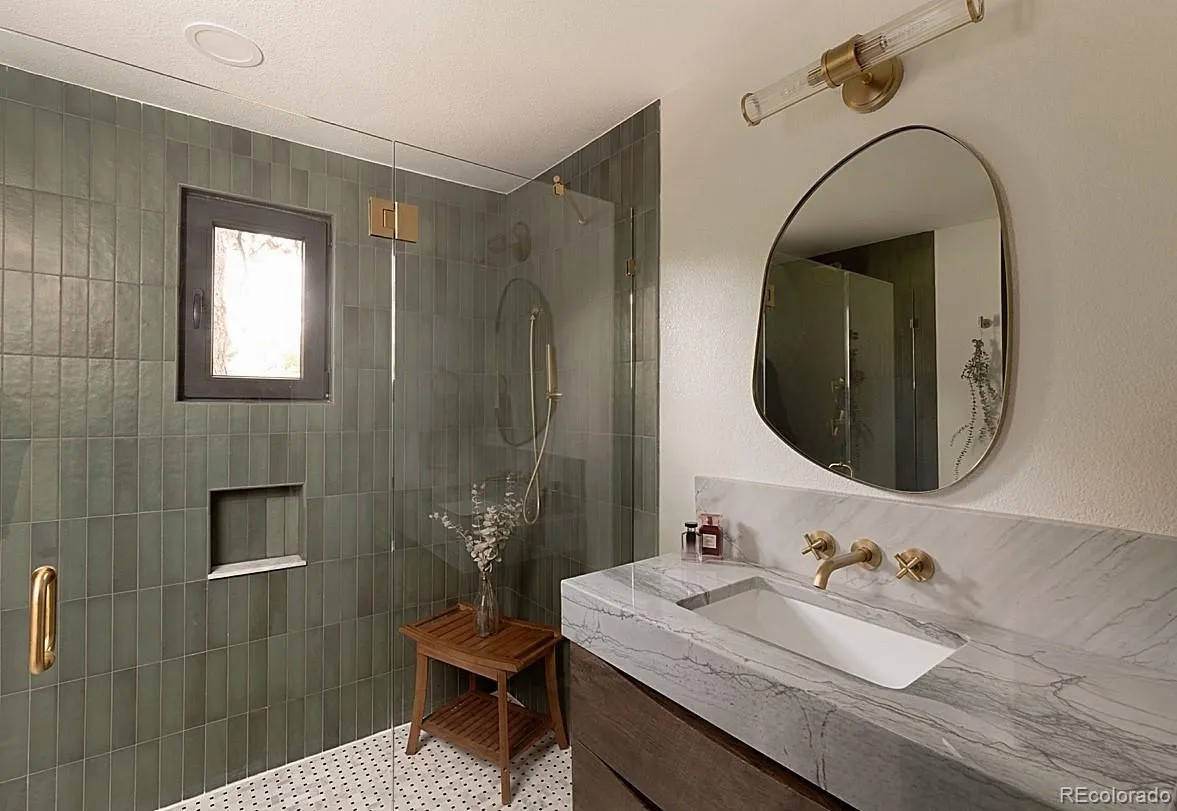 First image is a design rendering to help show the potential with new exterior materials (GC cost estimate for the design rendering will be available by 9/18/25). This posh and refined Cherry Hills Village home has been fully renovated to the studs with an addition to stand out as a rare turn key home under $2.5mm that feeds to Cherry Hills Village Elementary. Located within the desirable Mansfield Heights Subdivision of Cherry Hills Village, this property is positioned directly across from the neighborhood entrance to the High Line Canal Trail System with lush trees and privacy, creating a serene sense of peace and tranquillity. The elegant exterior is reminiscent of a New York Brownstone that compliments the sophisticated interior with exceptional design details inside and out. This renovation includes brand new HVAC systems, electrical, plumbing, a new standing seam metal roof, and a custom egress excavation for basement daylight making every room of the home feel spacious and usable. Situated on a corner lot, the yard layout is ideal for adult entertaining as well as family enjoyment for the kids with ample outdoor space and privacy from neighbors. This custom residence was fully reimagined as the owner’s forever home, and should genuinely be experienced to appreciate its combination of fashionable design, love, and charm.