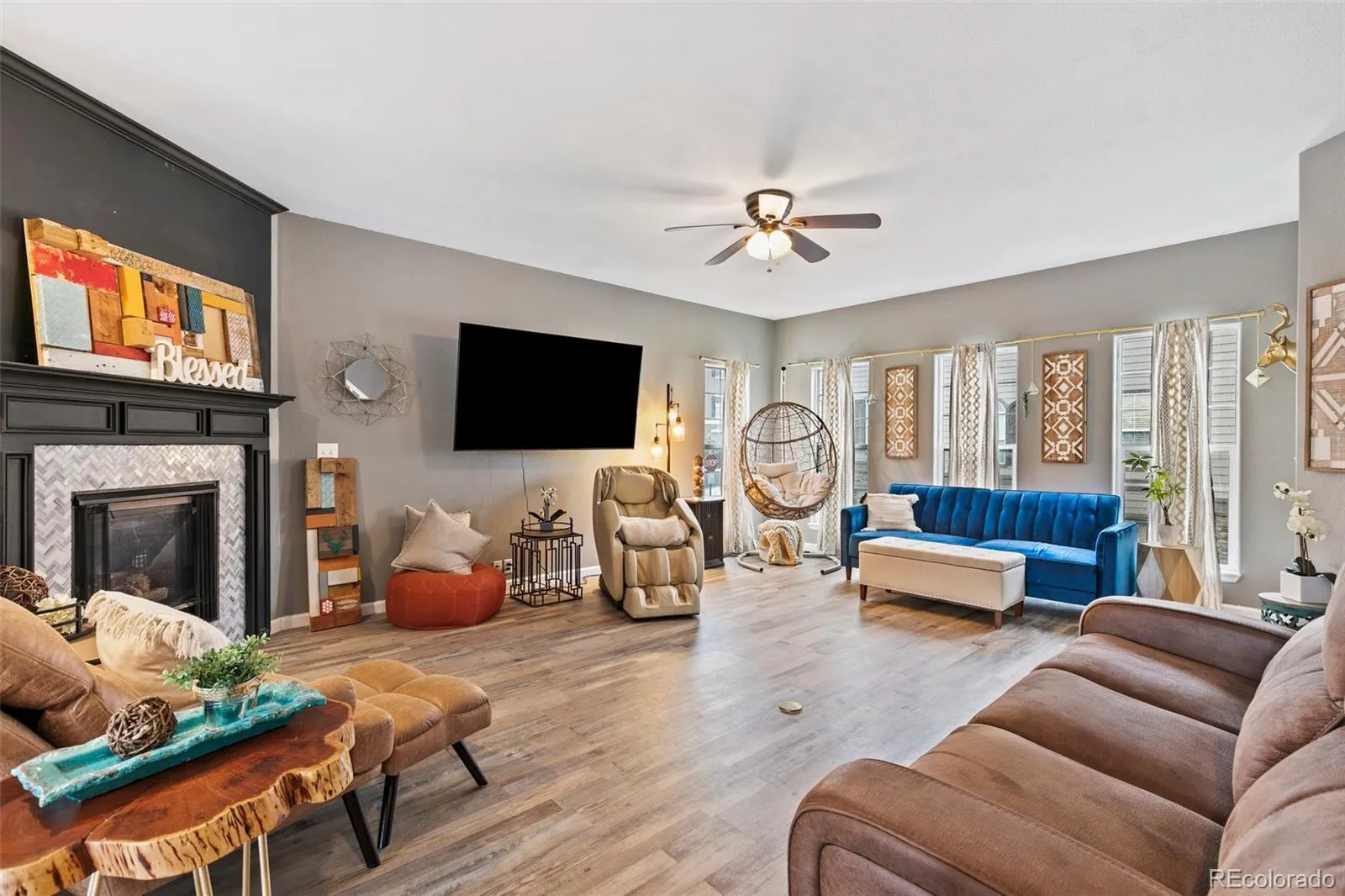 Welcome to your dream Colorado townhouse at 997 Burning Bush Point in Monument! This move-in ready, end-unit home features 4 bedrooms, 4 bathrooms, and nearly 1,900 sq ft of bright, modern living space. Enjoy panoramic mountain and city views from your private walk-out deck—perfect for grilling or morning coffee. The open-concept kitchen/dining/living level offers a spacious living room with a cozy gas fireplace, new luxury vinyl plank flooring, and brand new carpet throughout. A perfectly placed half bath rounds out this level. With windows cascading light throughout, this is one of the most inviting spaces you will find.