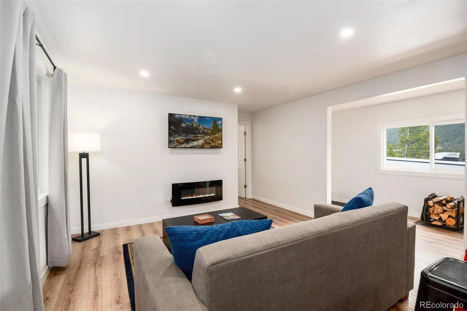 Experience the best of mountain living at 192 Little Creek Rd—a fully remodeled 3-bedroom, 2-bathroom home offering affordable comfort in the heart of St. Mary’s Glacier. With an open concept floor plan, this home is designed for easy living and maximizing your time in the mountains. The spacious kitchen features butcher block countertops and a kitchen island with seating, perfect for both cooking and entertaining. The cozy living room includes an electric fireplace and wood-burning stove, creating a warm and inviting atmosphere to unwind after a day of outdoor adventures. The primary suite offers a private ensuite with a large shower and rainfall showerhead, ideal for relaxing.