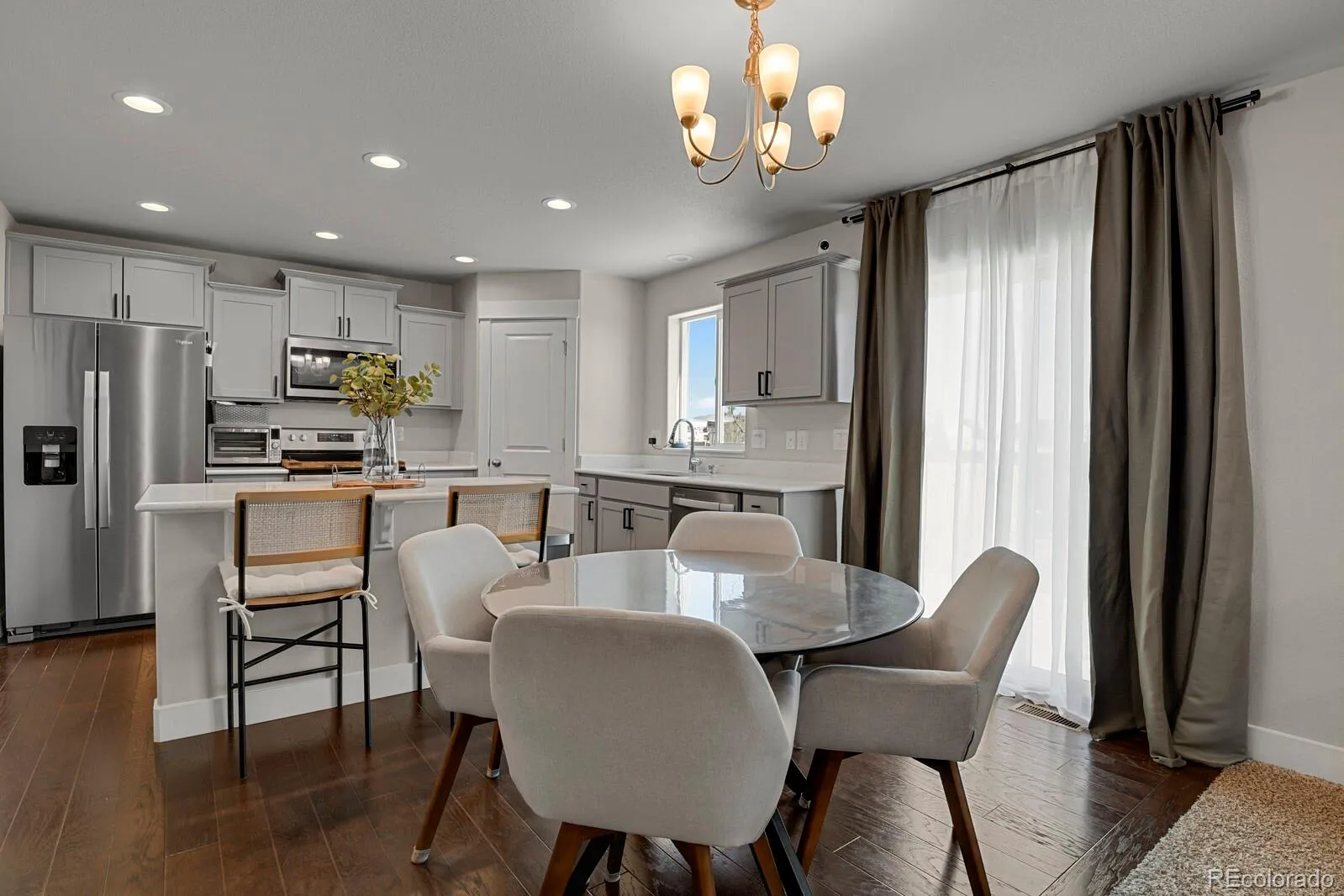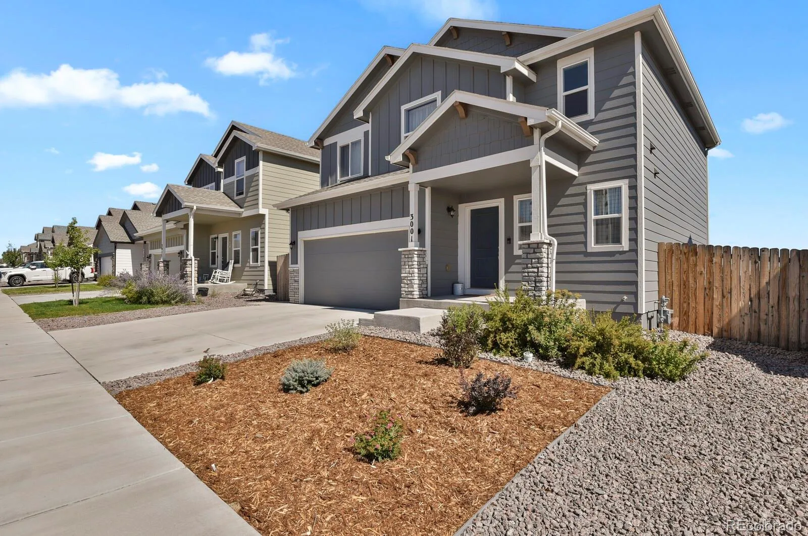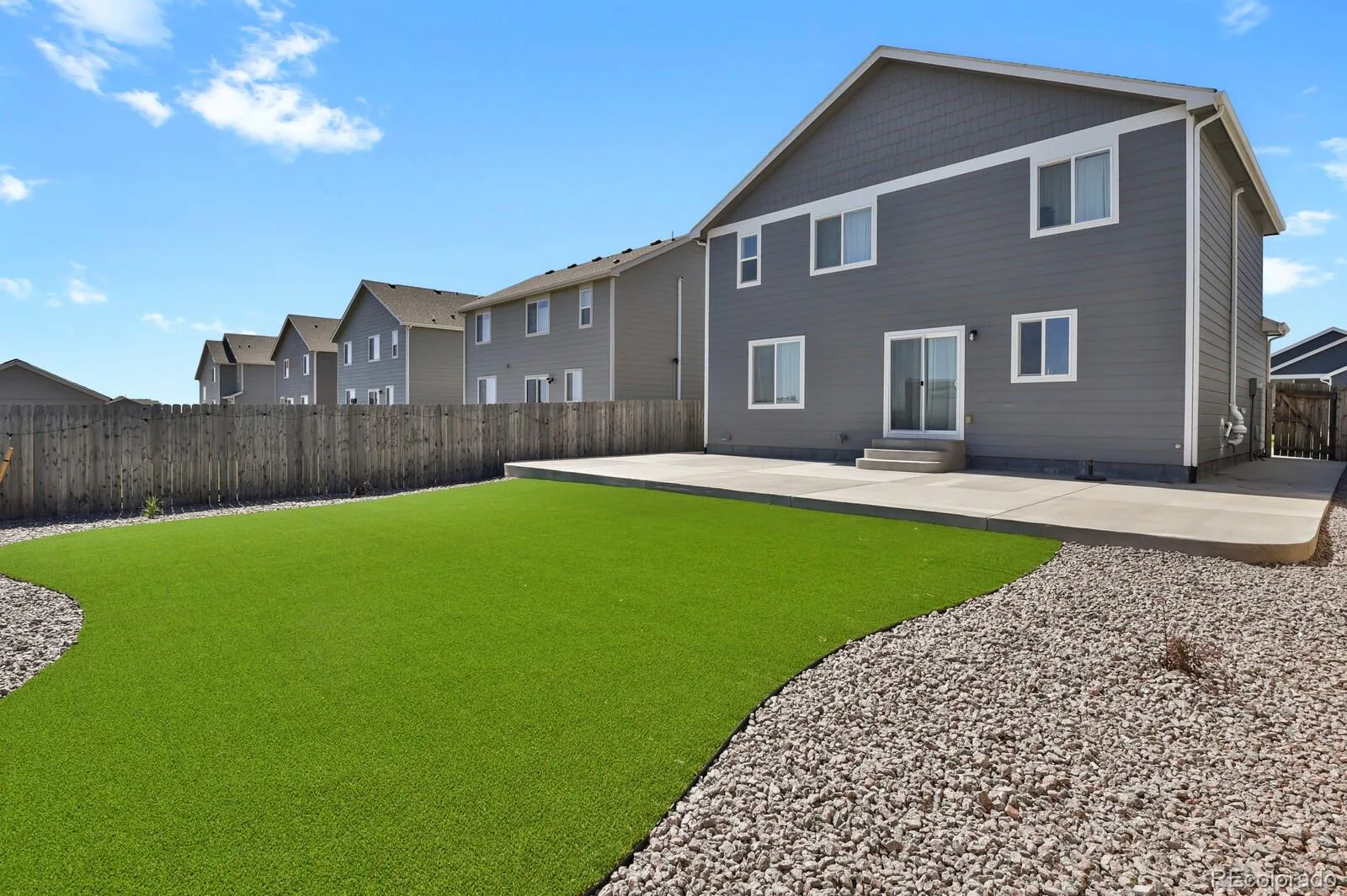 This beautiful like new home combines modern elegance, comfort, and tranquility. As you step inside, you’ll be greeted by a bright and airy open floor plan with large windows that fill the space with natural light. The gourmet kitchen features modern appliances, quartz countertops, and a spacious island, making it a chef’s delight. The inviting living room is perfect for cozy evenings, while the dining area opens to a beautifully landscaped backyard, ideal for entertaining. Retreat to the luxurious primary suite that has vaulted ceilings with a private en-suite bath and walk-in closet. Three additional bedrooms provide ample space for family or guests. The newly landscaped backyard is perfect for outdoor gatherings and provides low maintenance. Conveniently located near shopping, dining, schools and quick access to the military installations and is a great launching pad for all the Colorado Adventures you can handle! *Home has Tesla charging station installed in the garage, the landscaping has also recently been updated to xeriscape in the front and backyard with extended concrete rear patio*