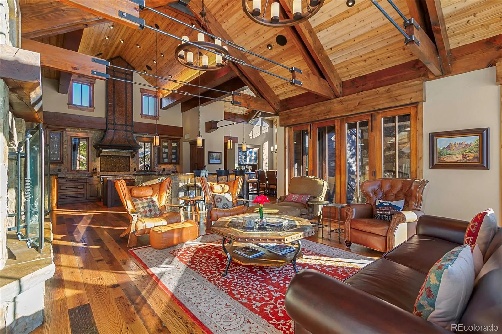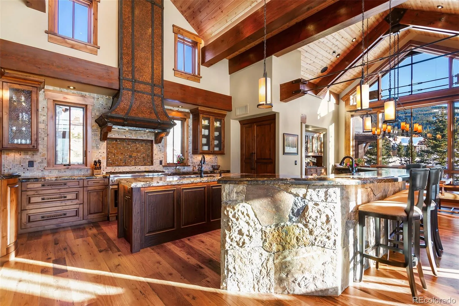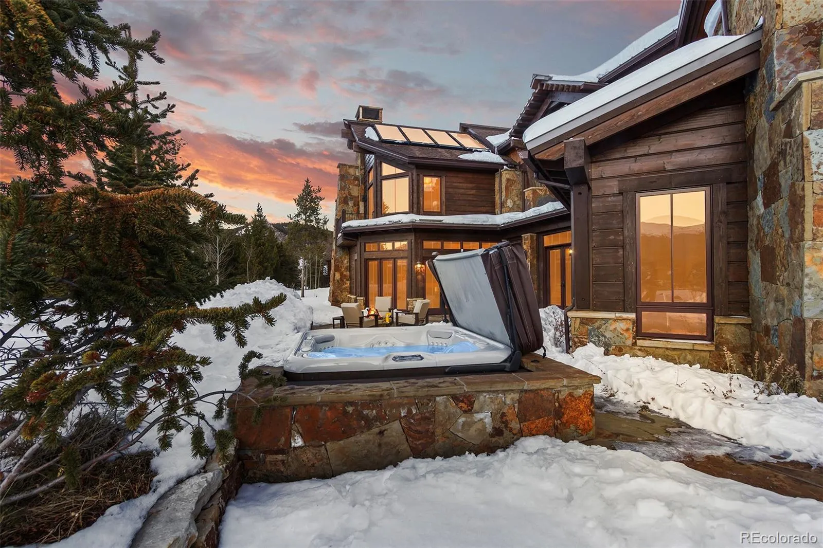 One of the most extraordinary, detailed residences in all of the Highlands! This custom legacy property remains an architectural triumph of Suzanne Allen’s extensive body of work in the High Country and is a MUST SHOW to your discerning clients. Situated right on the Jack Nicklaus Championship golf course with stupendous views of the Ten Mile Range from every room, this exquisite mountain living creation is dedicated to integrating the Great Outdoors with the grand, yet intimate gathering spaces. Multiple window walls open the Great room and family media/bar areas to heated stone outdoor living spaces. Six fireplaces plus fire pit add cheer year-round. Three-car garage with dog washing station. Sprawling family room with full elegant bar, climate-controlled wine cellar, pool table, roaring fireplace and awesome A/V system opens fully to heated stone patio with spa and fire pit. No detail overlooked in executive Chef’s Kitchen with 6-burner + griddle Thermidor range, 2 dishwashers and kitchen seating for all the helpers! Great room opens up to covered grilling center with fireplace and ceiling heaters. Sumptuous main level Primary suite with beautiful stone fireplace and breathtaking Mountain Views, spa-grade bath with oversized steam shower and his/hers separate closets. Two laundry areas in all. Whole house integrated system can be remotely controlled from phone: lights, heat, shades, music. This handcrafted home is a masterwork of contemporary and timeless Colorado style. Generations will gather to create a legacy of memories!