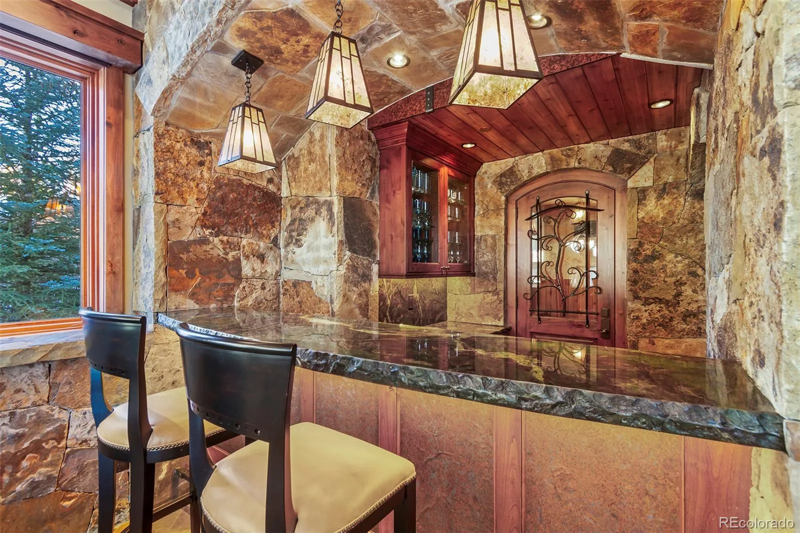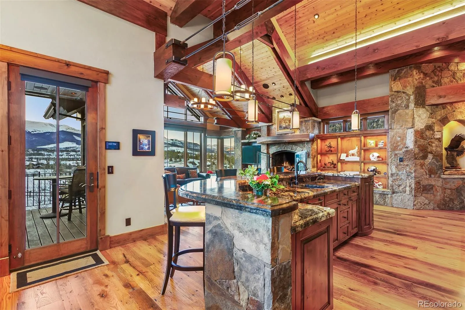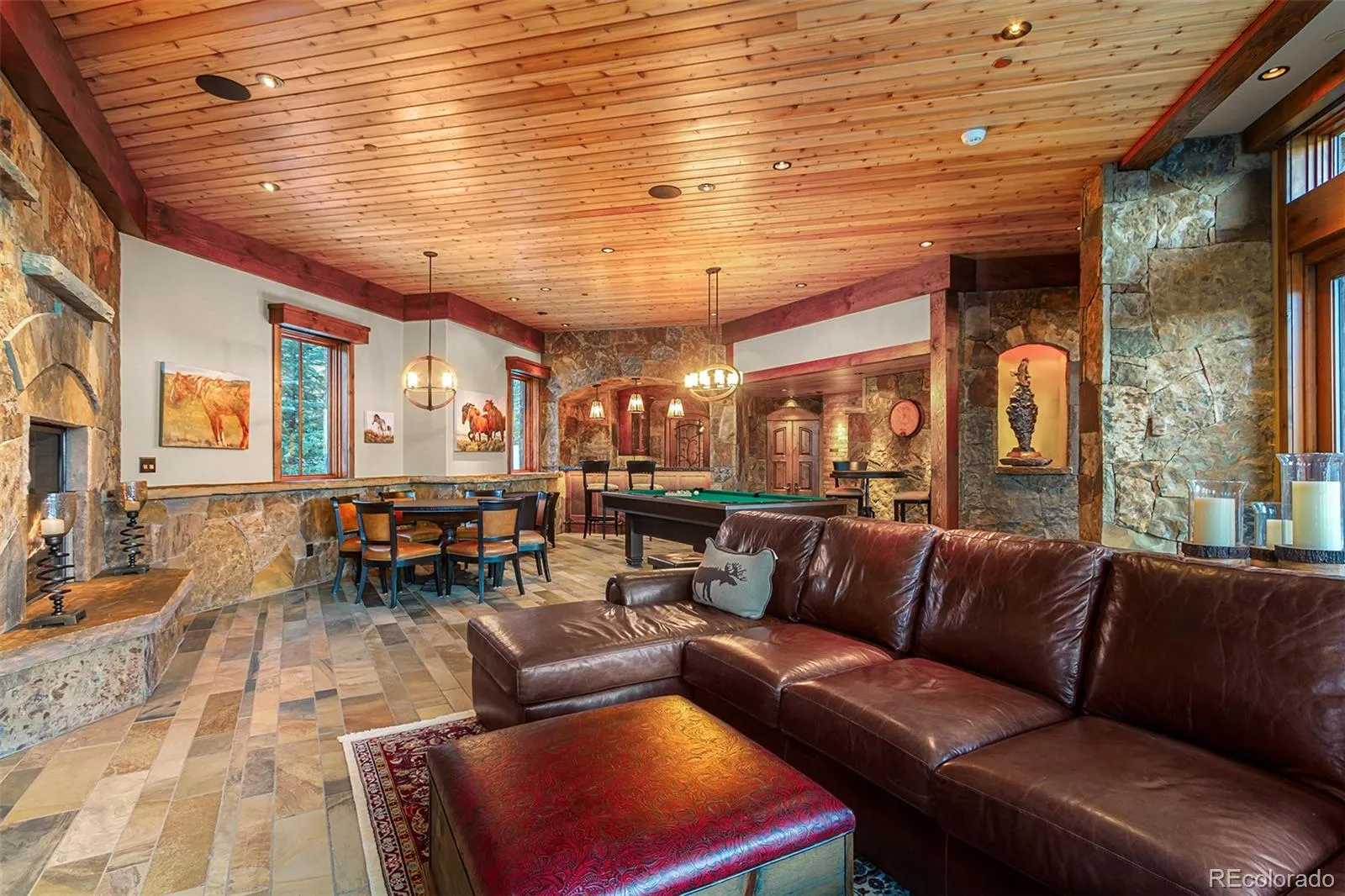 One of the most extraordinary, detailed residences in all of the Highlands! This custom legacy property remains an architectural triumph of Suzanne Allen’s extensive body of work in the High Country and is a MUST SHOW to your discerning clients. Situated right on the Jack Nicklaus Championship golf course with stupendous views of the Ten Mile Range from every room, this exquisite mountain living creation is dedicated to integrating the Great Outdoors with the grand, yet intimate gathering spaces. Multiple window walls open the Great room and family media/bar areas to heated stone outdoor living spaces. Six fireplaces plus fire pit add cheer year-round. Three-car garage with dog washing station. Sprawling family room with full elegant bar, climate-controlled wine cellar, pool table, roaring fireplace and awesome A/V system opens fully to heated stone patio with spa and fire pit. No detail overlooked in executive Chef’s Kitchen with 6-burner + griddle Thermidor range, 2 dishwashers and kitchen seating for all the helpers! Great room opens up to covered grilling center with fireplace and ceiling heaters. Sumptuous main level Primary suite with beautiful stone fireplace and breathtaking Mountain Views, spa-grade bath with oversized steam shower and his/hers separate closets. Two laundry areas in all. Whole house integrated system can be remotely controlled from phone: lights, heat, shades, music. This handcrafted home is a masterwork of contemporary and timeless Colorado style. Generations will gather to create a legacy of memories!