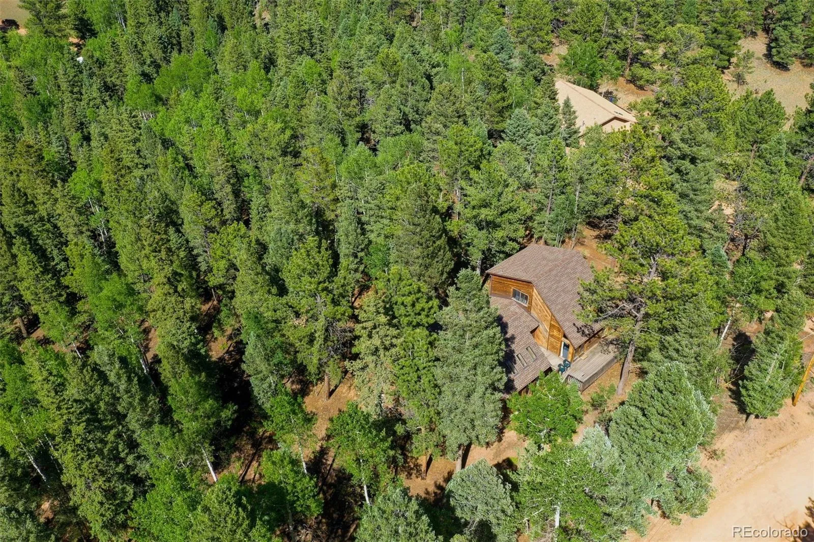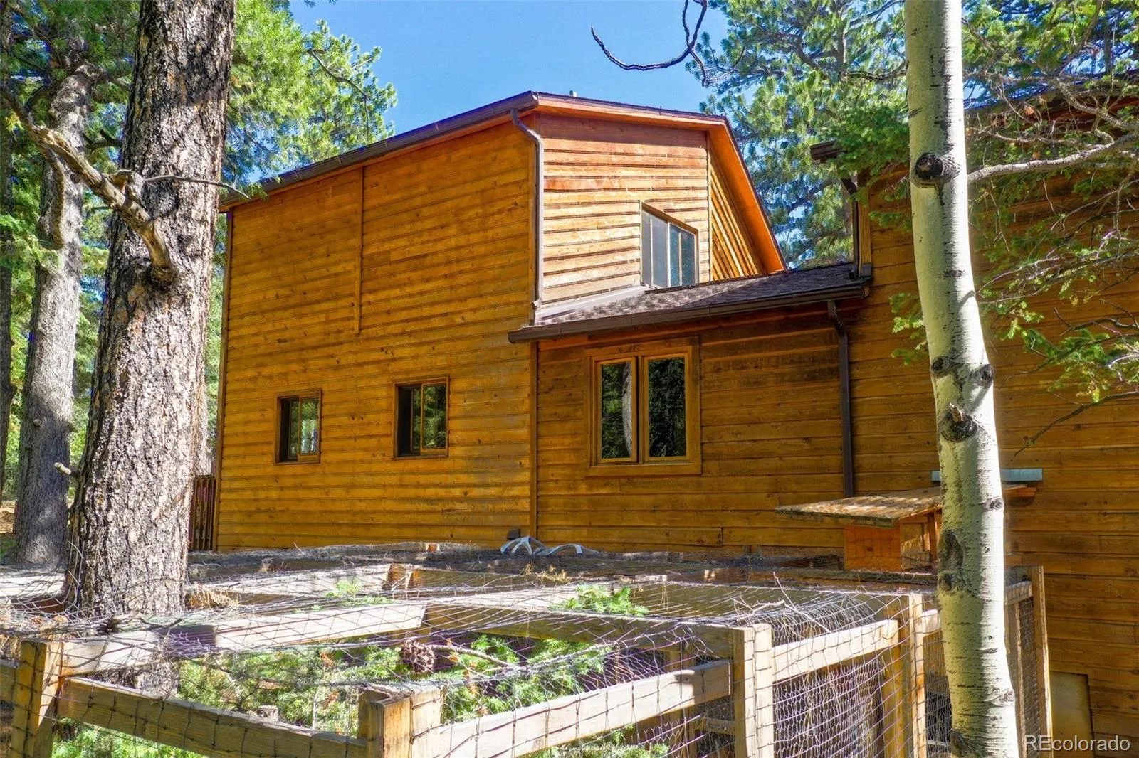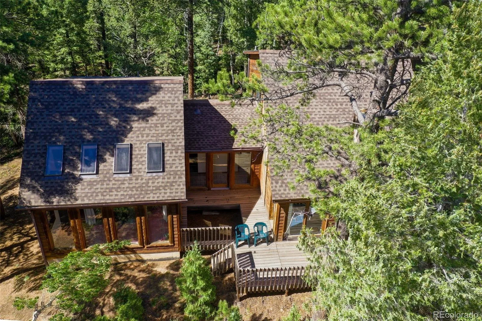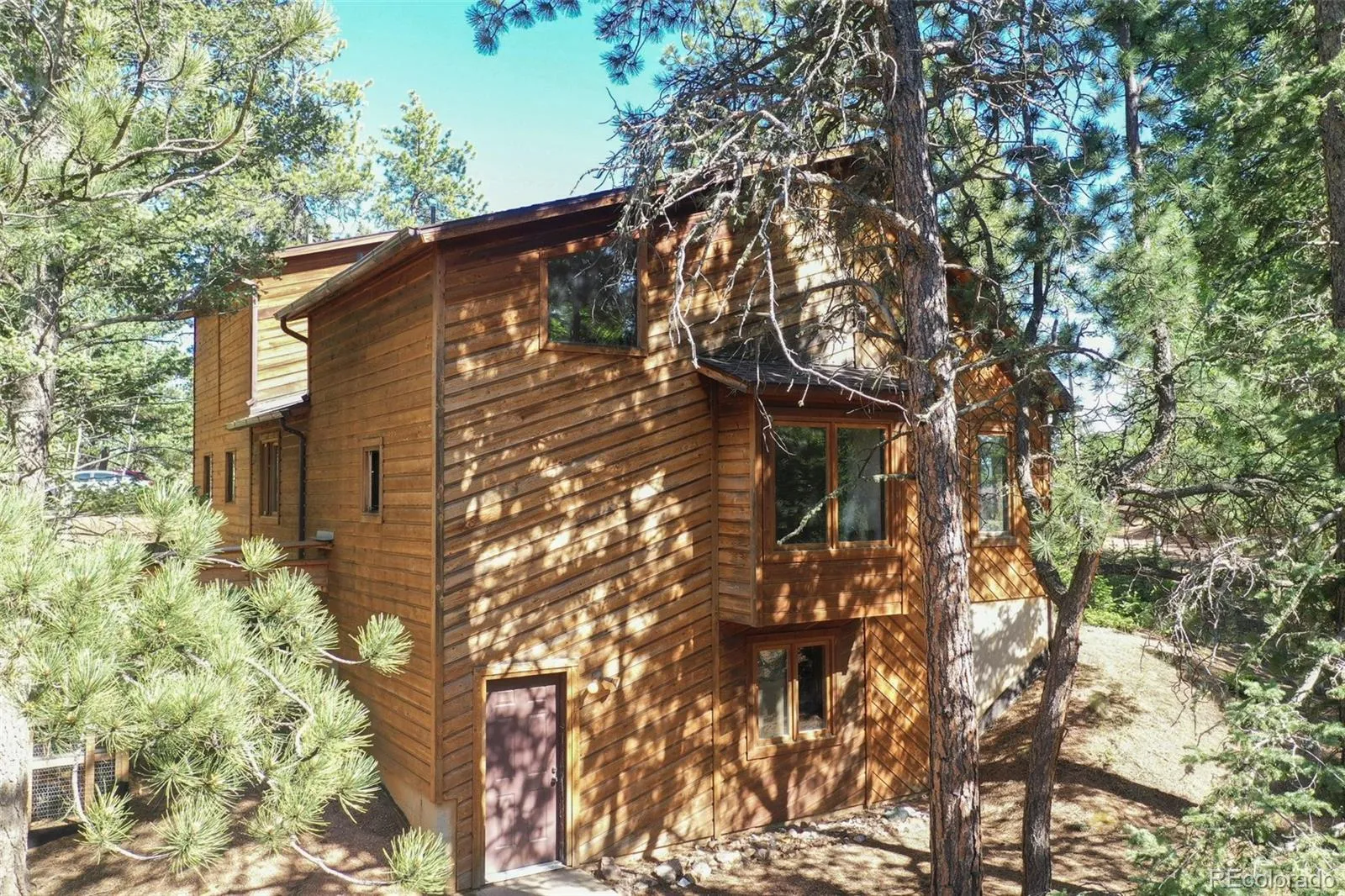 Welcome to Cottonwood Lake Dr. in Highland Lakes, this charming cedar-sided home offers a perfect blend of natural beauty and modern comfort. Enjoy the best of Southern exposure with stunning views of Pikes Peak. The living room features a beautiful wood-burning stove, perfect for those chilly evenings. A new addition was added in 1990, providing a spacious master bedroom and a convenient 3/4 bathroom. The upper level has a large, open loft, ideal for relaxing, movie nights, or even converting into an additional bedroom. The lower level has a walk-out directly to the backyard. Relax on the front deck, designed with an open area perfect for a hot tub, and take in the surroundings and wildlife. The home also had a new roof installed in 2023. Set on 1.22 acres of treed land, the property offers easy access to the many amenities of Highland Lakes, including seven ponds perfect for fishing, canoeing, ice fishing, and ice skating.