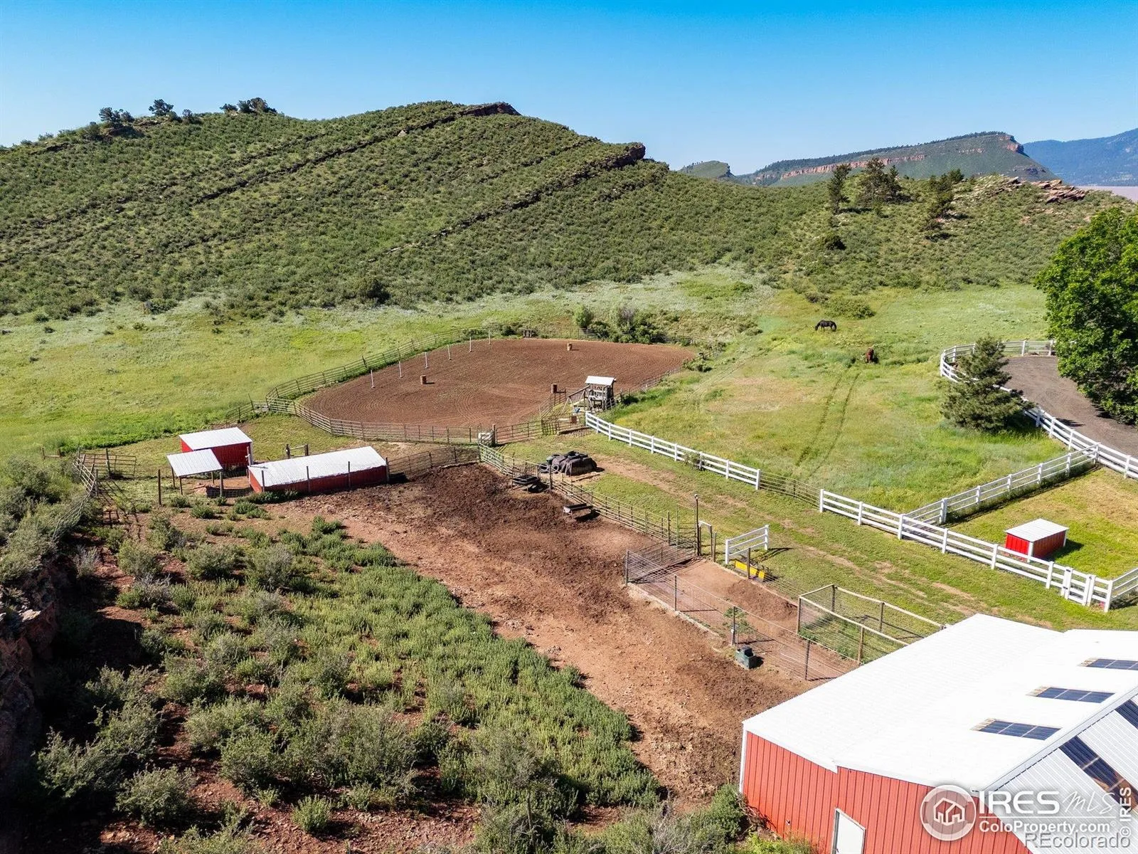 Offered for the first time by its original owners, this custom-designed 40+ acre estate combines privacy, function, and timeless charm in one of Northern Colorado’s most scenic foothill settings. Tucked behind a private gate at the end of Rugged Rock Road, the property offers end-of-road seclusion and sweeping views of the surrounding hillsides between Loveland and Berthoud. The nearly 5,000 square foot home was thoughtfully crafted to offer both everyday comfort and elegant gathering spaces. It features five bedrooms and six bathrooms, along with a parlor, sunroom currently used as a home office, formal dining room, and a breakfast nook. A traditional wraparound front porch greets visitors in the front and there’s over 1,000 square feet of back deck space creating the perfect setting for relaxing or entertaining against a backdrop of the surrounding natural beauty. Equestrian facilities include a 1,800 square foot barn with stalls, tack room, loafing areas, and storage for tractors or other equipment. Additional features include a chicken coop, loafing sheds, a 132-square-foot shed/shop, and even a 120 by 140 foot riding arena. Surrounded by nature yet conveniently located, the property offers quick access to top regional destinations. Explore fishing, hiking, boating, and paddleboarding at Carter Lake, Pinewood Reservoir, Flatiron Reservoir, and the highly anticipated Chimney Hollow Reservoir and Open Space are all just minutes away. Golfers will appreciate the proximity to TPC Colorado, a championship-level course and host of a PGA Korn Ferry Tour event, offering world-class facilities and dining with panoramic mountain views. This is a rare opportunity to own a one-of-a-kind retreat that balances rural serenity, recreational access, and convenience to the nearby communities.
