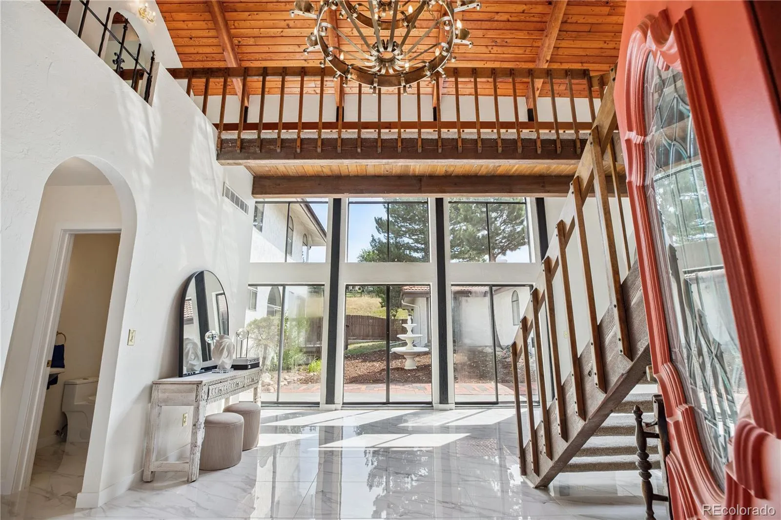Resort-style grounds invite relaxation and recreation with a central courtyard, outdoor pavilion and BBQ area, sports court, horse stable, and workshop. Over 50 mature Ponderosa Pines provide shade, privacy, and opportunities for glamping, stargazing, or simply enjoying Colorado’s natural beauty from your own backyard.