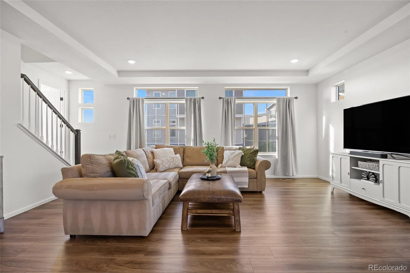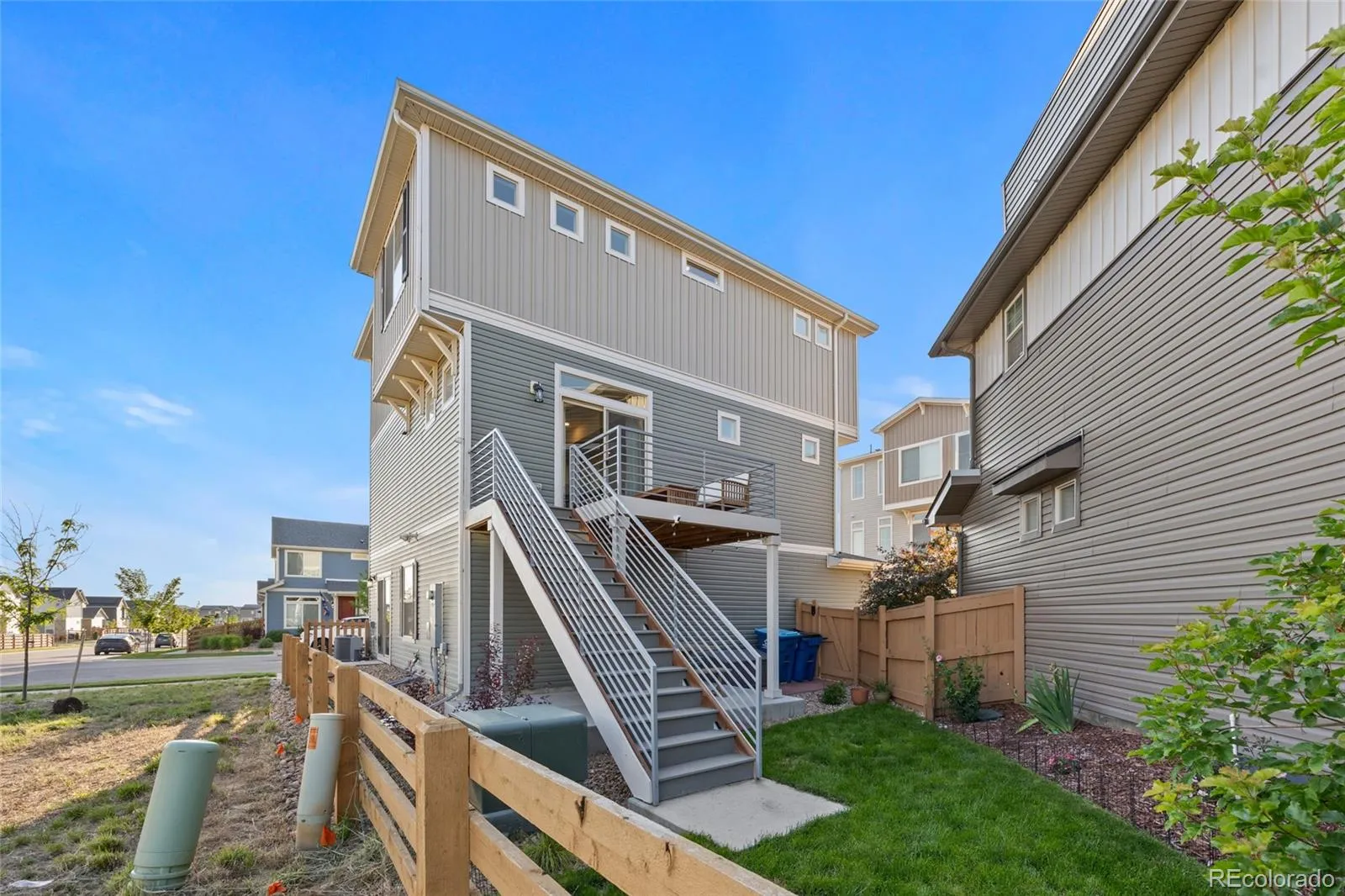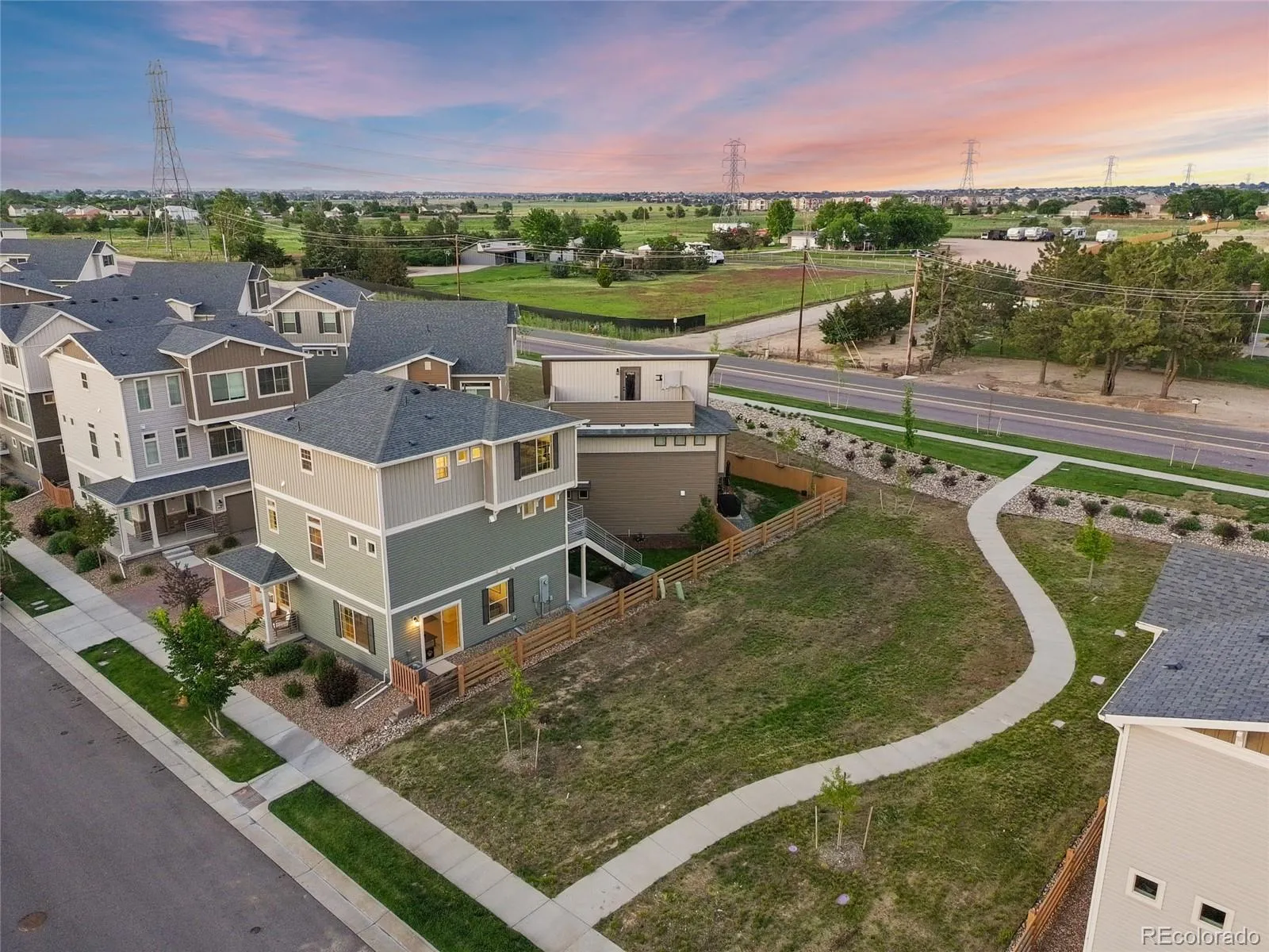 Back to market at no fault of the seller: buyer fell through on the contract of their current home. Backing to trails, this beautifully upgraded single family home in Reunion Ridge is just three years old and boasts multiple living spaces, plenty of natural light, and plenty of privacy. Thoughtfully enhanced throughout, this energy-efficient home offers comfort, functionality, and style in a vibrant, connected community. Step inside to find an open and inviting layout. The main floor features a foyer entrance and generously sized living space. Upstairs, you’ll find the kitchen, dining and family room areas. You’ll enjoy upgraded appliances, custom cellular shades, upgraded knobs on doors and cabinets, dimmer light switches, and more! The main floor is complete with a bonus room – perfect for a Zoom Room or workout space – and a gorgeous deck. The primary suite features an upgraded showerhead for a spa-like feel, while the additional bedrooms and bathroom are tastefully designed to make you feel at home. The outdoor space has been transformed with professional landscaping, a spacious concrete patio, and convenient stairs leading from the kitchen to the backyard—perfect for indoor-outdoor entertaining. The backyard is perfectly positioned to open space for optimal views and easy access to trails. The garage provides ample parking and storage, and the home also includes modern touches to offer efficiency and convenience. Unique features such as the in-home climbing wall add a fun and creative element to the space! Enjoy the nearby community park and playground, as well as close proximity to nearby favorites like: Fronterra Park, Second Street Open Space and more. Great dining options are just minutes away, including: State House, Dion’s Pizza and Reunion Coffee House. With easy access to 76 and 104th, your next home awaits on Xanadu Street!