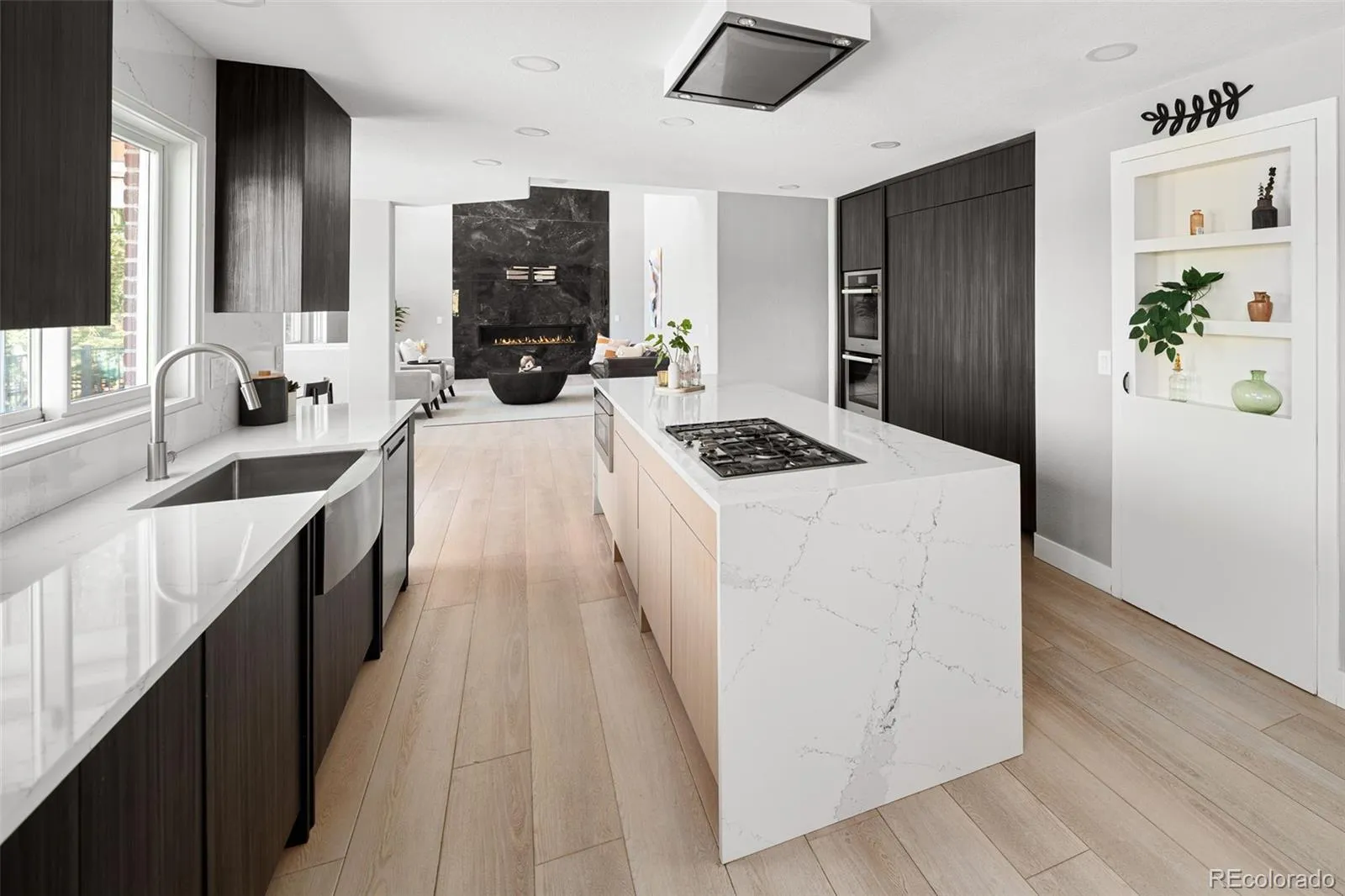 No detail has been overlooked in the thoughtful renovations, starting with the relocation of the laundry room upstairs for effortless convenience near the primary suite. A newly expanded second foyer off the garage offers a grand, welcoming space for everyday ease. The heart of the home—an extraordinary kitchen—is a true showpiece, featuring waterfall edge countertops, premium Miele appliances, and an oversized walk-in pantry complete with a freezer and water cooler.