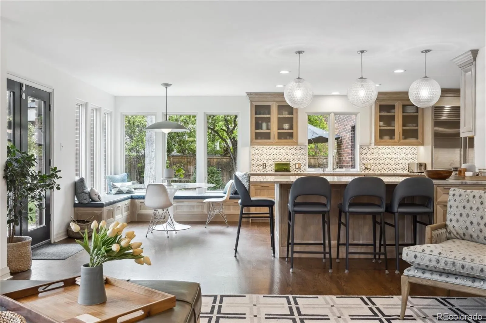 Discover one of Hilltop’s most exciting opportunities – a complete top-to-bottom transformation of a classic Tudor on one of Denver’s most coveted blocks. Reimagined by Emily Tucker Design in 2021 and featured in Luxe magazine, this residence blends East Coast sophistication with fresh, modern livability. Elevated on a beautifully landscaped lot with mature trees, the home makes a striking first impression and an even warmer welcome inside.