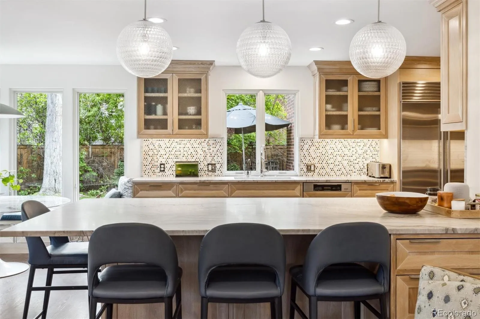 Every detail has been thoughtfully considered: cerused white oak cabinetry and quartzite counters anchor the chef’s kitchen, while layered materials, custom millwork, and jewel-toned accents create depth and character throughout. Bay windows, built-ins, and architectural charm honor the Tudor’s historic roots, seamlessly balanced by modern updates that deliver move-in-ready comfort.