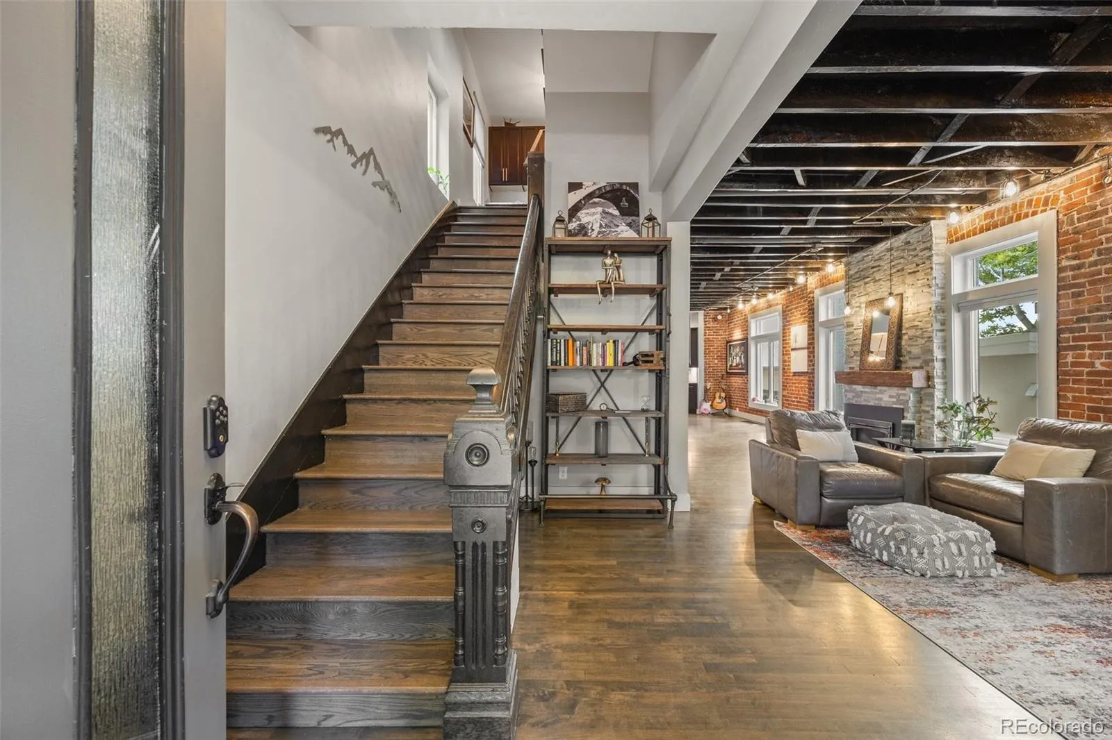 This stunning restored Victorian offers the best of Denver living, with breathtaking city views from the rooftop deck complete with a gas-lined firepit to enjoy those stunning Colorado evenings. Nestled in a quiet, walkable neighborhood, you’re just steps from LoHi’s top restaurants, coffee shops, and nearby parks. Inside, timeless charm meets modern convenience with soaring ceilings, exposed beams, and an open layout designed for today’s lifestyle. The main level features hardwood floors, a formal dining area, a mudroom, and a chef’s kitchen with upgraded appliances, double ovens, gas cooktop, water filtration system, and a large island. The living room boasts exposed brick and a cozy gas fireplace, while a dedicated office with built-ins is perfect for remote work. Upstairs, the primary suite includes a private deck, walk-in closet with custom systems, and a spa-like bath with oversized shower. Two additional bedrooms, one with city views, share a full bath and are close to the laundry room. The loft offers new windows, a wet bar, and wine fridge, opening directly to the rooftop. The finished basement includes a spacious family room, built-in bar with wine fridge, a non-conforming bedroom, and a half bath ideal as a guest retreat or rental space. Additional highlights: tankless water heater, newer HVAC, A/C, custom blinds, custom light fixtures, built-in closets, and hardwired connectivity throughout. The property is zoned to add an Accessory Dwelling Unit (ADU) and could be converted to an ADU in the future, offering excellent flexibility and potential for additional living or rental space. This one-of-a-kind home seamlessly blends classic character with thoughtful modern upgrades all in one of Denver’s most vibrant and walkable neighborhoods.