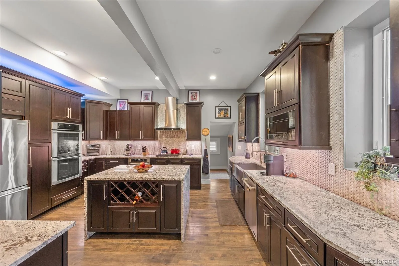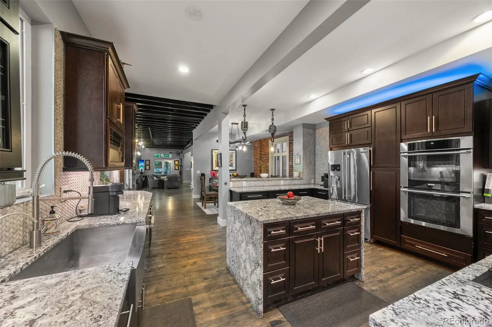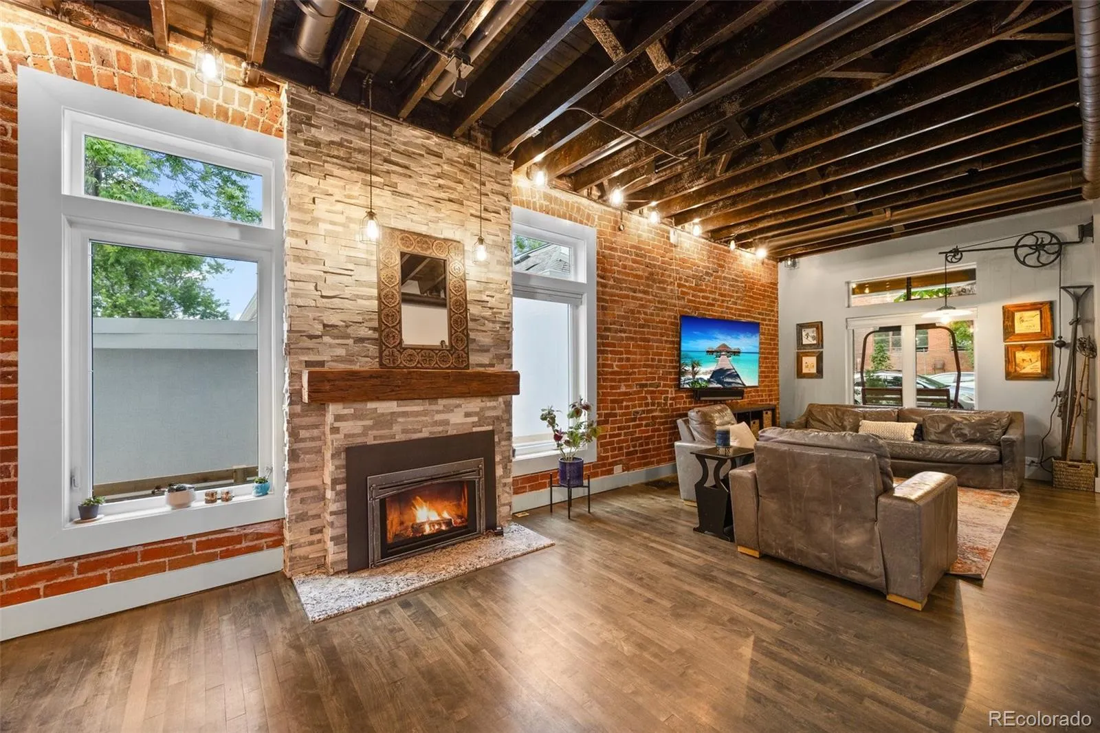 This stunning restored Victorian offers the best of Denver living, with breathtaking city views from the rooftop deck complete with a gas-lined firepit to enjoy those stunning Colorado evenings. Nestled in a quiet, walkable neighborhood, you’re just steps from LoHi’s top restaurants, coffee shops, and nearby parks. Inside, timeless charm meets modern convenience with soaring ceilings, exposed beams, and an open layout designed for today’s lifestyle. The main level features hardwood floors, a formal dining area, a mudroom, and a chef’s kitchen with upgraded appliances, double ovens, gas cooktop, water filtration system, and a large island. The living room boasts exposed brick and a cozy gas fireplace, while a dedicated office with built-ins is perfect for remote work. Upstairs, the primary suite includes a private deck, walk-in closet with custom systems, and a spa-like bath with oversized shower. Two additional bedrooms, one with city views, share a full bath and are close to the laundry room. The loft offers new windows, a wet bar, and wine fridge, opening directly to the rooftop. The finished basement includes a spacious family room, built-in bar with wine fridge, a non-conforming bedroom, and a half bath ideal as a guest retreat or rental space. Additional highlights: tankless water heater, newer HVAC, A/C, custom blinds, custom light fixtures, built-in closets, and hardwired connectivity throughout. The property is zoned to add an Accessory Dwelling Unit (ADU) and could be converted to an ADU in the future, offering excellent flexibility and potential for additional living or rental space. This one-of-a-kind home seamlessly blends classic character with thoughtful modern upgrades all in one of Denver’s most vibrant and walkable neighborhoods.
