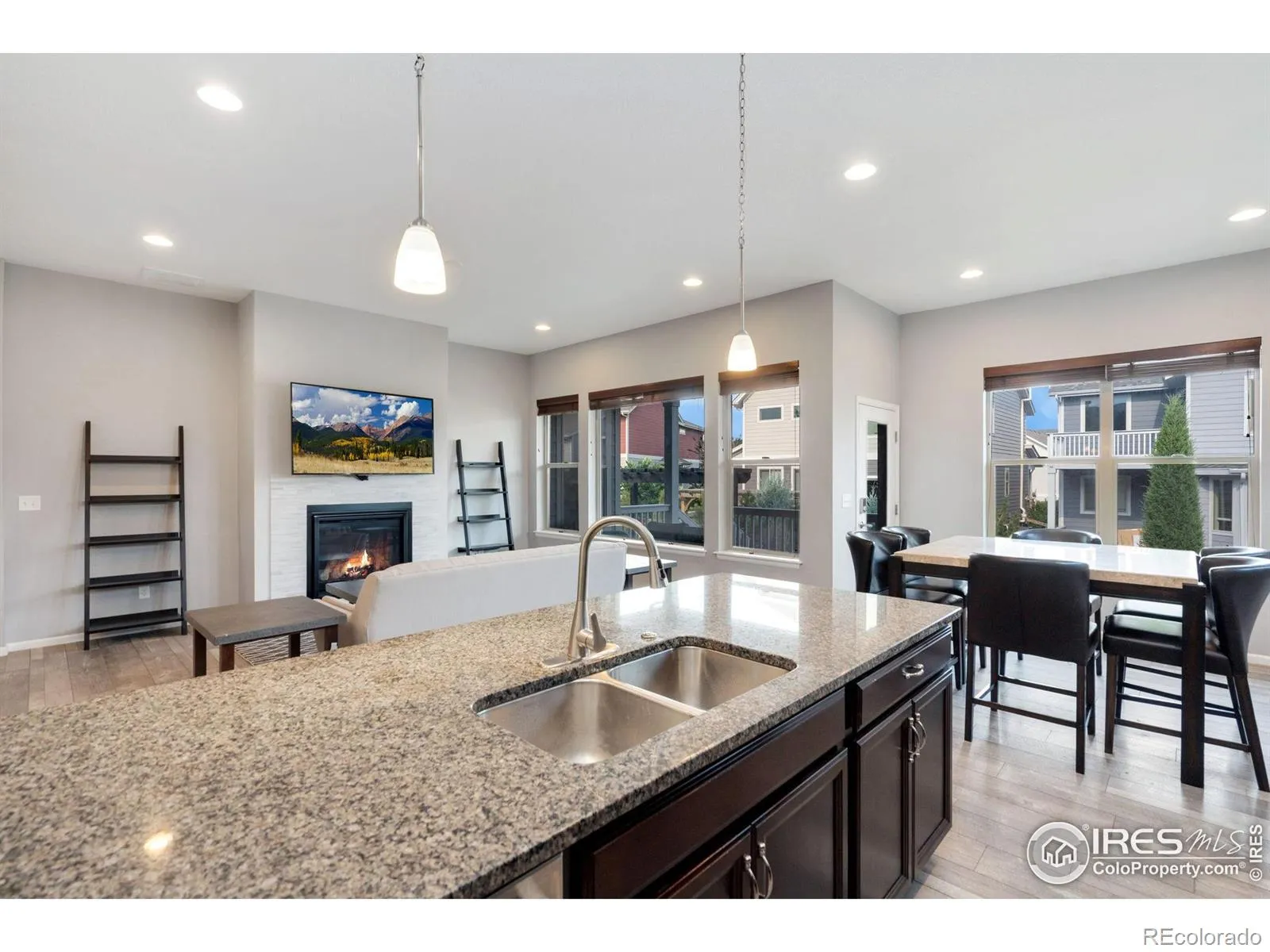 Ask me about incentives!! Welcome home to this stylish former model ranch in the highly sought-after Lakes of Centerra. Enjoy charming curb appeal and a welcoming front porch, perfect for relaxing in this peaceful neighborhood. This home qualifies for up to 1% lender credit on loan amount for available loan programs exclusively with Ken Schmidt at Altitude Home Mortgage! Contact lender to quailfy.The beautiful low-maintenance backyard features a fountain, planter box and pergola for grilling, ideal for entertaining or unwinding. Spacious open floor plan, stunning LVP flooring throughout, soft-close cabinets, granite and quartz counters, stainless steel appliances, and a gorgeous centerpiece gas fireplace. The main-level primary suite offers a spa-like 5-piece bath ensuite master with laundry room. The finished basement includes includes TV or gaming area, full bath, & a bonus room for “4th br” for guests lodging or as office space or playroom. Two large storage areas with shelving. This home is close to the Certified Community Wildlife Habitat, Boyd Lake, top Loveland dining and retail, parks, schools, and amenities like a clubhouse, pool, Houts Lake access, concerts, garden, and more. Oversized 2-car garage included!