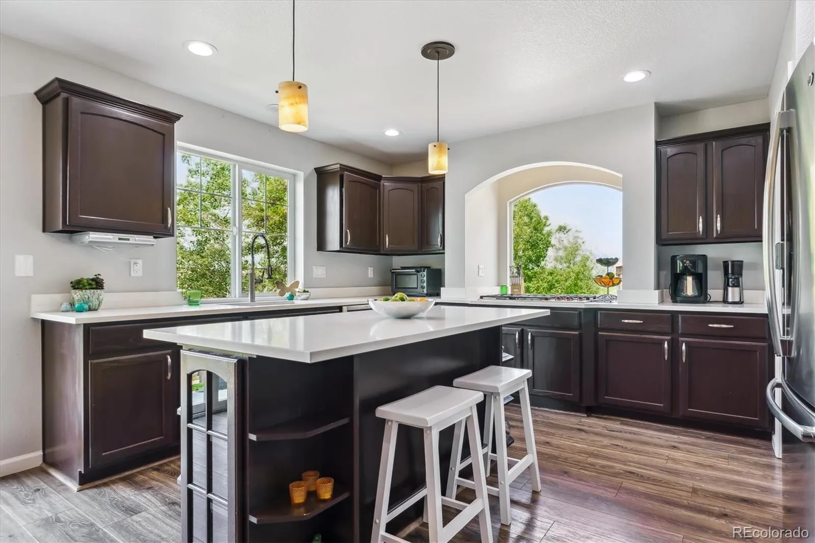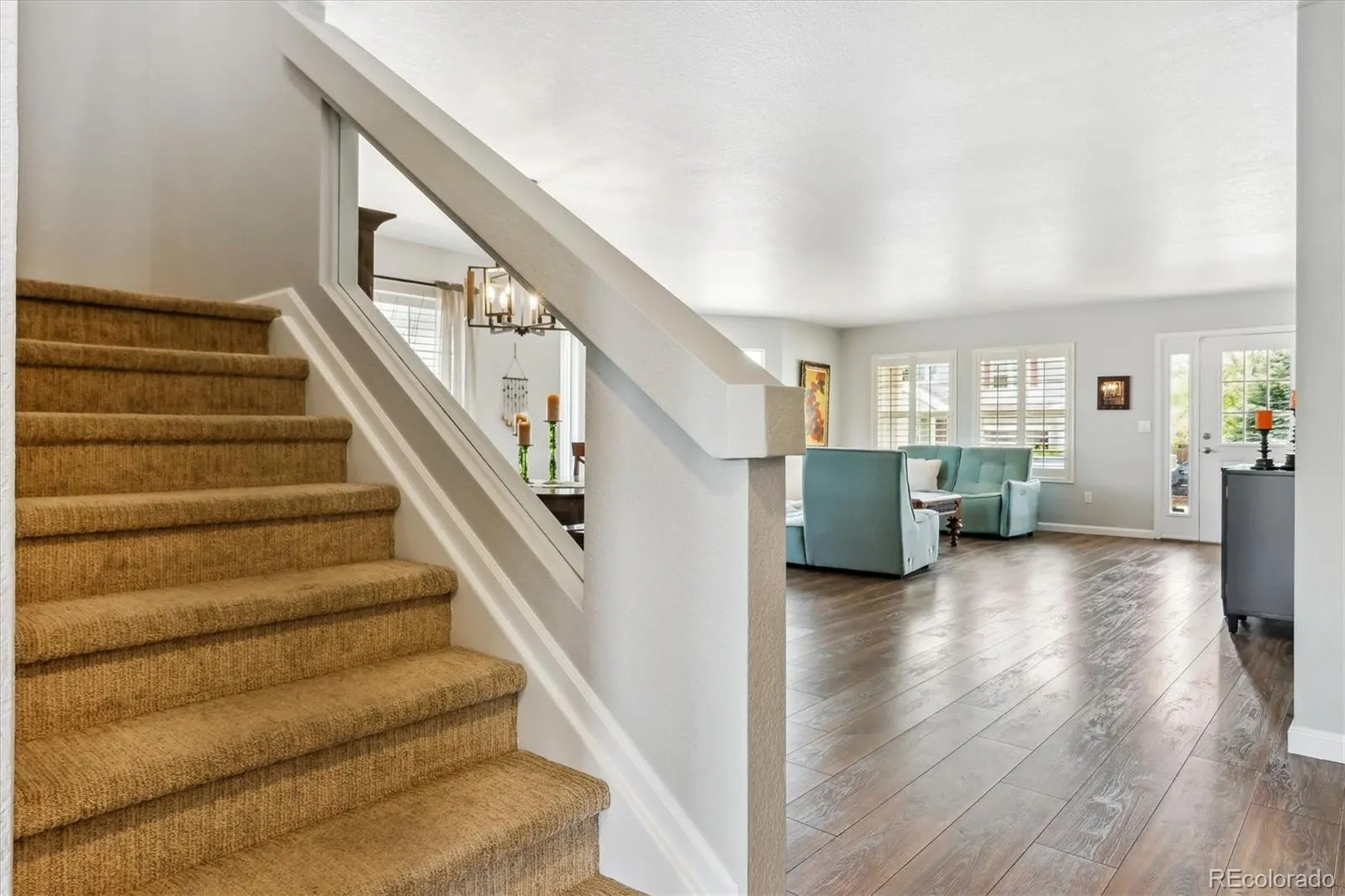 From the moment you step onto the front porch, this home just feels easy—easy to settle into, easy to live in, easy to love. Out back, OPEN SPACE stretches behind you with a walking trail and sunsets that never disappoint, giving the whole home a peaceful, wide-open feel. Inside, over 3300 sqft unfolds in all the right places, starting with wide-plank flooring that carries you through bright, connected spaces perfect for everyday living. The kitchen is the kind everyone gravitates to, with its Wolf gas cooktop, double ovens, big island & walk-in pantry, all flowing naturally into the family room where sunlight pours in and the gas fireplace makes it feel warm and relaxed. Need flexibility? The main floor office works just as easily as a 5th bedroom. Upstairs, the loft becomes whatever life calls for—homework zone, movie hangout, game space, you name it. The primary suite feels like a quiet escape with a spa bath and a picture window looking out to open space. Three more bedrooms and a full laundry room keep things running smoothly, and the unfinished basement gives you room to dream up what’s next. Out back, evenings are about unwinding on the patio, tending to the garden boxes, and taking in that uninterrupted view with no neighbors behind you. And with the neighborhood school right around the corner—plus parks, pools, restaurants, the Outlets, downtown Castle Rock & Philip S. Miller Park just minutes away—you get a lifestyle that truly fits real life.
