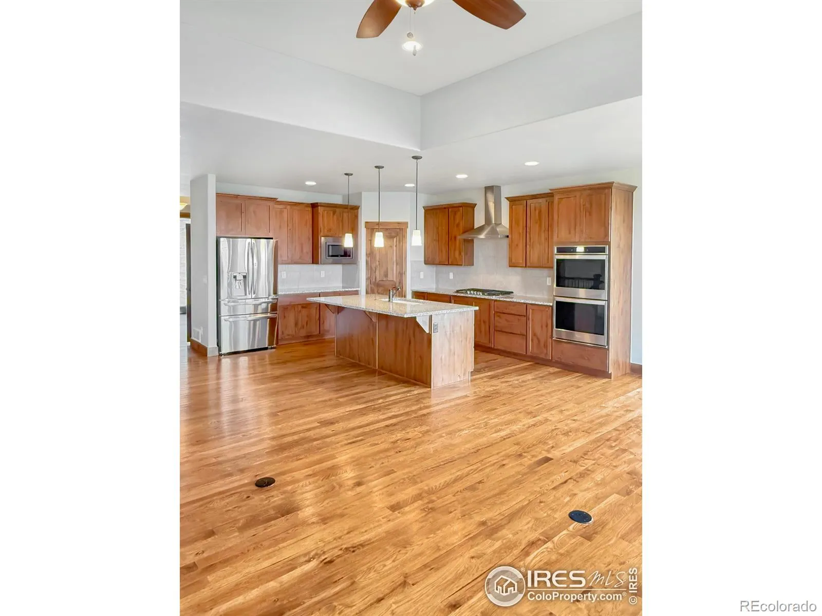 NEW LOW PRICE – $775,000! Motivated Seller – Bring an Offer!This beautifully crafted ranch-style home in The Ridge at Harmony Road combines main-level living, breathtaking mountain views, and the privacy of a serene backyard. Built by Bridgewater Homes, this residence reflects exceptional quality and attention to detail.Inside, you’ll find timeless upgrades such as hickory hardwood floors, solid core doors, rich wood trim, and a striking stone fireplace. The gourmet kitchen impresses with Alder Tharp cabinetry, slab granite counters, stainless steel appliances, gas cooktop, double ovens, a large center island, and walk-in pantry. The spacious primary suite features a luxurious 5-piece bath and generous walk-in closet.The finished garden-level basement offers even more living space with a bedroom, full bath, quality flooring, and a large dedicated storage area. Outdoor living is equally inviting, with a covered deck to enjoy the peaceful surroundings and colorful sunsets. A 3-car tandem garage completes this home.Now priced to sell – motivated seller is ready for your offer! Don’t miss this opportunity for mountain views, privacy, and quality living at one of the best values in the neighborhood.