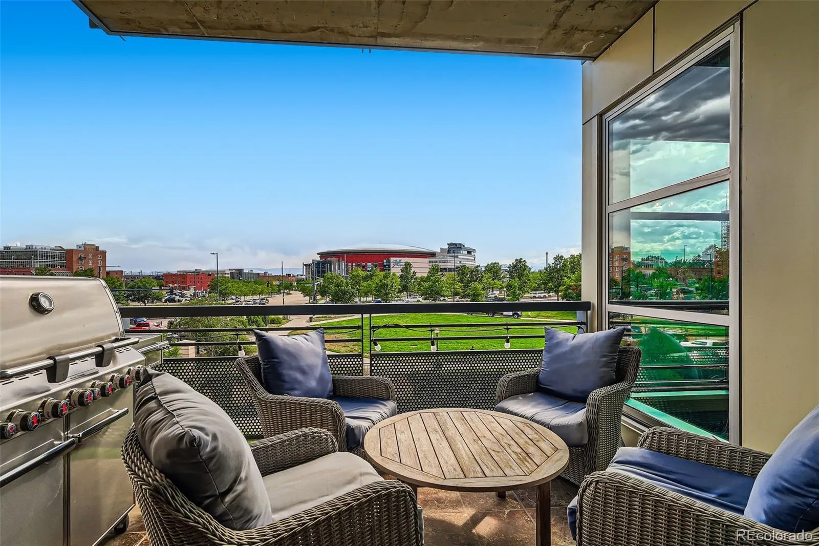 Welcome to your dream loft in the heart of LoDo! This fully remodeled residence in the highly coveted Waterside Lofts combines modern luxury with timeless character—and it’s move-in ready after more than $200k in thoughtful upgrades. Step inside to an open-concept floor plan designed for both everyday living and effortless entertaining. At the heart of the home is a chef’s kitchen featuring custom maple cabinetry with abundant storage, sleek quartz countertops, a granite-and-butcher block island, premium stainless steel appliances, a wet bar, and designer lighting that elevates the space. The expansive dining and living areas are enhanced by 6” rough-cut white oak flooring and a striking tumbled brick accent wall, creating warmth and sophistication. From here, step out onto your private covered balcony with stunning views of Ball Arena, the Platte River, Cherry Creek Trail, and the Rocky Mountains. The primary suite is a true retreat with two walk-in closets, a sun-filled bonus area overlooking the city—perfect as a home office or reading nook—and a spa-inspired en suite bath with a custom walk-in shower. The second bedroom offers incredible flexibility, enclosed by rustic barn doors and lined with a full wall of closets great for extra storage. Outfitted with a built-in Murphy bed, it easily transitions into a guest room, office, or fitness space. A second full bath with an updated vanity and lighting completes the home. Outside your door, enjoy the best of urban Denver living: direct access to the Cherry Creek Trail, and just minutes from Union Station, Ball Arena, Coors Field, 16th Street Mall, Elitch Gardens, Bellco Theater, and some of the city’s best restaurants and entertainment. Don’t miss the opportunity to own this one-of-a-kind loft in an unbeatable location—schedule your private showing today!