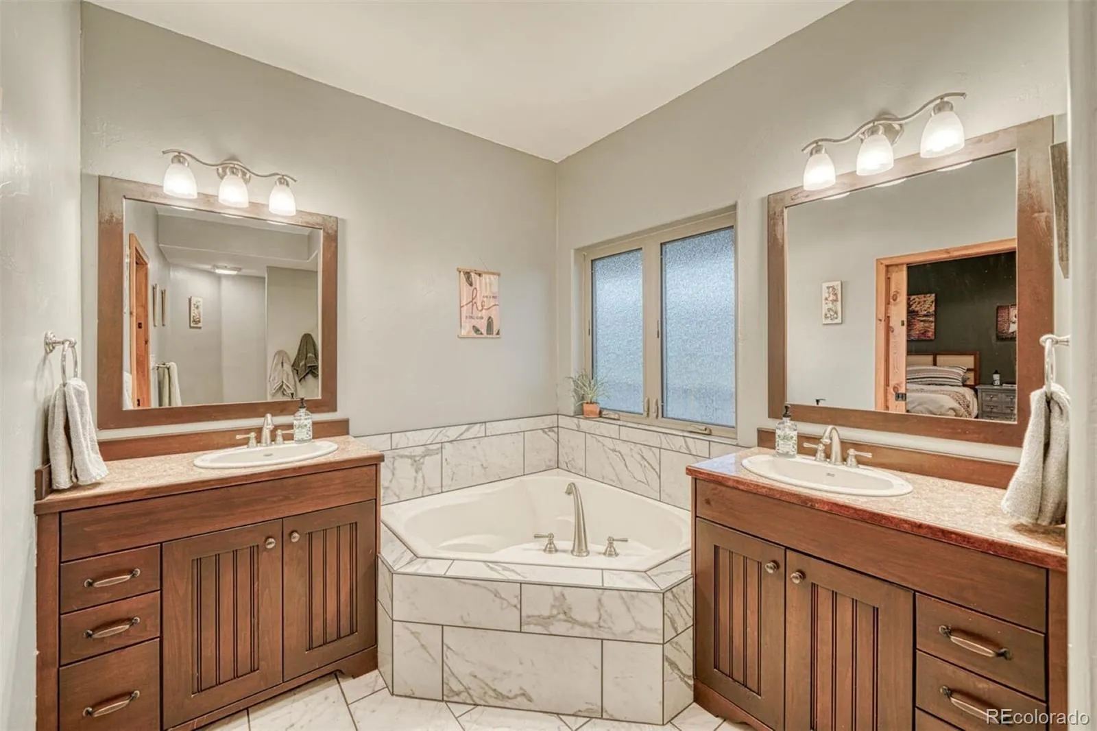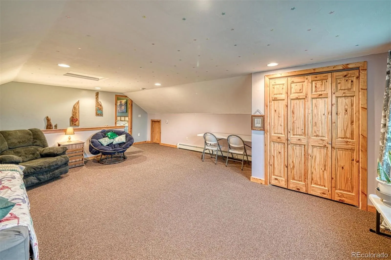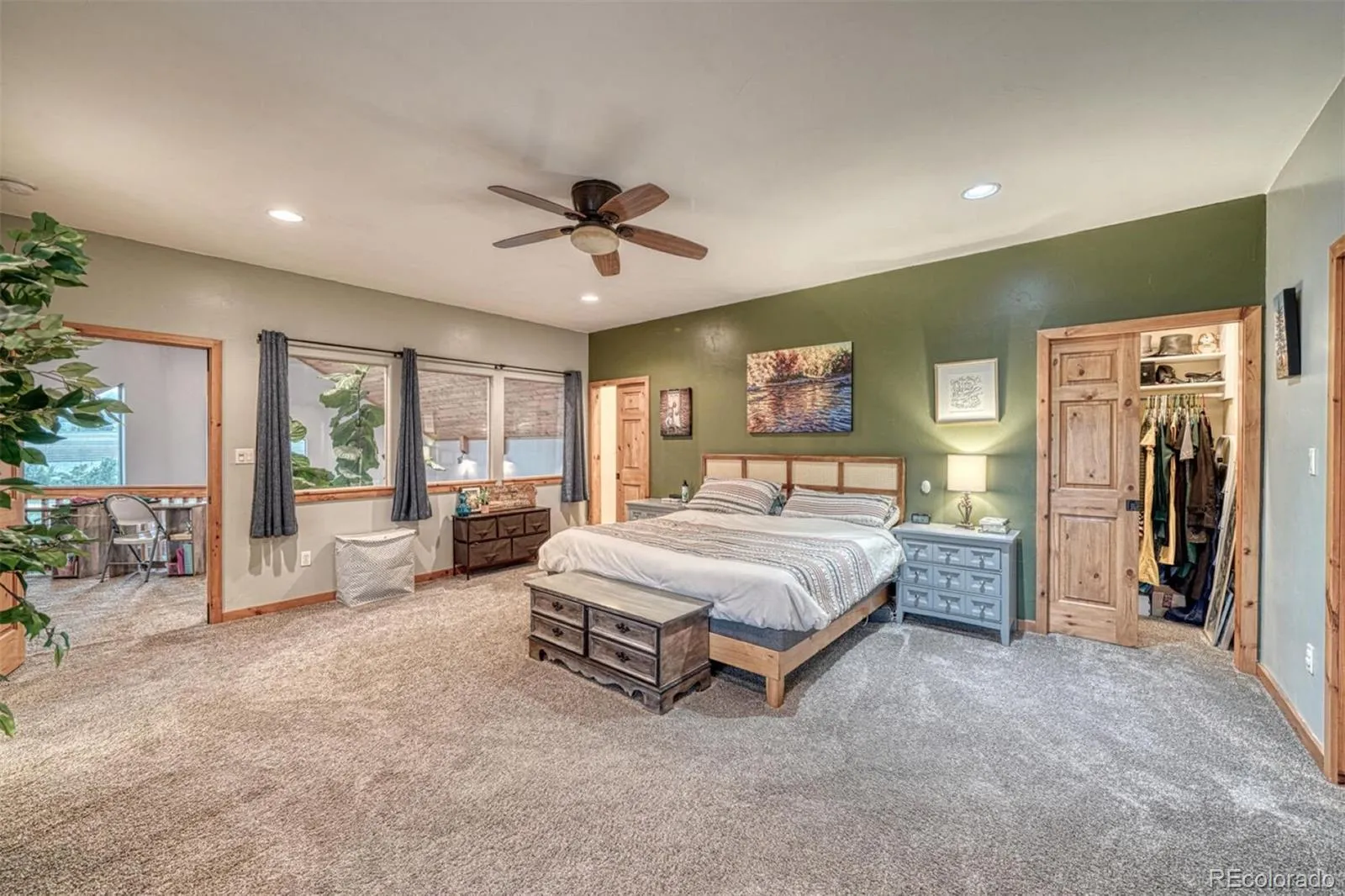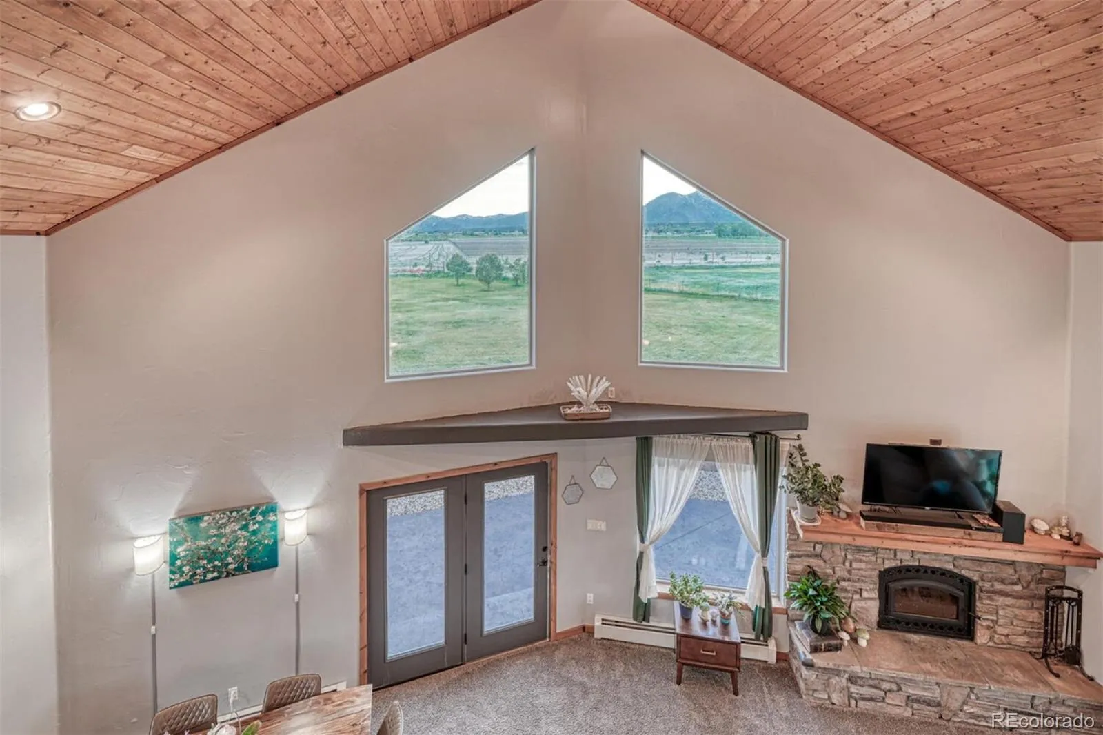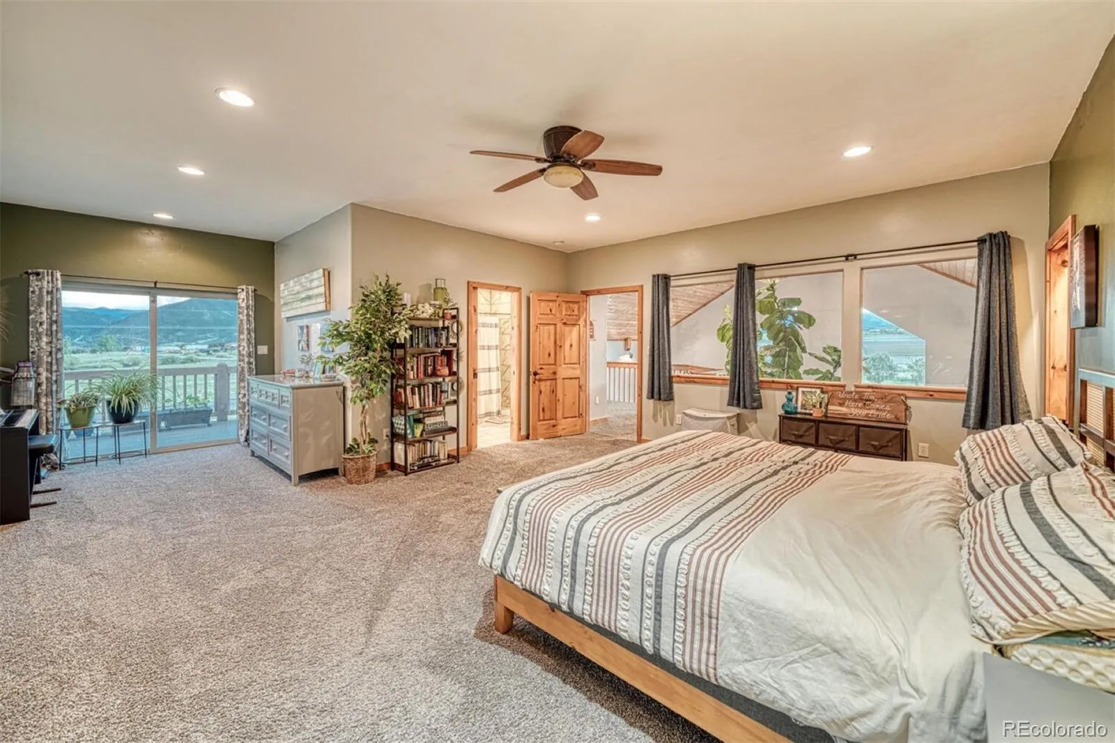The inviting living room includes a wood-burning fireplace, cozy carpet flooring, and French doors that open to a serene outdoor patio—perfect for enjoying the fresh Colorado air. The open-concept floor plan connects the living, dining, and kitchen areas which feel big and open with the high ceiling and huge windows. The kitchen’s storage between a large pantry and tons of custom cabinets is amazing. It also has a double oven, and a functional island with sight-lines into the main living areas. Just past the kitchen and laundry there is direct access to an oversized three-car garage. A bedroom and a three-quarter bath are conveniently located on the main level with main level laundry as well. Upstairs, a huge primary suite, overlooks the living room below and offers a bright and flexible space to the side of the upstairs landing—perfect for a home office. The primary suite features a private balcony with even more breathtaking mountain vistas, a literal walk-through closet, and a five-piece bathroom complete with dual vanities, a soaking corner tub, and a walk-in shower. A large bonus room upstairs can be tailored to your needs—whether as an additional bedroom (closet and a window are in the space), family room, fitness area, or additional office. Located on a peaceful cul-de-sac, the fully fenced property features beautifully landscaped grounds with hardy grasses, columbines, and other perennial plants. This home has been meticulously cared for and is ready to welcome you.