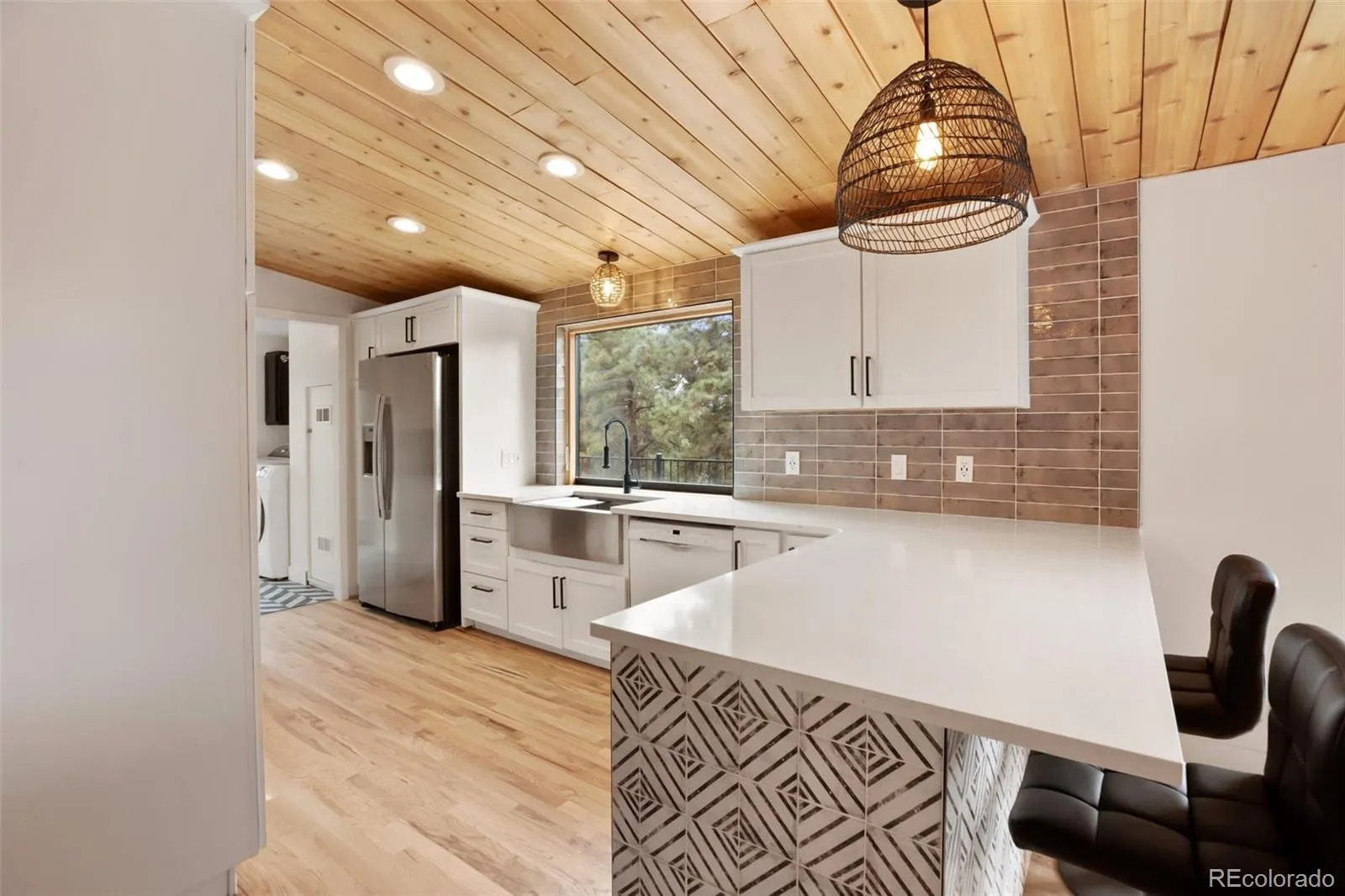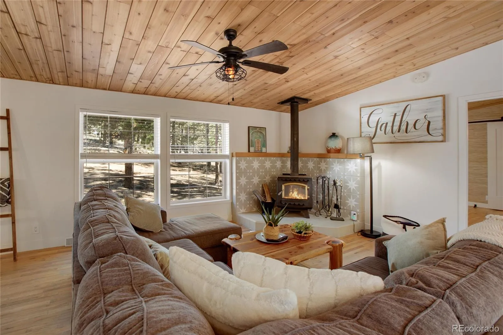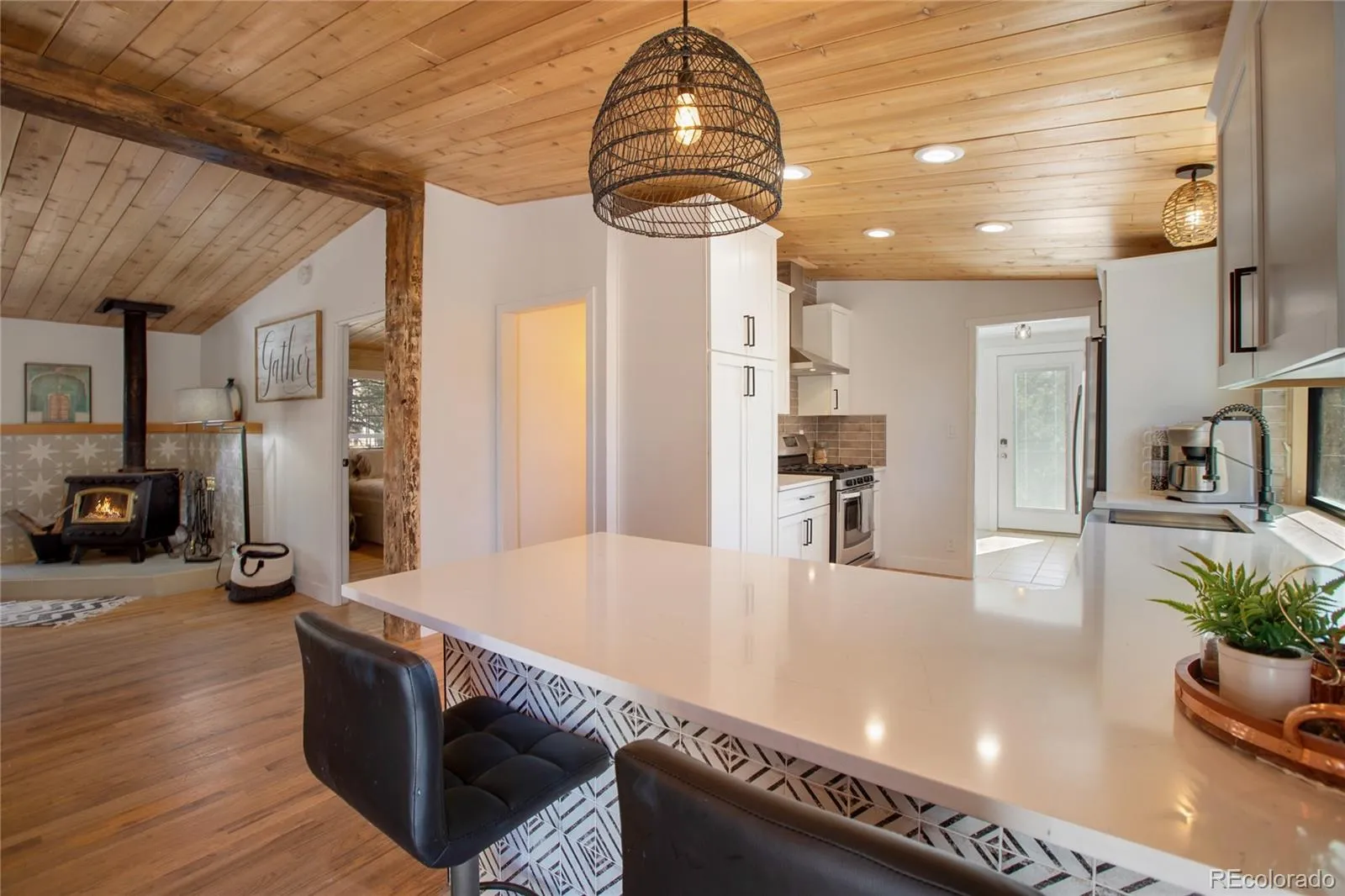 This stunning mountain retreat spans over 3 private acres and blends modern updates with natural beauty. The fully remodeled home features a walk-out finished basement and a spacious wrap-around composite deck, perfect for seamless indoor-outdoor living. Recent upgrades include a newly installed radon mitigation system, a newer roof, fresh interior and exterior paint, a brand-new water heater, and all-new carpet. The original hardwood floors were just refinished, and both the primary bathroom and utility room received updated tile. Inside, the open floor plan is enhanced by vaulted ceilings and a chef’s kitchen equipped with custom soft-close cabinets, a gas cooktop, and breathtaking quartz countertops. A unique pop-out kitchen window opens to the deck, transforming into a covered bar for exceptional entertaining. The great room is cozy, featuring a wood stove that provides warmth along with fantastic views. The spacious dining area seamlessly connects to the wrap-around deck, enhancing the sense of space and tranquility. The kitchen and bathrooms have been meticulously updated with high-end designer finishes. Original wood flooring throughout the main floor is beautifully complemented by new cedar ceilings in the great room, kitchen, and primary suite. The main floor primary suite includes a fully remodeled ensuite bathroom with a spa shower and a spacious walk-in closet. Descending to the finished walk-out basement, you’ll find a large fourth bedroom, with potential to add a bathroom. This space features a pellet stove, ample storage, and direct access to the huge two-car garage. A covered patio and hot tub add to the appeal of this lower level. Situated in an idyllic location, this home is a haven for outdoor enthusiasts, offering activities such as cross-country skiing, hunting, ATV adventures, hiking, biking, and fishing! Be sure to check out the 3D Interactive Virtual Tour with floorplan!
