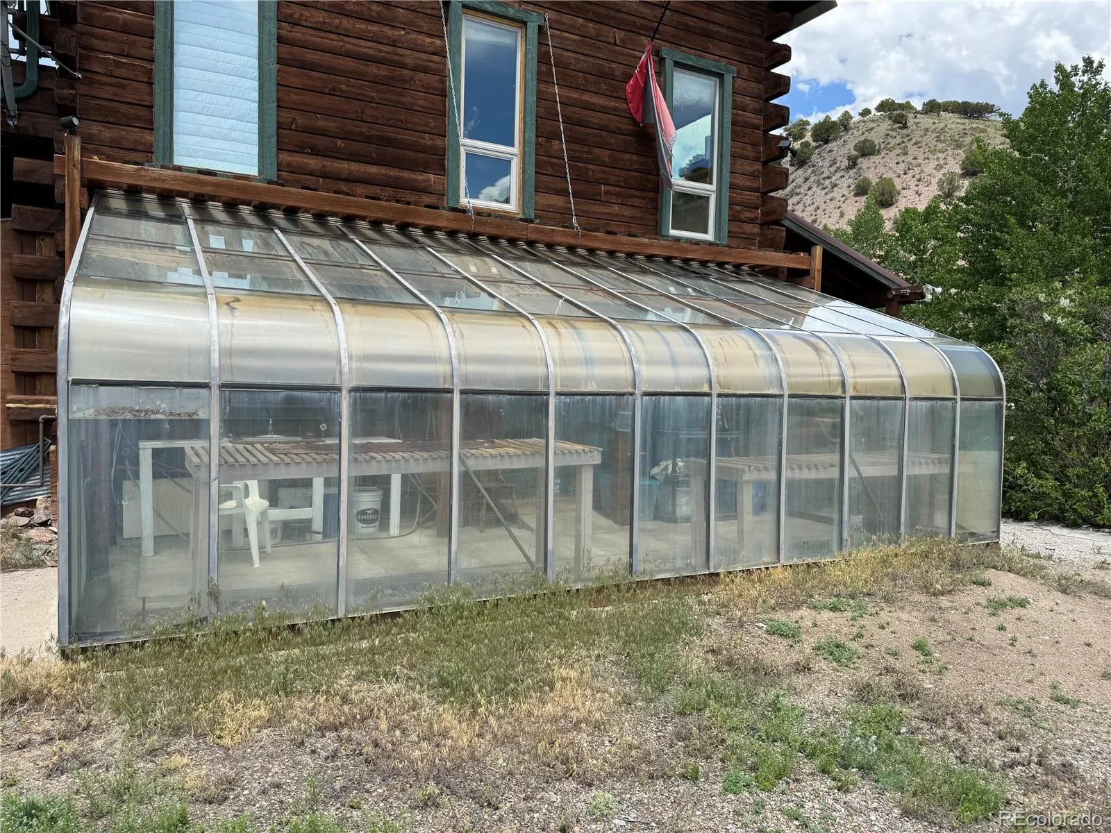 The 3 story log home has been recently remodeled and used as a short term rental. The main House is a true log home with amazing views, large wrap around deck with gas grill, two large living and family rooms for entertaining. Large bedrooms, large master bedroom and bathroom with garden tub and walk in shower and balcony overlooking the pond! Wood Stove and gas forced air for heat, new double pane and triple pane windows. Full Size Greenhouse to go into in the winter time and have coffee and harvest vegetables. The land is level, sub irrigated, grassy meadow with Willow and Aspen Trees. This is a beautiful home on Kerber Creek! This location is prime for outdoor recreation. National Forest access nearby, 4 hot springs resorts nearby. Fishing, Hunting, Hiking, Skiing and Relaxing are all here.