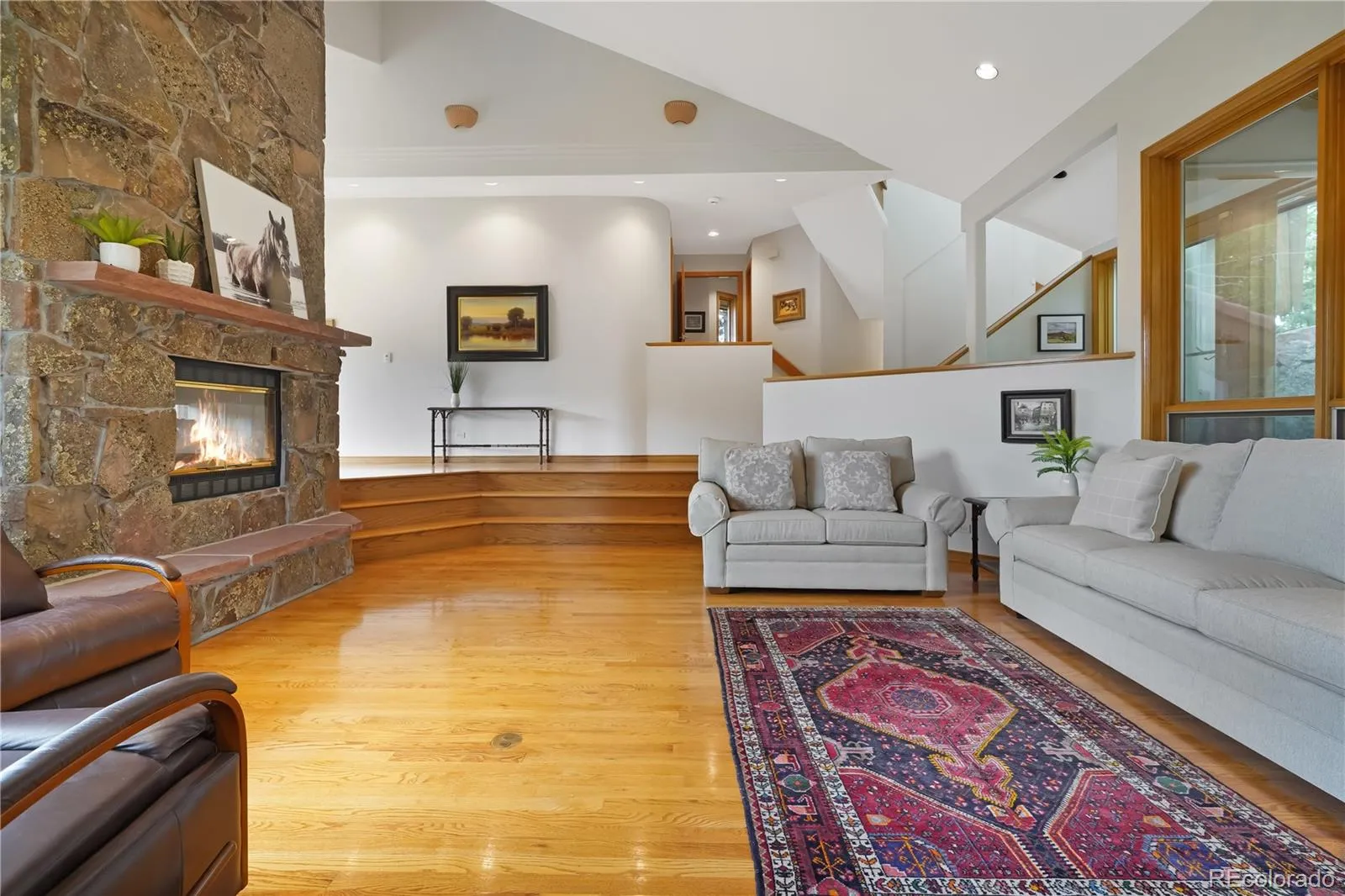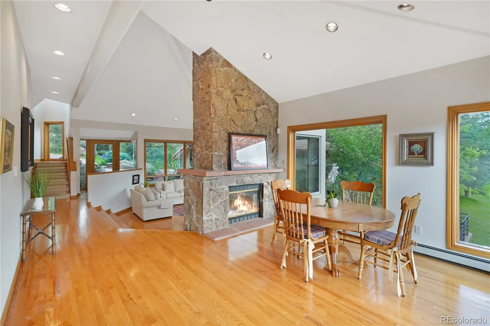 Striking architecture, mountain views, and beautifully landscaped outdoor spaces define this thoughtfully designed home backing to open space. Step inside to a living room that radiates warmth and character, with vaulted ceilings, rich hardwood floors, a dramatic floor-to-ceiling stone fireplace, and an abundance of natural light pouring in through large windows. Enjoy mountain views from the adjoining dining room, which offers seamless access to the deck for easy indoor-outdoor entertaining. The kitchen offers ample cabinet and counter space, gas cooktop, two ovens, a pantry, and a breakfast bar. Retreat to the private primary suite featuring hardwood floors, vaulted ceilings, a spacious walk-in closet, and a large walk-in shower. A bonus space off the suite offers flexibility for a workout room, home office, or peaceful sitting area. Upstairs, you’ll find two additional bedrooms—one currently styled as a home office—and a full bath. The walk-out lower level is designed for fun and flexibility, complete with a wet bar, a cozy two-sided rock fireplace, a bedroom with outdoor access, and a ¾ bath. There’s even a bonus room with wood paneling that’s ideal for a home theater, playroom, or creative space. With tons of storage and thoughtful design throughout, this home offers an exceptional blend of comfort, function, and style. The exterior impresses with professional landscaping, a welcoming front porch, expansive deck, and patio—ideal for entertaining or relaxing in privacy. The oversized three-car garage features floor coating. Genesee offers 12 miles of scenic hiking trails, 1200 acres of open space, two pools, tennis courts, pickleball courts, award-winning schools, a fitness center, a playground, and an array of organized social groups. Wildlife thrives in this picturesque setting, further enhancing the appeal of this remarkable location, all within a convenient 30 minute drive to downtown Denver.