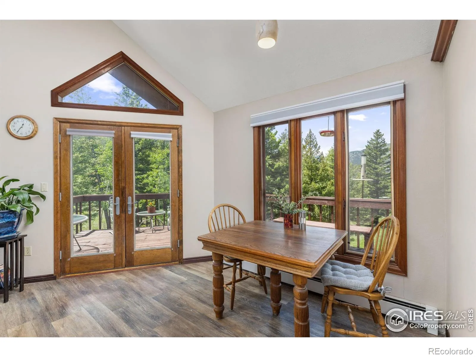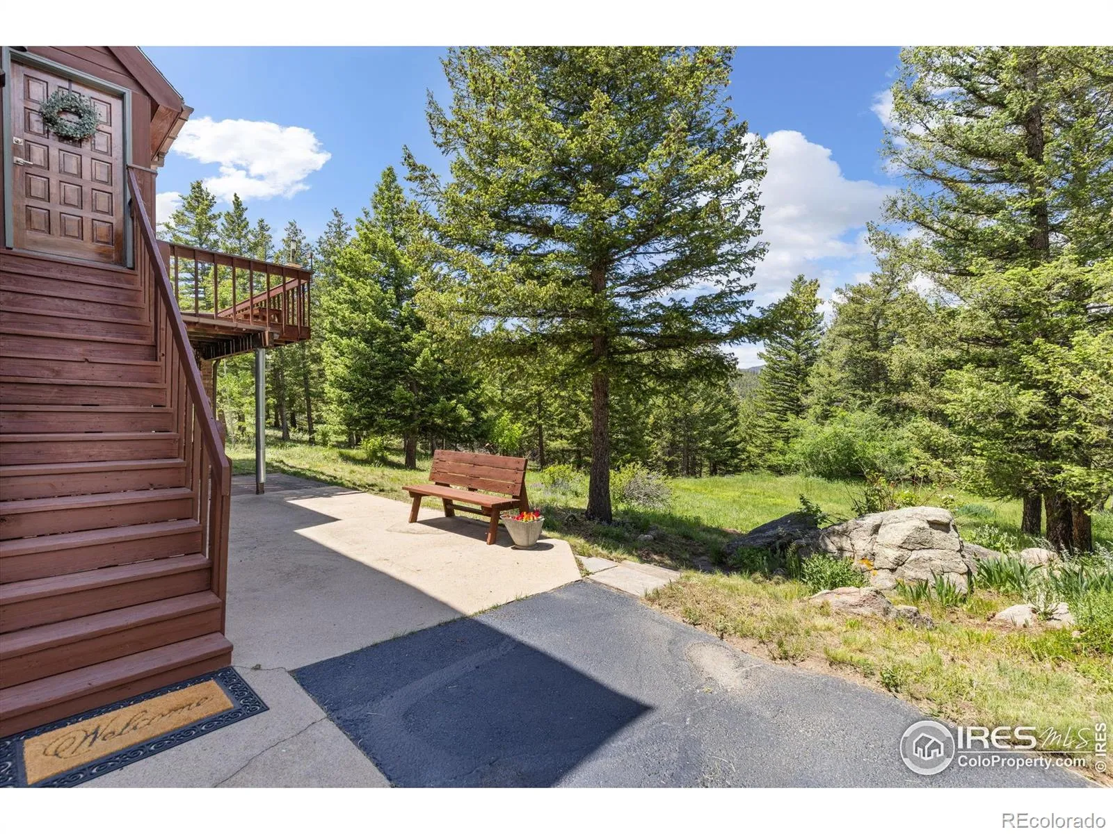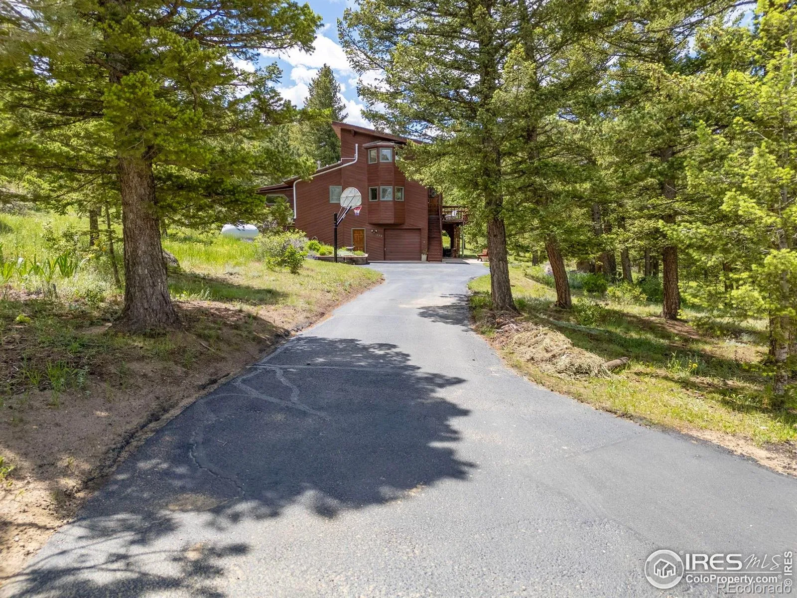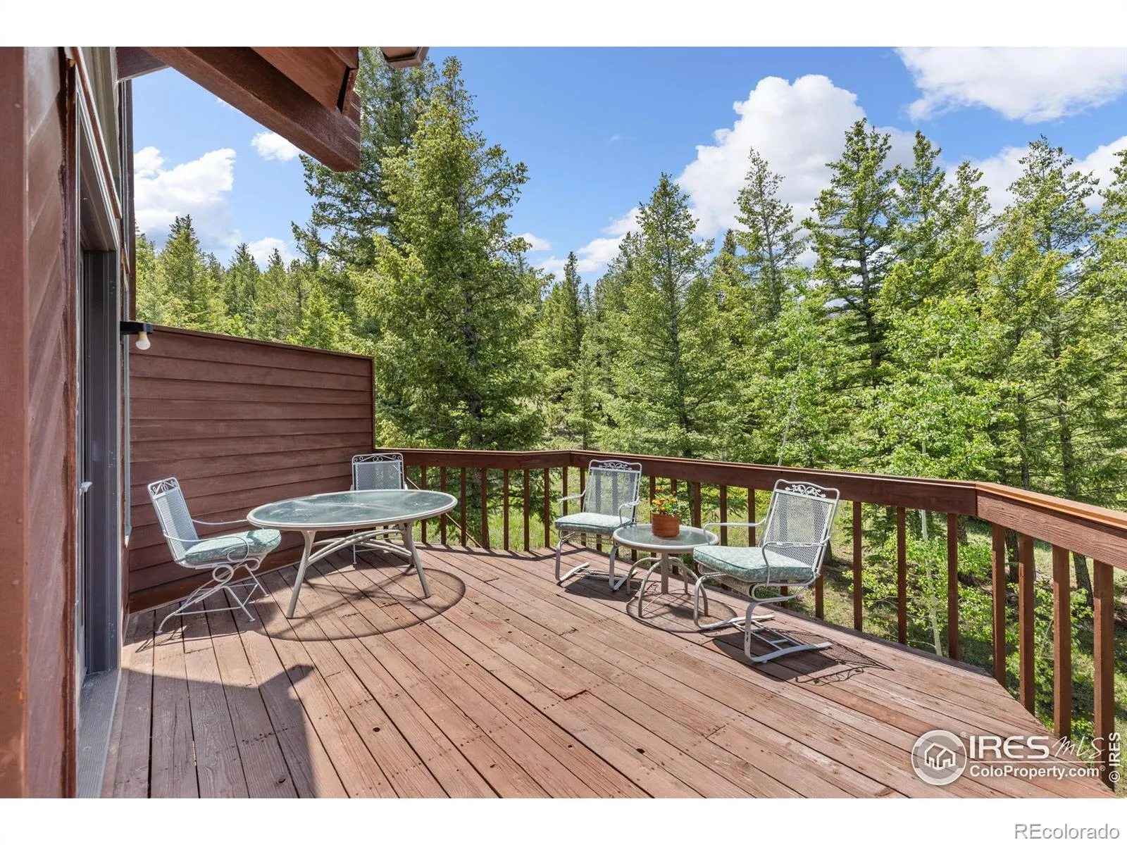 Private mountain escape in Boulder Heights! This secluded wooded lot has over 2 acres, foothills views, a meadow, rock outcroppings, and wildlife throughout. The bright open floorplan features a spectacular great room with walls of windows, vaulted ceilings, wood beams, updated flooring, and French doors leading to a beautiful area with an extended deck. The owner of 40 years has made many updates and the home has been lovingly maintained. The large eat-in kitchen is bright with a bay window, walk-in pantry and secondary storage closet. Each room in the house is open and filled with ample natural light. The Primary bedroom features a bay window and glass doors leading out to a private patio and hot tub space. The lofted bedroom could be used as an office or studio and has a mini split to maintain the perfect temperature. The walkout Lower Level is a flexible space that could be used as a second primary bedroom, an additional living area or an office with a private entrance. The room opens to a beautiful arched covered brick patio. Every aspect of the house was thoughtfully planned. There is another entrance from the front of the house leading to the mudroom/workshop/laundry room. Other features of the property include an enclosed fenced yard for pets to enjoy, a 220 square foot separate storage room at the back of the house, it is Wildfire Partners certified, and it has a large blacktop driveway that is flat, allowing easy access to the house year-round. Experience peace and tranquility in a stunning natural setting. The 3 outdoor living areas are perfect for entertaining or relaxing. Hike and bike in the 240-acre camp with private neighborhood member access. The house is a leisurely 10-minute drive on Boulder County maintained roads (Boulder Valley School Bus Route) to restaurants, coffee, and shopping. All information deemed reliable, but Buyer or Buyer agent to verify.