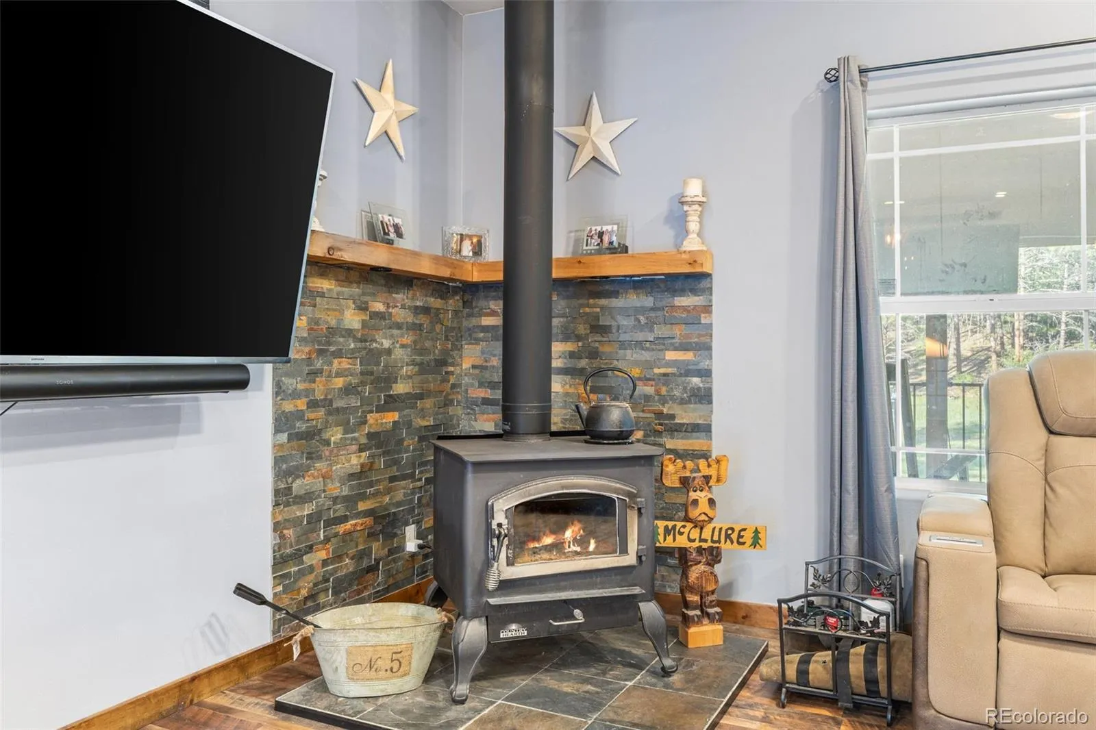 Inside, the home offers four bedrooms—one of which can easily serve as a home office or flex space. The open-concept kitchen flows beautifully into the living room, making it ideal for both everyday living and entertaining. A cozy wood-burning fireplace adds warmth and charm, while central heat and air conditioning keep the home comfortable year-round.