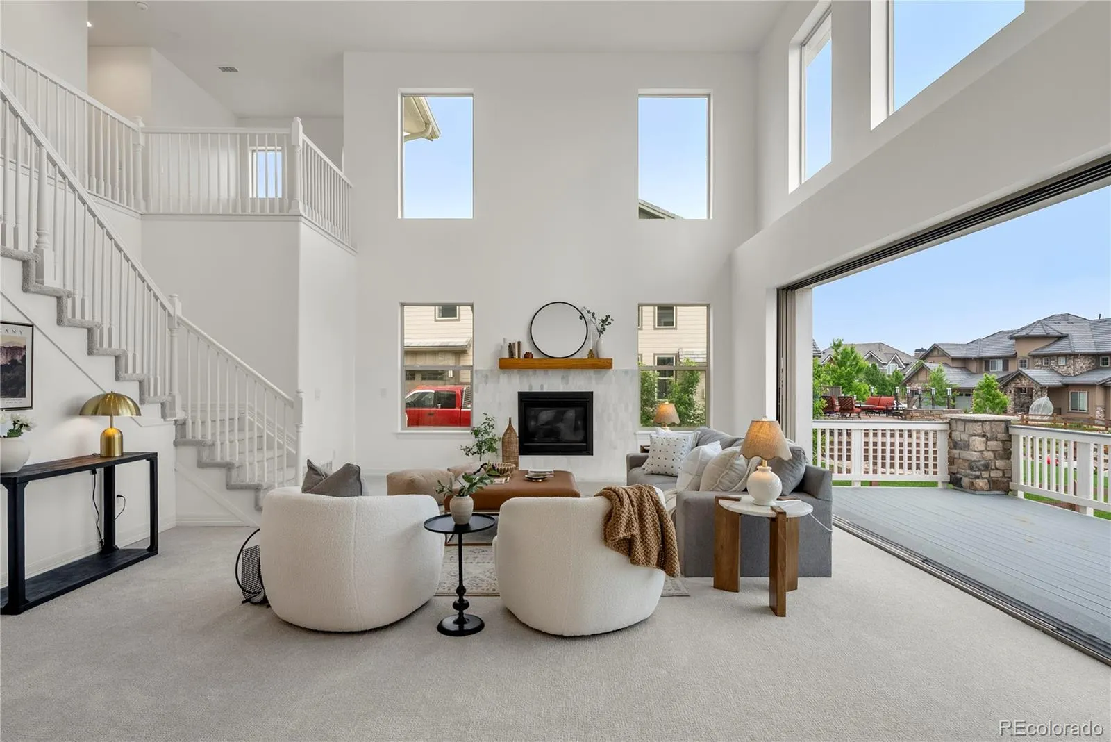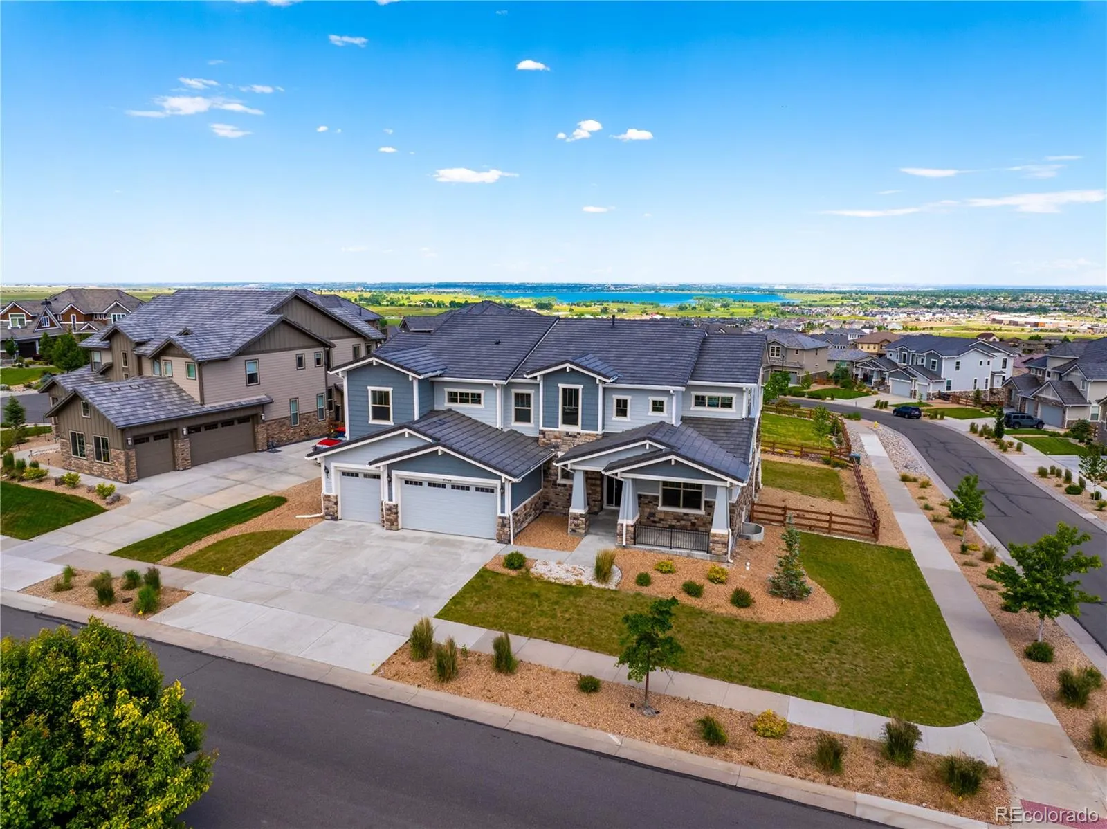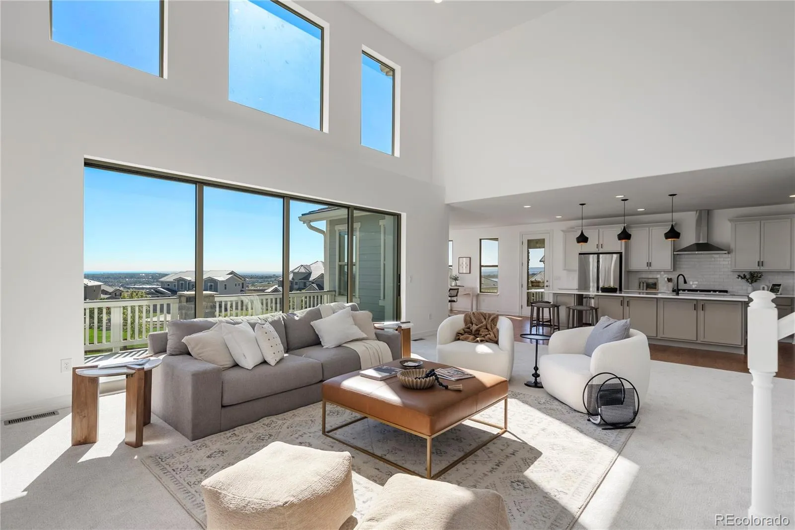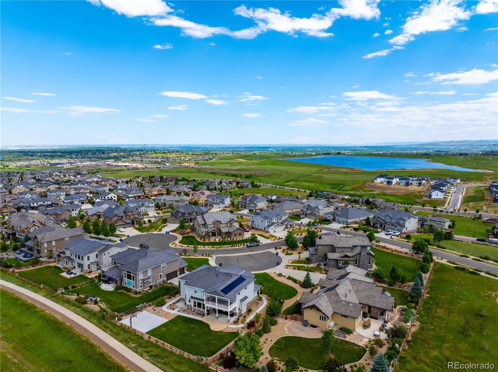 Welcome to one of the most desirable addresses in Candelas—Poppy Way, where this stunning Toll Brothers home offers unobstructed panoramic views of Standley Lake, the Denver skyline, and the Rocky Mountains. Situated on a premium .35-acre double cul-de-sac lot conveniently located next to the trail head, this fully refreshed residence is an exceptional blend of sophistication, space, and scenery. Step into a dramatic two-story foyer with a sweeping circular staircase that sets a refined tone. The home has been thoughtfully updated with new carpet throughout, fresh interior paint, and updated lighting fixtures that elevate every room. The gourmet kitchen impresses with an oversized 8-seat island, gas range, walk-in pantry with power outlet, and custom wine rack, opening to a sun-filled dining area framed by seven windows. The expansive great room features a two-story wall of windows, gas fireplace, and disappearing pocket doors leading to a covered deck—perfect for entertaining with breathtaking views. The main level offers flexible living with a formal dining/family room, a private office with mountain views, a guest suite, and a mudroom/laundry area. Upstairs, the primary suite is a private retreat with a sitting area, two walk-in closets, a spa-inspired five-piece bath, and a private deck to enjoy peaceful mornings. Two additional bedrooms, both with walk-in closets, a full bath, and a loft provide space and comfort. The walk-out basement offers endless potential, fitted with pre-plumbing and climate control, and the fenced backyard is ideal for enjoying the outdoors. Enjoy Colorado sunsets from the front porch and sunrises from any of the three decks. Located in the amenity-rich Candelas community with pools, trails, parks, sports courts, and top-rated Three Creeks K–8 School just minutes away. This is a rare chance to experience the very best of luxury Colorado living.