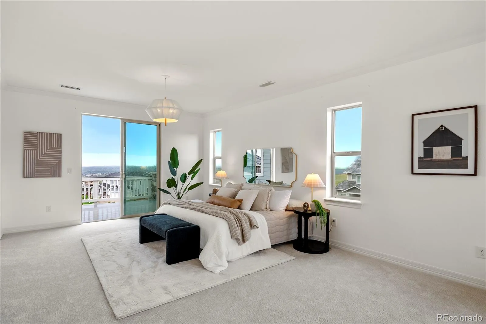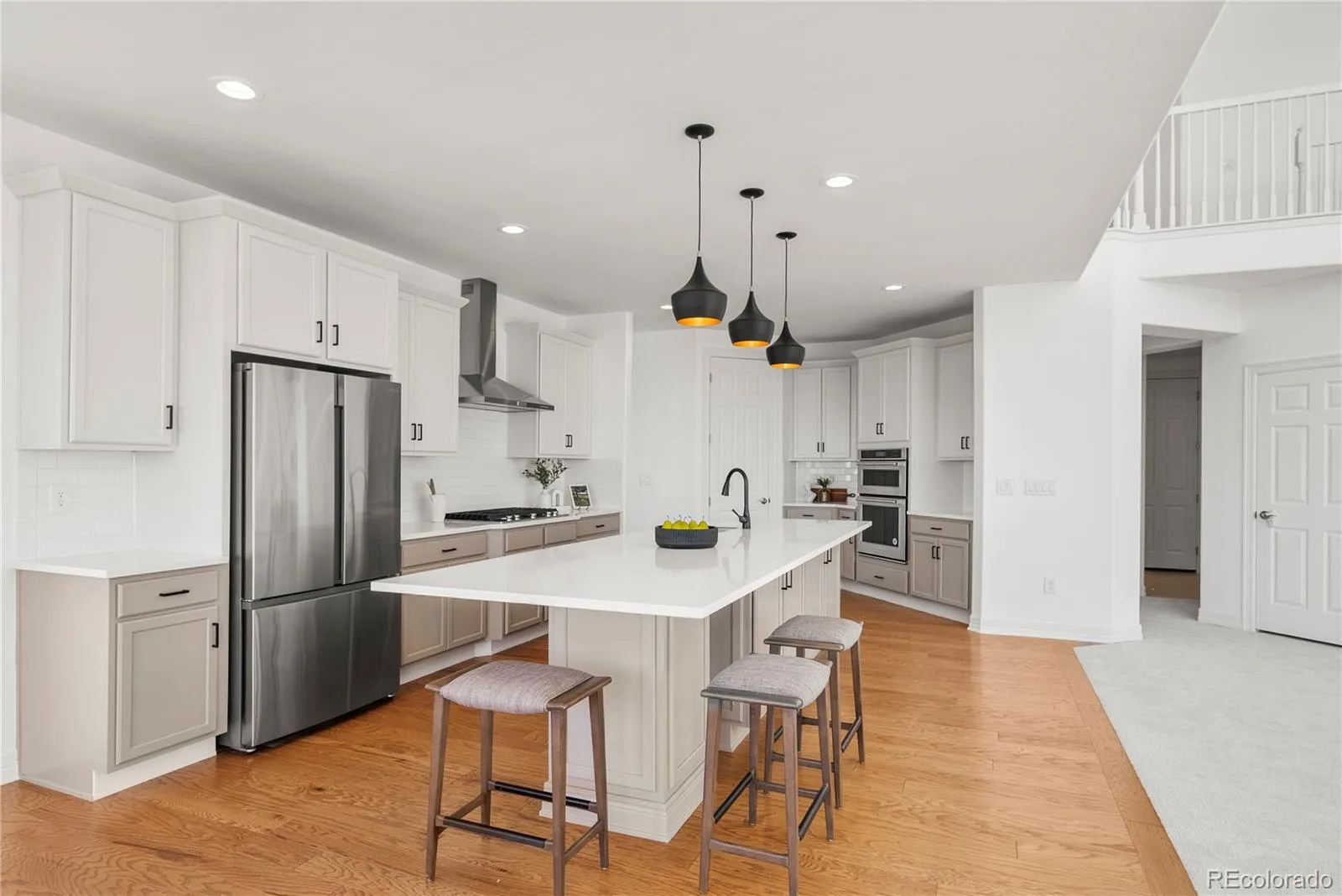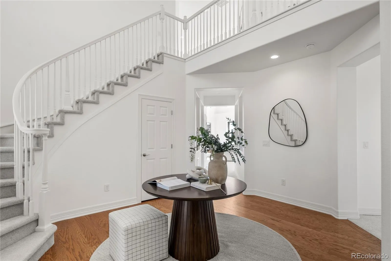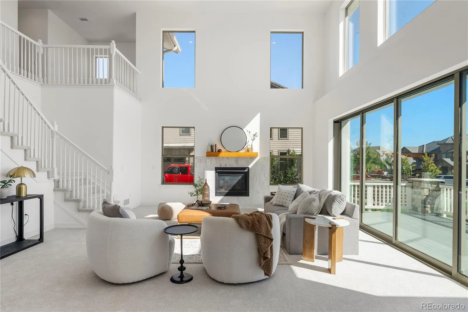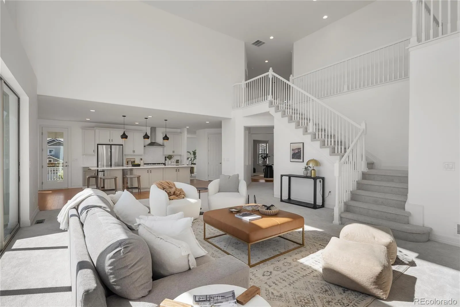 Welcome to one of the most desirable addresses in Candelas—Poppy Way, where this stunning Toll Brothers home offers unobstructed panoramic views of Standley Lake, the Denver skyline, and the Rocky Mountains. Situated on a premium .35-acre double cul-de-sac lot conveniently located next to the trail head, this fully refreshed residence is an exceptional blend of sophistication, space, and scenery. Step into a dramatic two-story foyer with a sweeping circular staircase that sets a refined tone. The home has been thoughtfully updated with new carpet throughout, fresh interior paint, and updated lighting fixtures that elevate every room. The gourmet kitchen impresses with an oversized 8-seat island, gas range, walk-in pantry with power outlet, and custom wine rack, opening to a sun-filled dining area framed by seven windows. The expansive great room features a two-story wall of windows, gas fireplace, and disappearing pocket doors leading to a covered deck—perfect for entertaining with breathtaking views. The main level offers flexible living with a formal dining/family room, a private office with mountain views, a guest suite, and a mudroom/laundry area. Upstairs, the primary suite is a private retreat with a sitting area, two walk-in closets, a spa-inspired five-piece bath, and a private deck to enjoy peaceful mornings. Two additional bedrooms, both with walk-in closets, a full bath, and a loft provide space and comfort. The walk-out basement offers endless potential, fitted with pre-plumbing and climate control, and the fenced backyard is ideal for enjoying the outdoors. Enjoy Colorado sunsets from the front porch and sunrises from any of the three decks. Located in the amenity-rich Candelas community with pools, trails, parks, sports courts, and top-rated Three Creeks K–8 School just minutes away. This is a rare chance to experience the very best of luxury Colorado living.