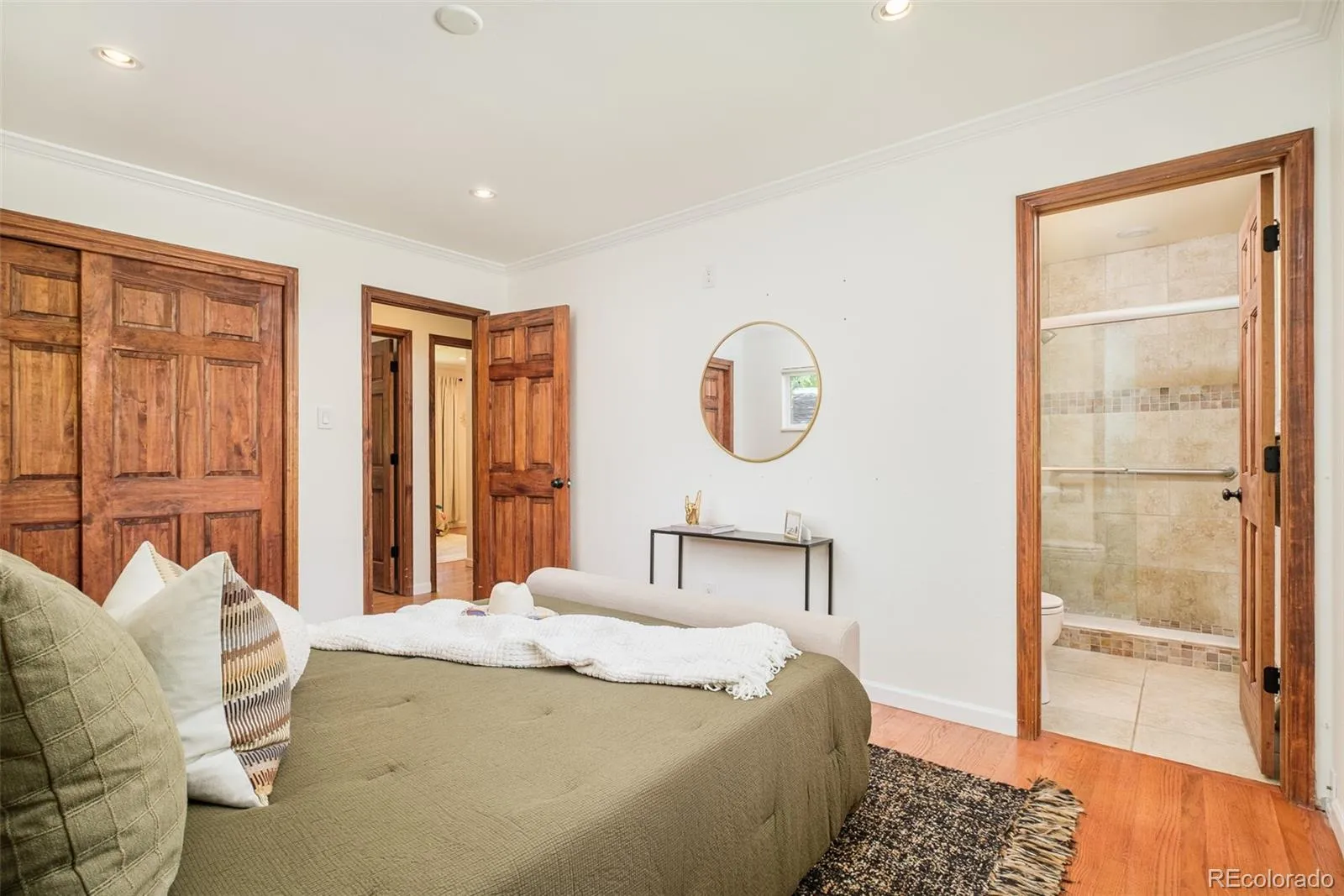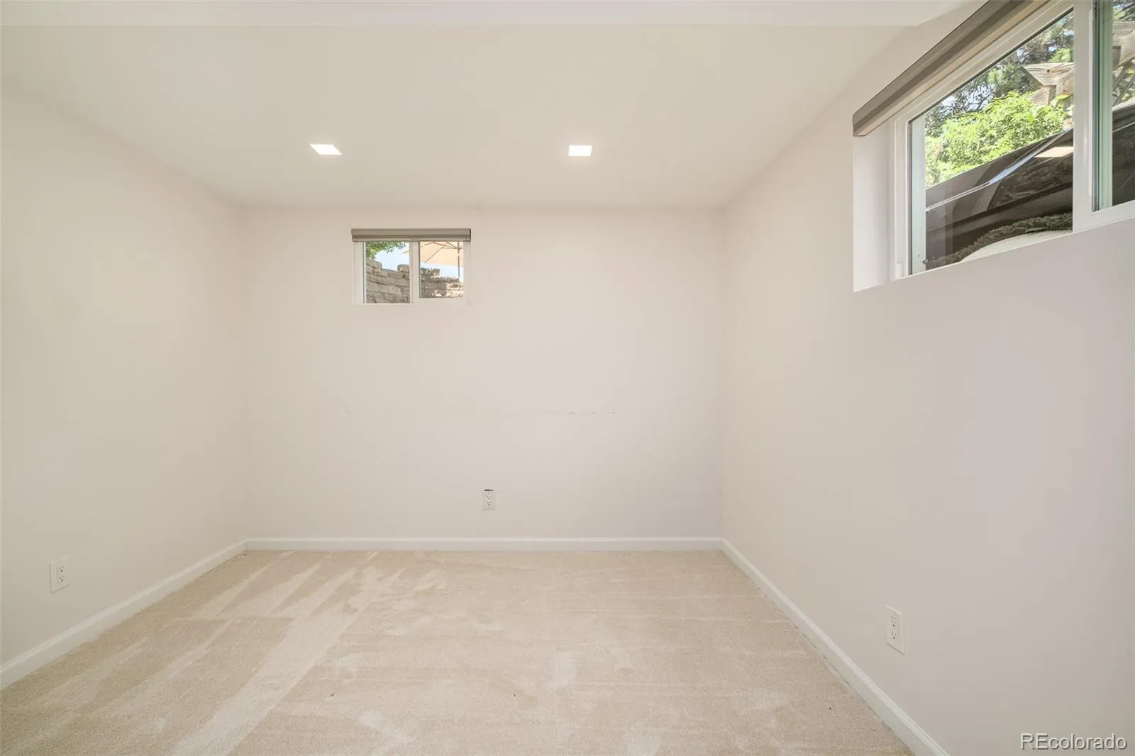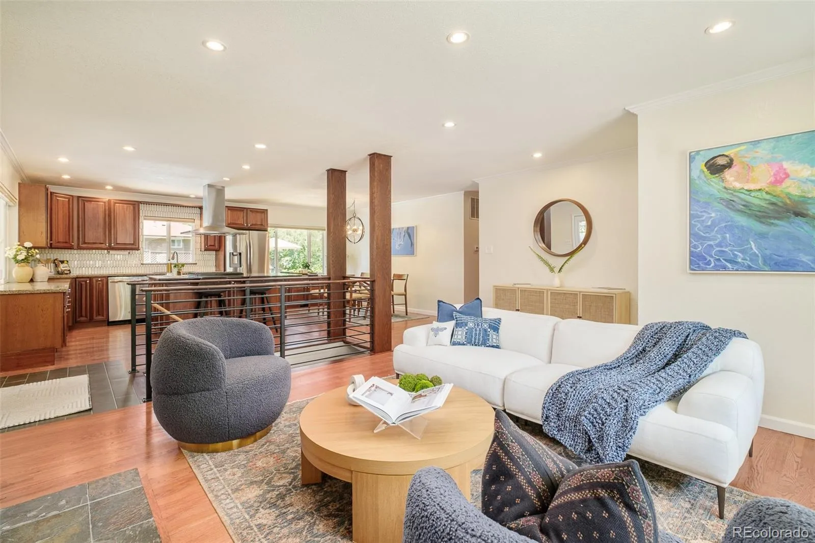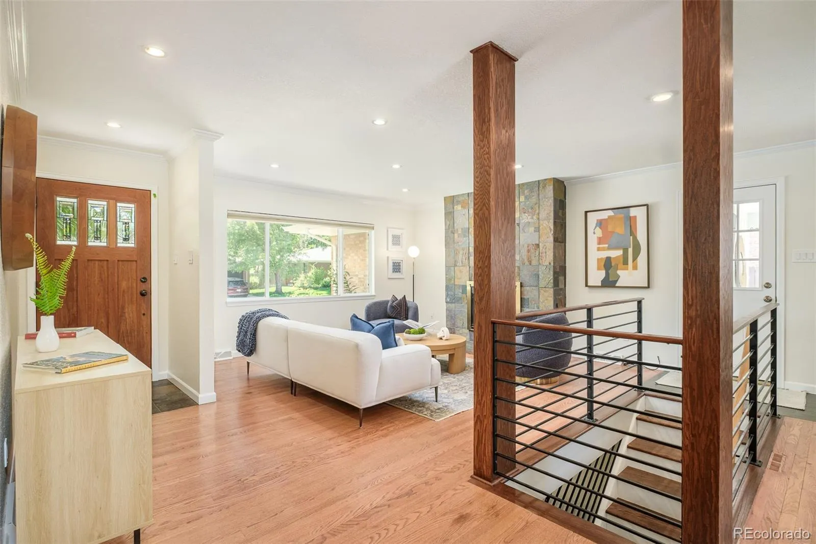 Beautifully updated, this move-in ready brick home boasts a beautiful backyard oasis with a swimming pool. Situated on a quiet cul-de-sac in Hutchinson Hills, a welcoming exterior draws residents into an open layout flowing with hardwood flooring. Grounded by a fireplace, the living area opens into a gourmet kitchen featuring 42-inch cabinetry, quartz countertops, new gas cooktop and an elegant dining area. Escape outdoors to an expansive covered patio in a thoughtfully landscaped backyard flaunting a heated pool with automatic cover, a dog run, a garden area and privacy fencing. The main-floor primary suite is complemented by a serene bathroom. Downstairs, the finished basement offers a spacious rec room, full bath, two non-conforming bedrooms one with a builtin Murphy bed and additional storage. The flexible bonus space ideal for a home salon, studio or storage. Tesla solar panels are owned by seller which promote energy efficiency. A central location offers proximity to the High Line Canal Trail, Bible Park and the Southmoor light rail station.