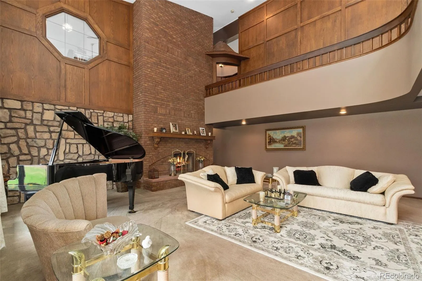 Step into a dramatic two-story great room with a grand fireplace, exposed brick and stone, and soaring wood finishes. Entertain in warm, welcoming formal spaces or gather around the chef’s kitchen featuring granite countertops, custom cabinetry, double ovens, and a generous island that flows into both casual and formal dining areas. Arched entries, carved doors, and ceiling artistry elevate every room.