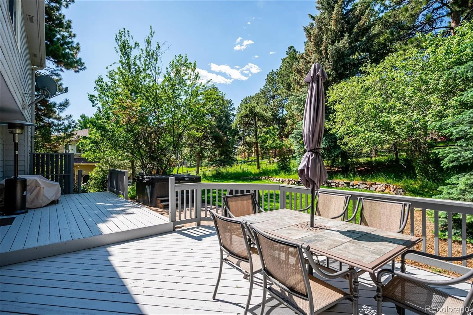 Just Reduced for exceptional value in Evergreen home. We’ve just reduced the price to create unbeatable value for the savvy buyer, imagine cozy winter nights by the fireplace and hosting festive gatherings in your new mountain home. Enjoy the Evergreen Experience! Welcome to Hiwan, a picturesque and well-established neighborhood nestled in the foothills of the Rocky Mountains. Known for its scenic beauty and rustic charm, Hiwan boasts architecturally distinctive homes surrounded by towering pines and winding roads. With a cul-de-sac location and well-respected schools this stunning Genesee-built home offers 3,800 square feet of finished living space where mountain serenity meets modern convenience. Ideally located near the Hiwan Golf Course, the home offers easy access to both outdoor adventures and community amenities. Ride your bike to Elk Meadow Park for exceptional mountain biking or jump on I-70—just five minutes away—for a smooth commute to DIA, downtown Denver, or world-class ski resorts. Inside, you will find vaulted ceilings, abundant natural light, hardwood floors, and two cozy gas fireplaces. The kitchen features a sunlit eat-in nook, perfect for casual meals, while the formal dining room and adjacent deck make entertaining a breeze. A main-level office offers flexibility for remote work, and the upper-level primary suite is a true retreat with a vaulted ceiling. Upstairs, the laundry room adds everyday convenience. The finished basement includes two spacious bedrooms with egress windows, a large recreation room, and a full bathroom—perfect for guests or multigenerational living. Out back, a large deck with a hot tub invites you to relax under the stars. Just off the kitchen, an additional deck provides the ideal spot for summer BBQs. Complete with a three-car garage (3rd stall for that golf cart) and a coveted storage shed, this home is mountain living at its finest.