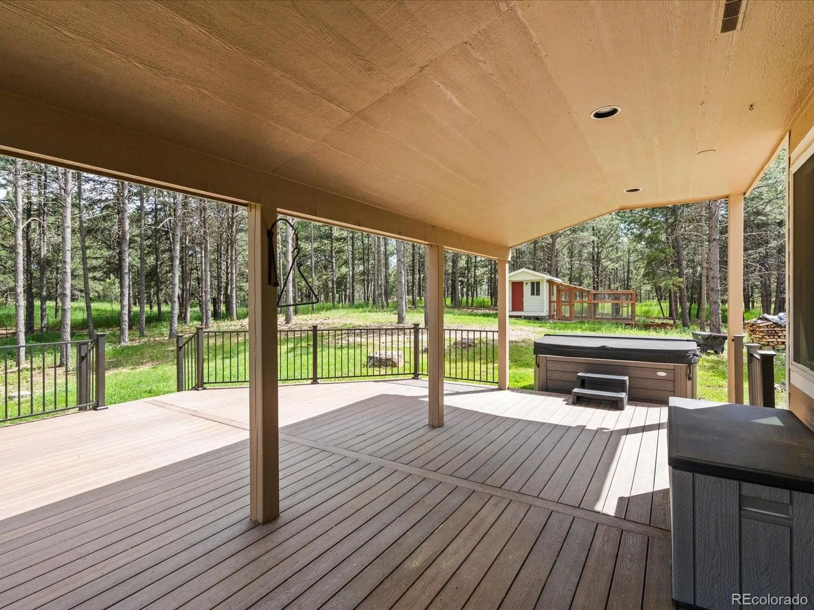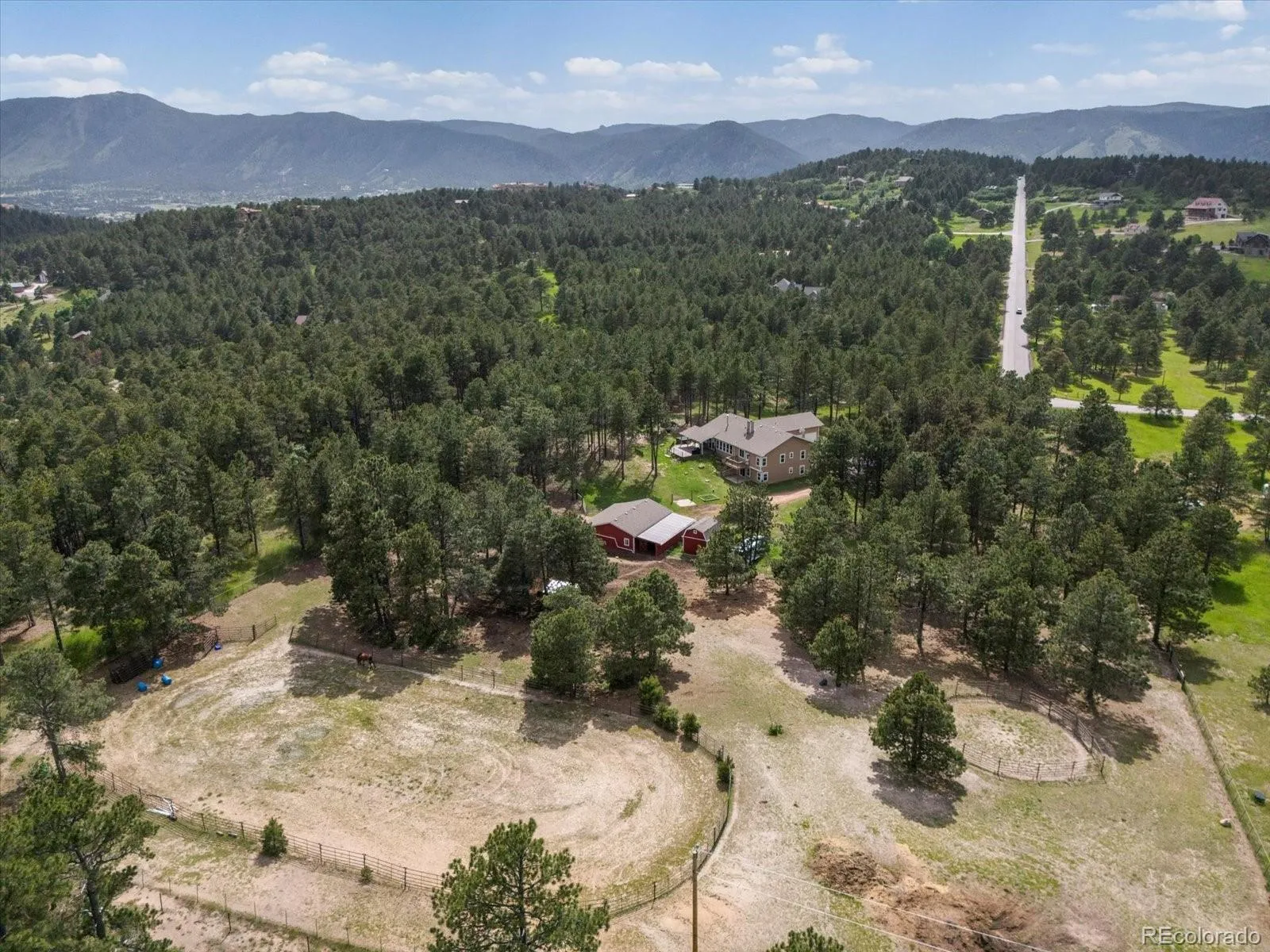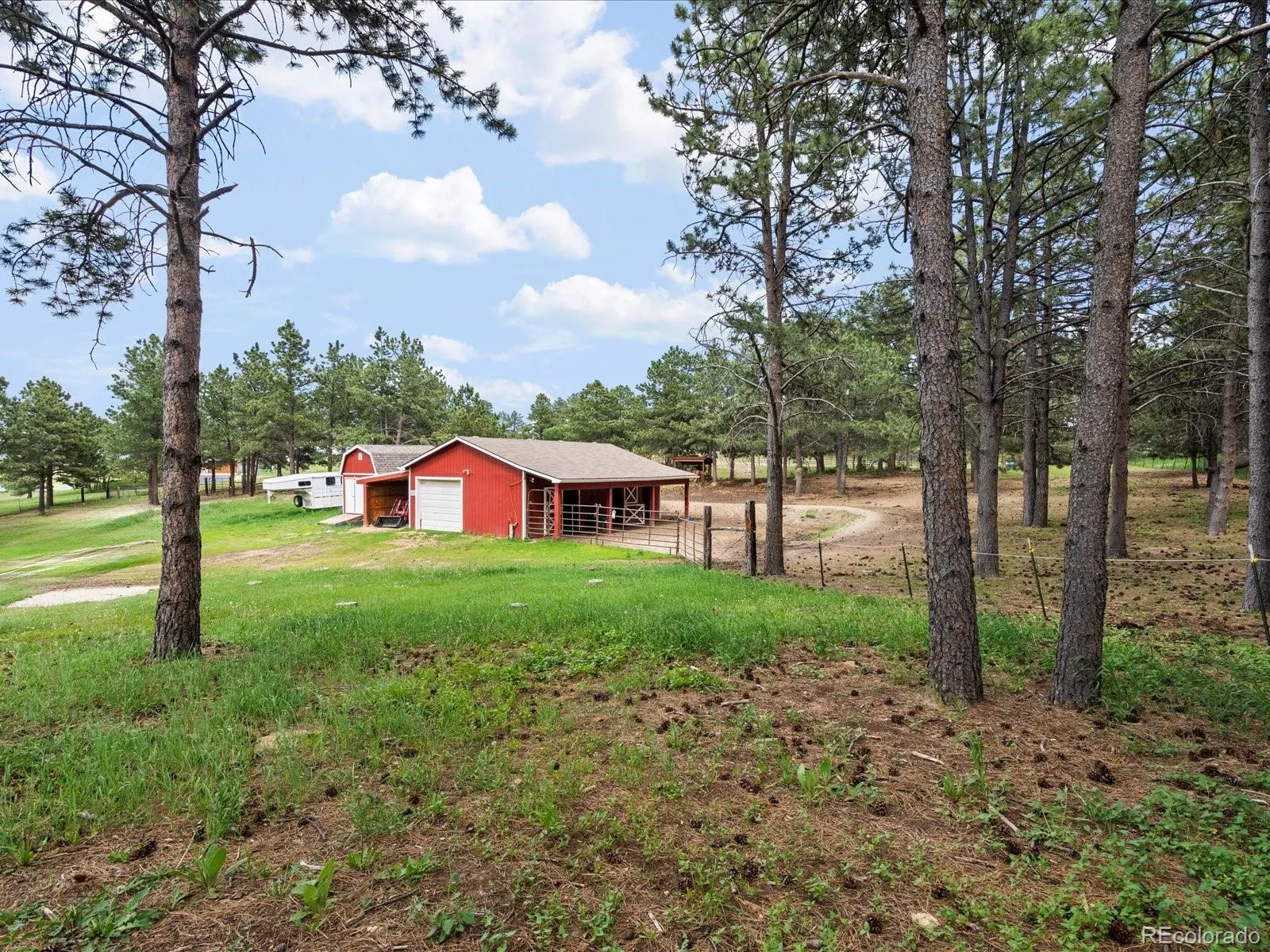 Welcome to your private retreat nestled in the trees! This beautiful 5-bed, 4-bath home with 4 stall barn sits on 5 wooded acres and is fully set up for horse lovers or anyone seeking peace, quiet and room to roam. Entering the home via the foyer on the main level you will find a large and spacious family room with wood burning brick fireplace, dining room, and a beautifully appointed kitchen with modern finishes, great storage and plenty of space for cooking, eating and gathering. The main floor primary suite with en-suite 5 piece bath and walk in closet has access to a newly rebuilt private deck for relaxing under the stars. 2 additional bedrooms, a full bath, 1/2 bath, mud room and large laundry room with utility sink complete the main level. Off of the kitchen you can access the massive covered deck with plenty of room to unwind amongst the pines, soak in the 1 year old hot tub, grill or just enjoy the tranquility of rural living. The basement is accessed off of the hallway and contains a large great room, 2 bedrooms, an office that could easily be a 6th bedroom, a full bath and large unfinished storage area currently used as a gym and workshop. Outside, the property shines with a 4-stall barn complete with electricity, water & tack room, a chicken coop w/run, an arena and fenced pasture. The yard is fully fenced to give your horses plenty of room to run and play. There’s also a versatile shop/tractor shed and an attached 3-car garage to store tools, toys, tractors or ? So much storage! The current owners use wood from the land to double as fire mitigation and heating the house- win/win! With updates throughout and brand new paint and carpet this is one you can’t miss.