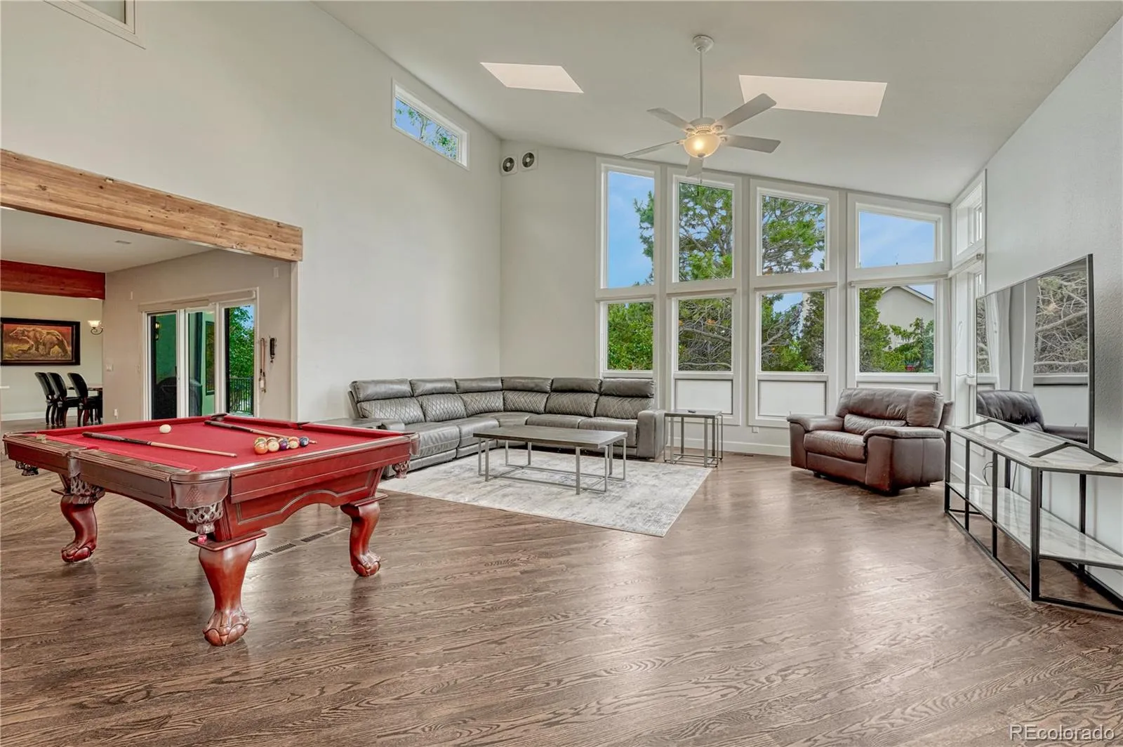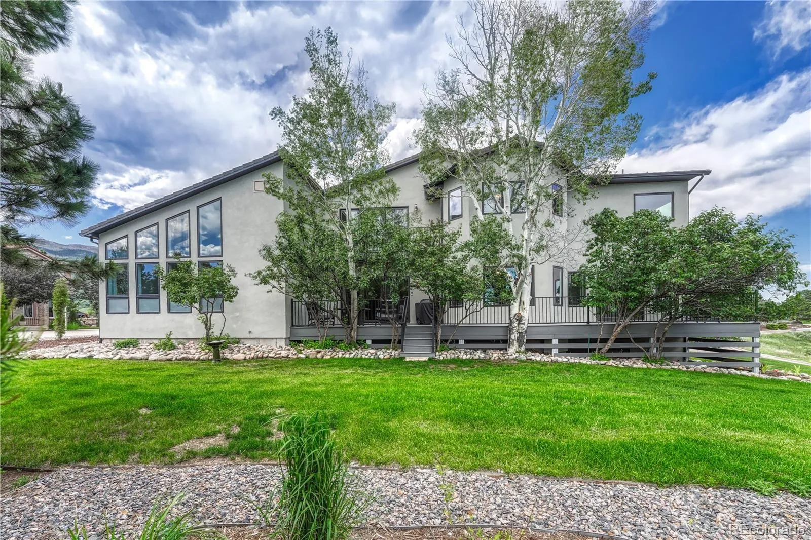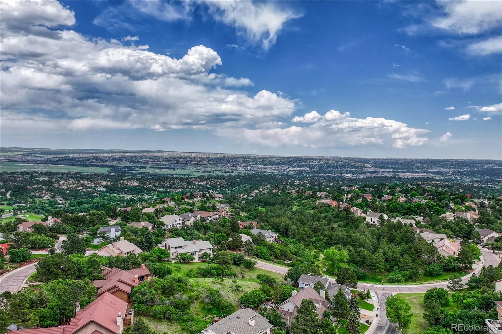 Awesome city views await you from this 5 bdrm, 5 bath, 3 car home atop Rockrimmon! This property boasts 7325 of FINISHED sq. feet to include a main level bdrm, main level office (w/closet), several family rooms (with fireplaces), and 3 furnaces. As you enter from the covered front porch you’re greeted with a spacious living room with lovely views of Colorado Springs. The adjacent dining room has a built in dry bar and connects to the kitchen where you’ll find more room for another dining room table and a cute family room that walks out to the back porch, along w/another spacious “family” or gathering room with space for a pool table! Head upstairs to the ultra-private primary where you’ll find a cozy sitting area, a huge walk-in closet, and access to the upper deck. You’ll also find 2 more sunny bedrooms with a shared updated dual-vanity bathroom. Looking for a home theatre area? You’ll find that in the garden level basement that has tons of natural light and another bedroom w/a full attached bath (it has a bidet!) Also, there’s no shortage of storage in this home with a 29×32 mechanical room containing built-ins. There is also a carpeted cedar closet for extra storage. Outside is absolutely captivating w/lots of trees, annual flowers, and an electric fence. This home has too many spectacular features to list, so bring your buyers and come see for yourselves!