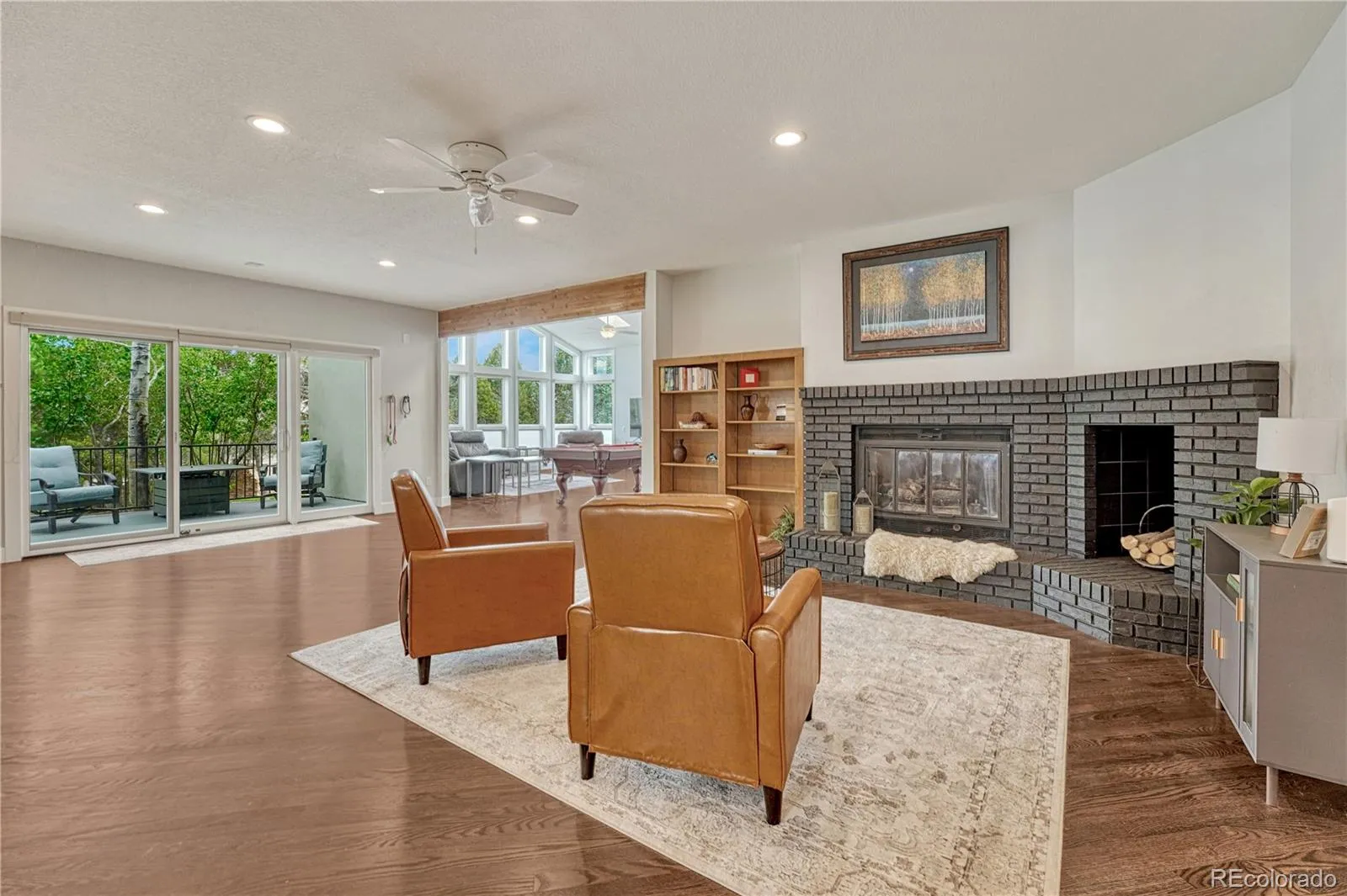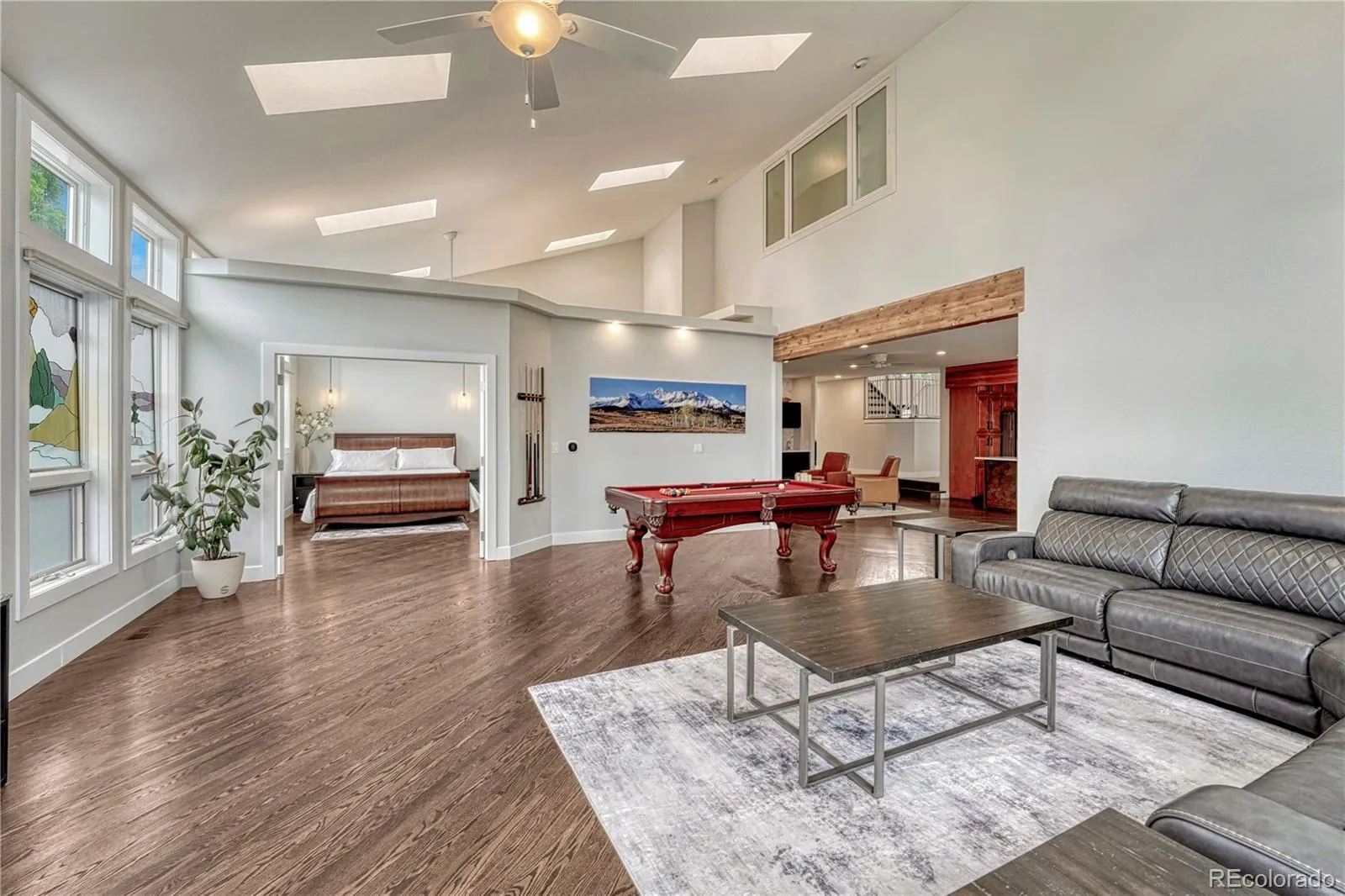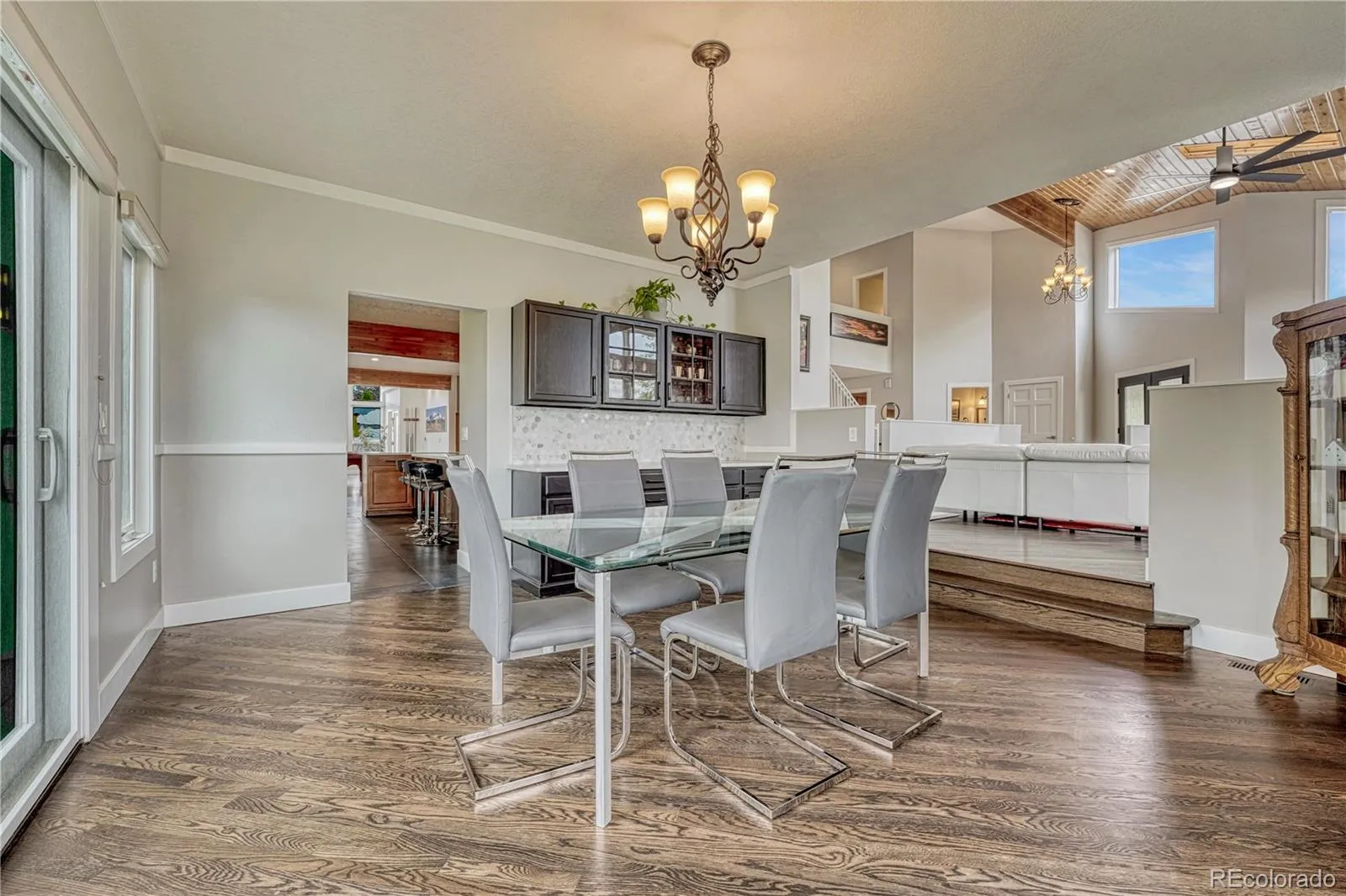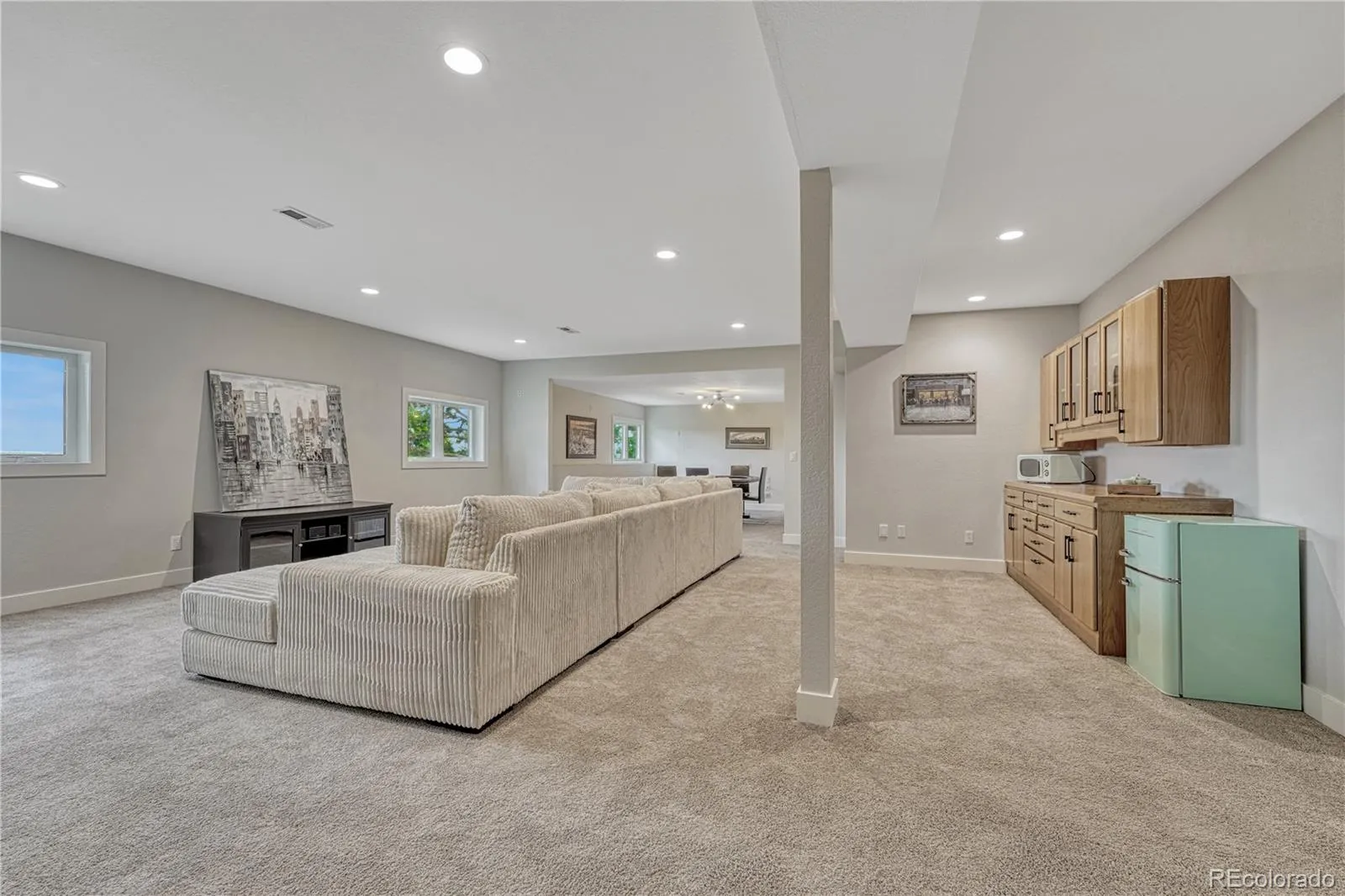 Awesome city views await you from this 5 bdrm, 5 bath, 3 car home atop Rockrimmon! This property boasts 7325 of FINISHED sq. feet to include a main level bdrm, main level office (w/closet), several family rooms (with fireplaces), and 3 furnaces. As you enter from the covered front porch you’re greeted with a spacious living room with lovely views of Colorado Springs. The adjacent dining room has a built in dry bar and connects to the kitchen where you’ll find more room for another dining room table and a cute family room that walks out to the back porch, along w/another spacious “family” or gathering room with space for a pool table! Head upstairs to the ultra-private primary where you’ll find a cozy sitting area, a huge walk-in closet, and access to the upper deck. You’ll also find 2 more sunny bedrooms with a shared updated dual-vanity bathroom. Looking for a home theatre area? You’ll find that in the garden level basement that has tons of natural light and another bedroom w/a full attached bath (it has a bidet!) Also, there’s no shortage of storage in this home with a 29×32 mechanical room containing built-ins. There is also a carpeted cedar closet for extra storage. Outside is absolutely captivating w/lots of trees, annual flowers, and an electric fence. This home has too many spectacular features to list, so bring your buyers and come see for yourselves!