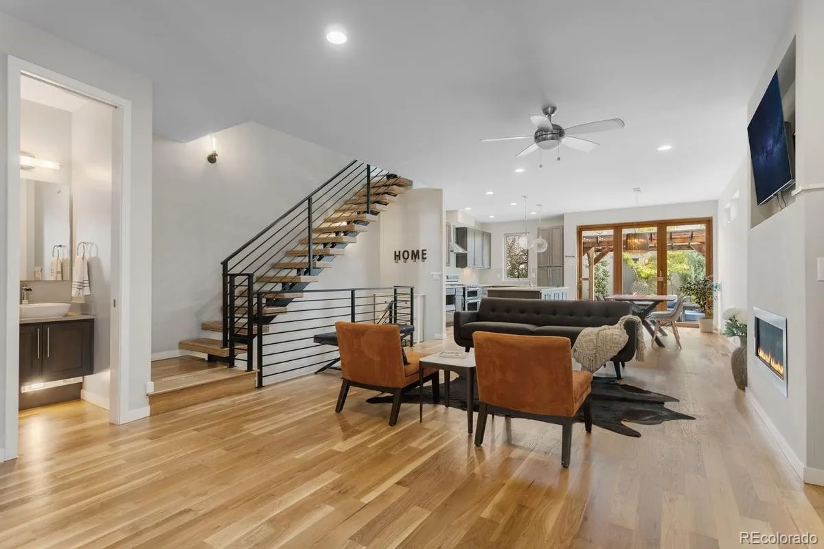 Livability is at 100! with five bedrooms (three of which are together on the second floor) + an office/study just inside the front door + five bathrooms + three balconies + a wet bar on the top floor makes this “The One”. This home is skipping or rolling distance from 30+ restaurants on Evans, S. Downing and others in Platte Park.