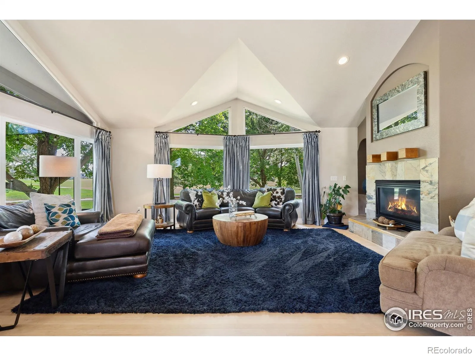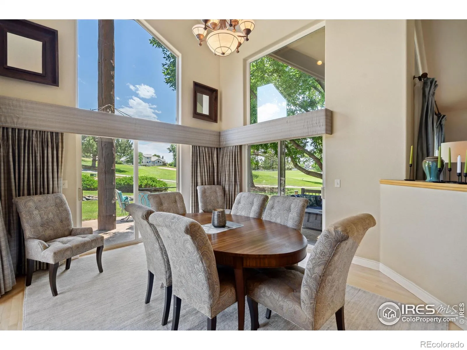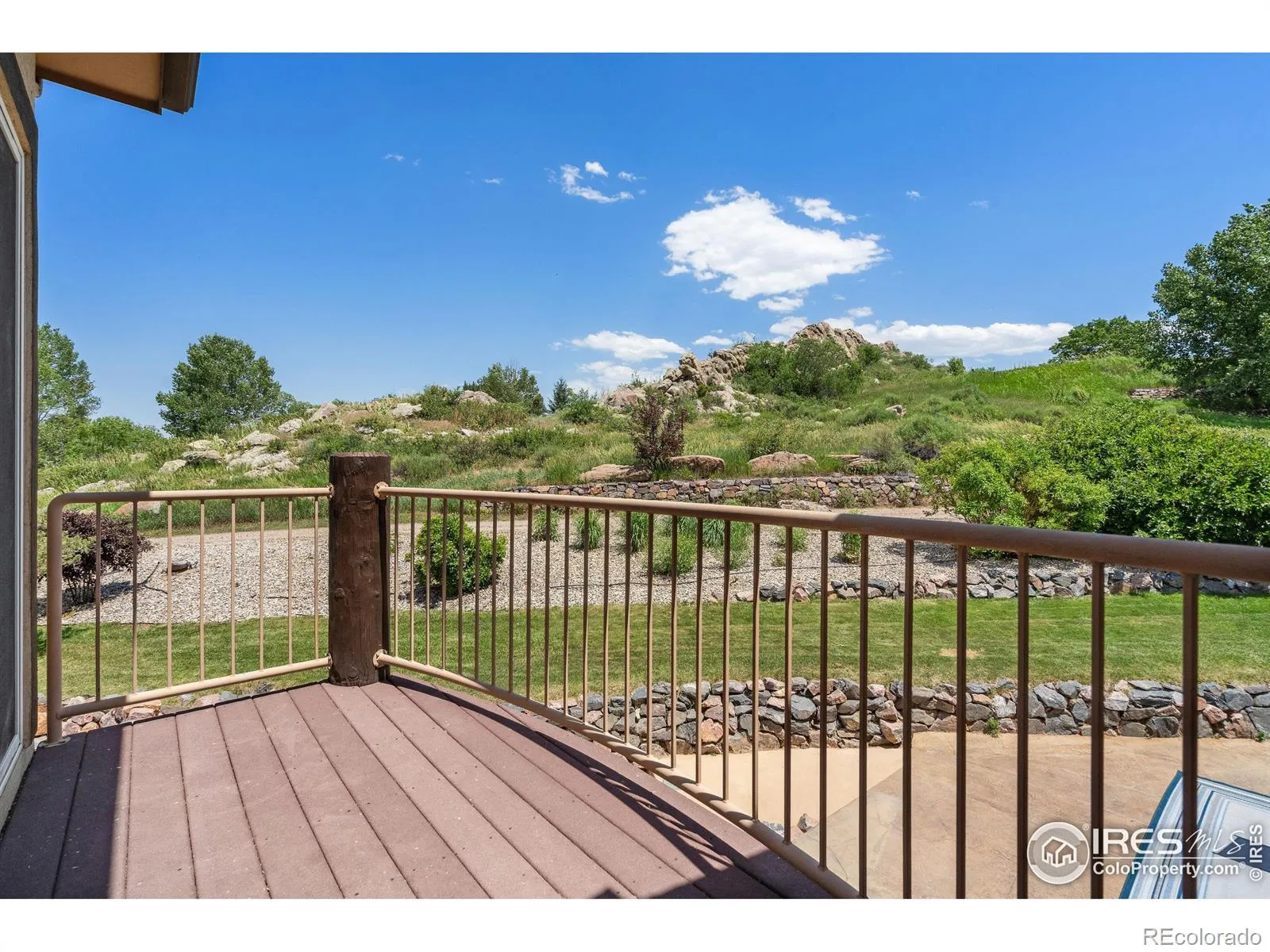 Golfer’s Dream in Mariana Butte! Nestled on the 9th hole of the scenic Mariana Butte Golf Course, this custom-built 4-bedroom, 3.5-bath, 5,001 sq ft home offers unparalleled mountain views and an extraordinary outdoor living experience.Situated on a quiet Cul-de-sac, the property boasts direct access to the Mariana Butte scenic trail and is just minutes from the Devil’s Backbone Hiking Trail and Sweetheart Winery. Only a 45-minute drive to the iconic Estes Park, it blends tranquility with convenience. Built in 2000 with exceptional craftsmanship, the home features beautiful timber structures, including a charming breakfast nook with butler bar and rich cherry cabinetry. Soaring cathedral and vaulted ceilings enhance the spaciousness throughout. French doors in the top-floor primary suite open to a private balcony with sweeping foothill views, providing the perfect spot to relax and take in Colorado’s natural beauty. The suite also offers a spa-like en suite with a jacuzzi tub and a generous walk-in closet. The main level includes two well-appointed bedrooms, a large kitchen with an island, a welcoming foyer, a formal dining area, and a cozy living room with a gas fireplace. The basement is a versatile space, offering a fourth bedroom and full bath, plus two bonus rooms perfect for a home office, gym, or additional living space. Abundant storage throughout ensures every need is met. From the main level, step outside to the wraparound patio where you’ll find a peaceful waterfall pond and a beautifully landscaped garden teeming with Colorado wildlife like elk and turkeys. The home is equipped with two hot water heaters, three furnaces, and two A/C units for year-round comfort and optimal climate control.Whether you’re a golfer, nature lover, or simply seeking a peaceful retreat close to town, this home is a rare gem that provides the best of both worlds. Don’t miss the opportunity to make it yours!