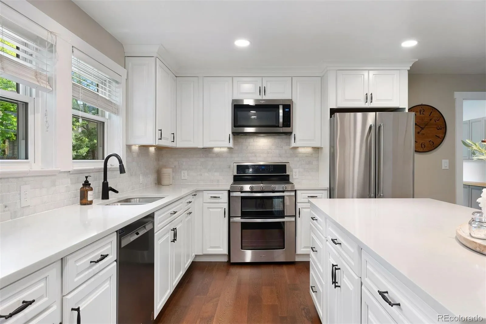 For two generations, this cherished home has been lovingly cared for and thoughtfully updated, with over $400,000 in improvements ensuring it’s as beautiful and functional as it is full of memories. From the moment you step through the double front doors, you’re greeted by a grand two-story foyer with a curved black-iron staircase and timeless brick flooring. To the left, the oversized living room, with its large bay window, is fondly known as the Whiskey/Smoke Room (though it’s hosted more laughter than smoke). To the right, the spacious dining room is complete with a new chandelier, bay window, and lighting. From here, the butler’s pantry and coffee bar lead you to the heart of the home—the kitchen. Completely remodeled in 2023, the kitchen shines with crisp white cabinetry and all-new appliances. It opens seamlessly to a generous den with a white brick gas fireplace and a cozy bar nook with a wine fridge. Just steps away, the newly renovated laundry room offers fresh cabinetry and flooring. French doors open to an expansive covered patio overlooking one of the largest backyards in Sundance Hills. Sturdy steel-reinforced columns stand ready for Colorado’s windiest days, while mature trees and twinkling market lights create a magical setting for yard games or an evening meal outdoors. Downstairs, the basement offers a white Murphy bed, a ¾ bath, and entertainment area. You’ll also find a giant walk-in safe room and generous storage. Upstairs, the oversized primary suite includes an ensuite bath with new cabinetry and a walk-in closet so large it was once a fourth bedroom (easily converted back if desired). Two additional bedrooms share a full bath with a double-sink vanity—one of the bedrooms even has its own walk-in closet. Just three doors away, the neighborhood clubhouse, pool, and tennis courts are practically an extension of your backyard. This is more than a house, it’s a place built for connection and everyday joy, ready for its next chapter and memories.