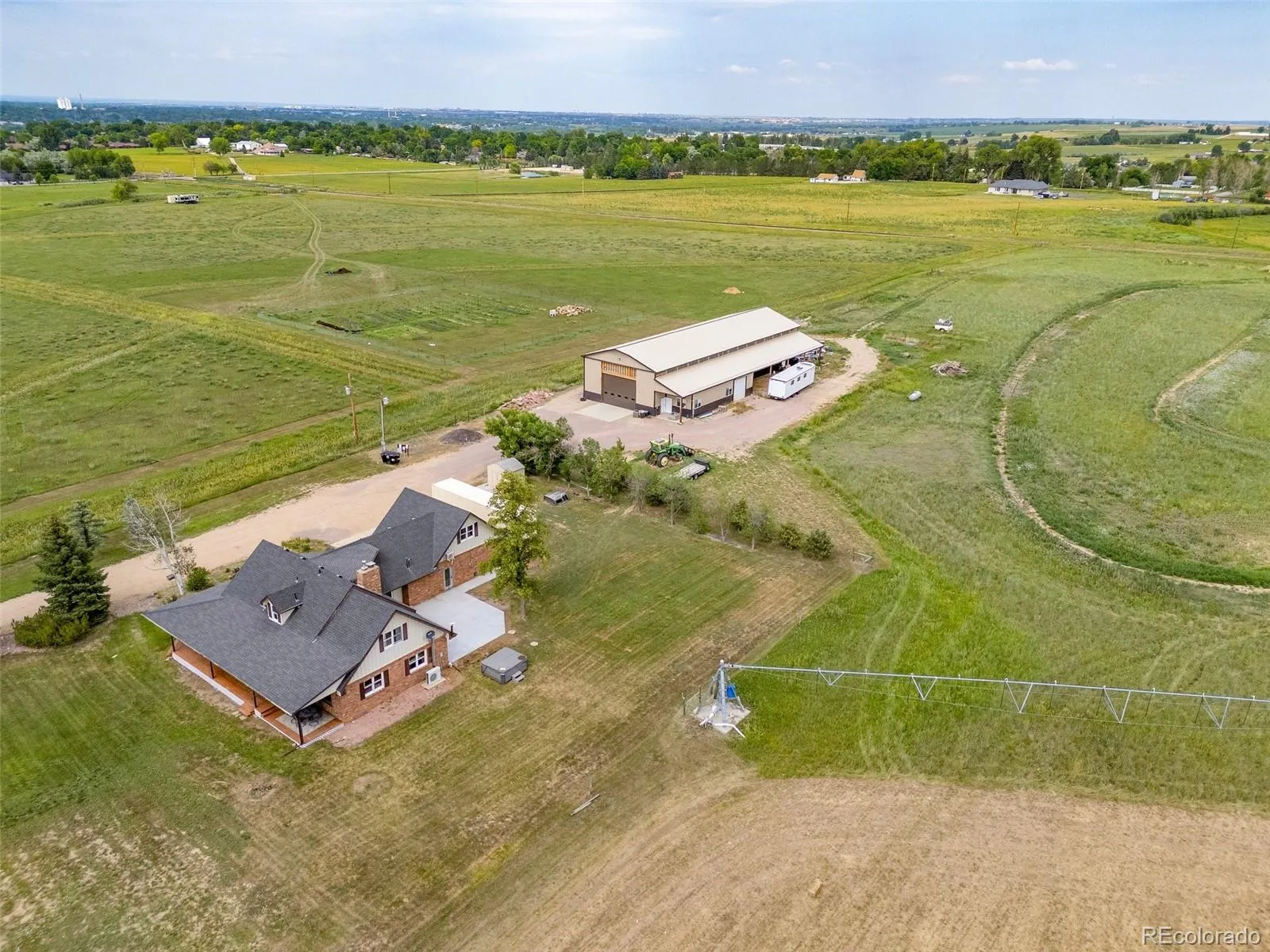Welcome home to a fabulous country estate located on 39.25 acres filled w/ mature trees and mountain views! Follow the tree lined drive to be greeted by your new home, an updated farmhouse designed for comfortable living in a serene setting. Newly finished, spacious main floor primary suite offers mountain views to enjoy with your morning coffee on the covered porch. The large en-suite has a walk-in shower, two sinks and plenty of storage making for the perfect retreat. Remodeled kitchen is a chef’s dream w/ a large island, newer SS appliances, granite countertops and plenty of storage. The dining area provides space for large family gatherings. Family/living room with pellet stove is perfect for Colorado winter days. The large mudroom features laundry, sink, 3/4 bathroom. Flex space is currently an salon with epoxy floor but easily convertible. Upstairs find a huge loft area, a second primary suite with en-suite bathroom, 2 additional bedrooms and full bathroom. Step outside, fall in love w/ the massive shop/detached garage building. A mechanics/car enthusiast or equestrians dream at 40 x 120 x 20 ft tall with large motorized garage door for easy access for RVs, farm equipment and more. From woodworking, welders, at-home businesses and more, this shop has endless possibilities. Featuring concrete floors w/ in-floor heat, electrical, water and separate propane tank make this well illuminated workspace ideal for any craftsperson or hobbyist. Attached 12×40 workshop offers 3/4 bath and laundry w/ washer/dryer. A covered area for paddocks or equipment storage. Approx 20 acres is currently planted for grass hay w/ yield of 1,500 bales. Motocross track and large pond is ideal for the outdoor enthusiast. Conveniently located w/ easy access to downtown Loveland, Berthoud and Fort Collins, just minutes to Hwy 287. Unincorporated Larimer County, NO HOAs, No Metro District, potential to subdivide. Home website here https://tinyurl.com/5yerz62e