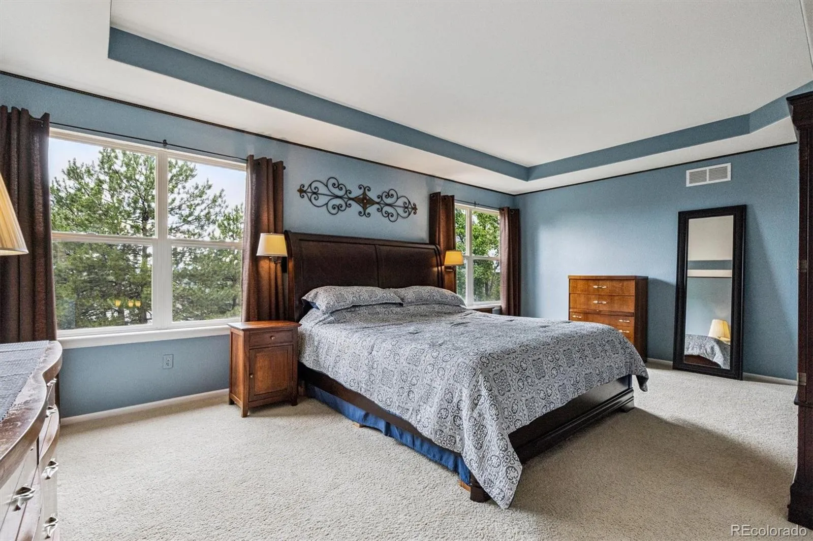 Step outside to discover a covered deck with treetop views that stretch to the Rockies. Gather friends around the fire pit, relax in the built-in hot tub, or savor dinner surrounded by birdsong. The yard is just as special, featuring a peaceful water feature, a flat lawn for play, and multiple spaces for entertaining or simply enjoying Colorado’s sunrise-to-sunset beauty.