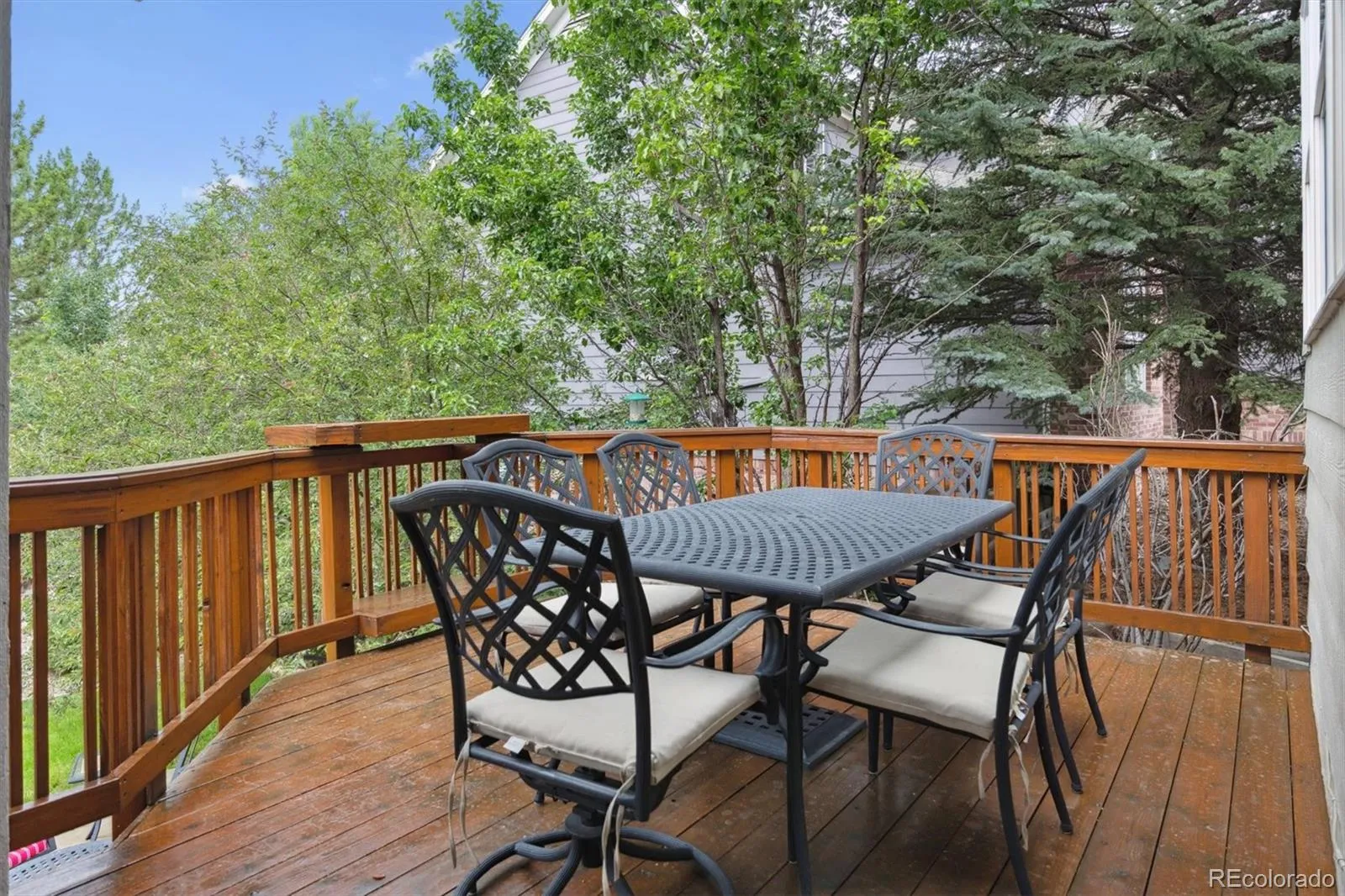 Step outside to discover a covered deck with treetop views that stretch to the Rockies. Gather friends around the fire pit, relax in the built-in hot tub, or savor dinner surrounded by birdsong. The yard is just as special, featuring a peaceful water feature, a flat lawn for play, and multiple spaces for entertaining or simply enjoying Colorado’s sunrise-to-sunset beauty.