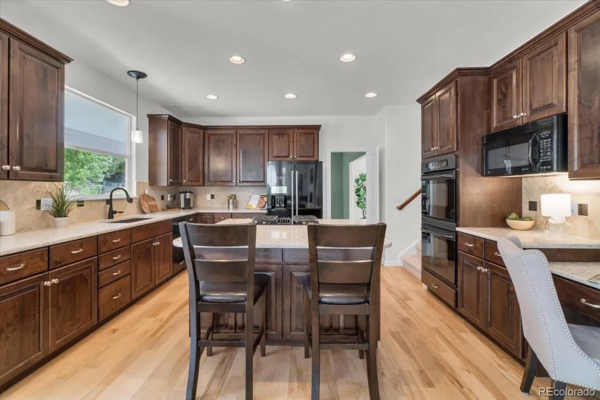 Upstairs, the primary suite serves as a true retreat with dual walk-in closets and a spa-like en-suite bathroom. A Jack-and-Jill bathroom connects two additional bedrooms, while a fourth bedroom enjoys its own private en-suite—an ideal setup for guests who want their own space. Soaring ceilings and expansive windows throughout the home create an airy, inviting atmosphere that highlights every detail. The outdoors are just as remarkable. The backyard has been designed to feel like a personal sanctuary, with mature trees, vibrant flowers, and a tranquil waterfall that sets the scene for relaxation or entertaining. Whether you’re sipping coffee on the porch, dining al fresco, or hosting gatherings, every corner of this property is designed to be enjoyed. A spacious three-car garage provides ample storage for vehicles, gear, and Colorado adventures. Living in Highlands Ranch means access to award-winning schools, including nearby elementary options, plus a network of trails, parks, and four world-class recreation centers that offer pools, fitness, and community events. Conveniently located near shopping, dining, and major highways, this home combines neighborhood charm with everyday convenience.