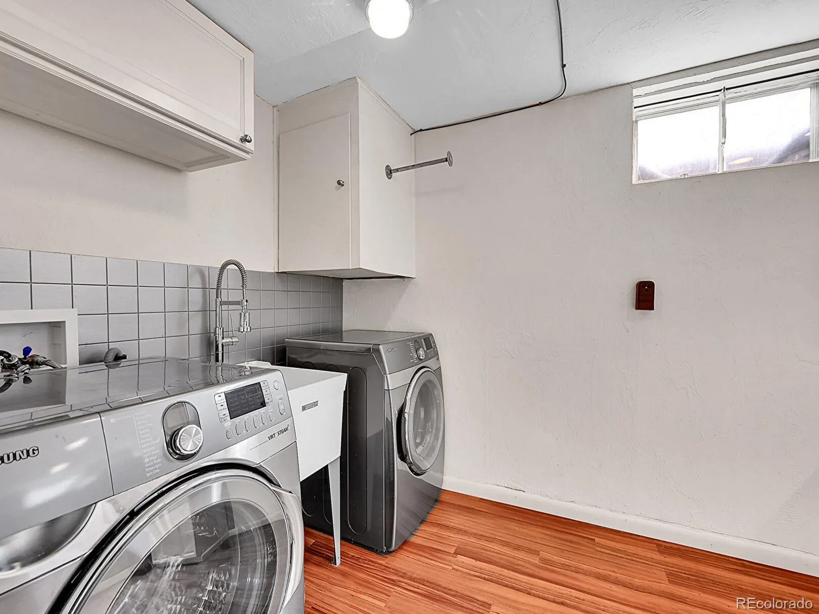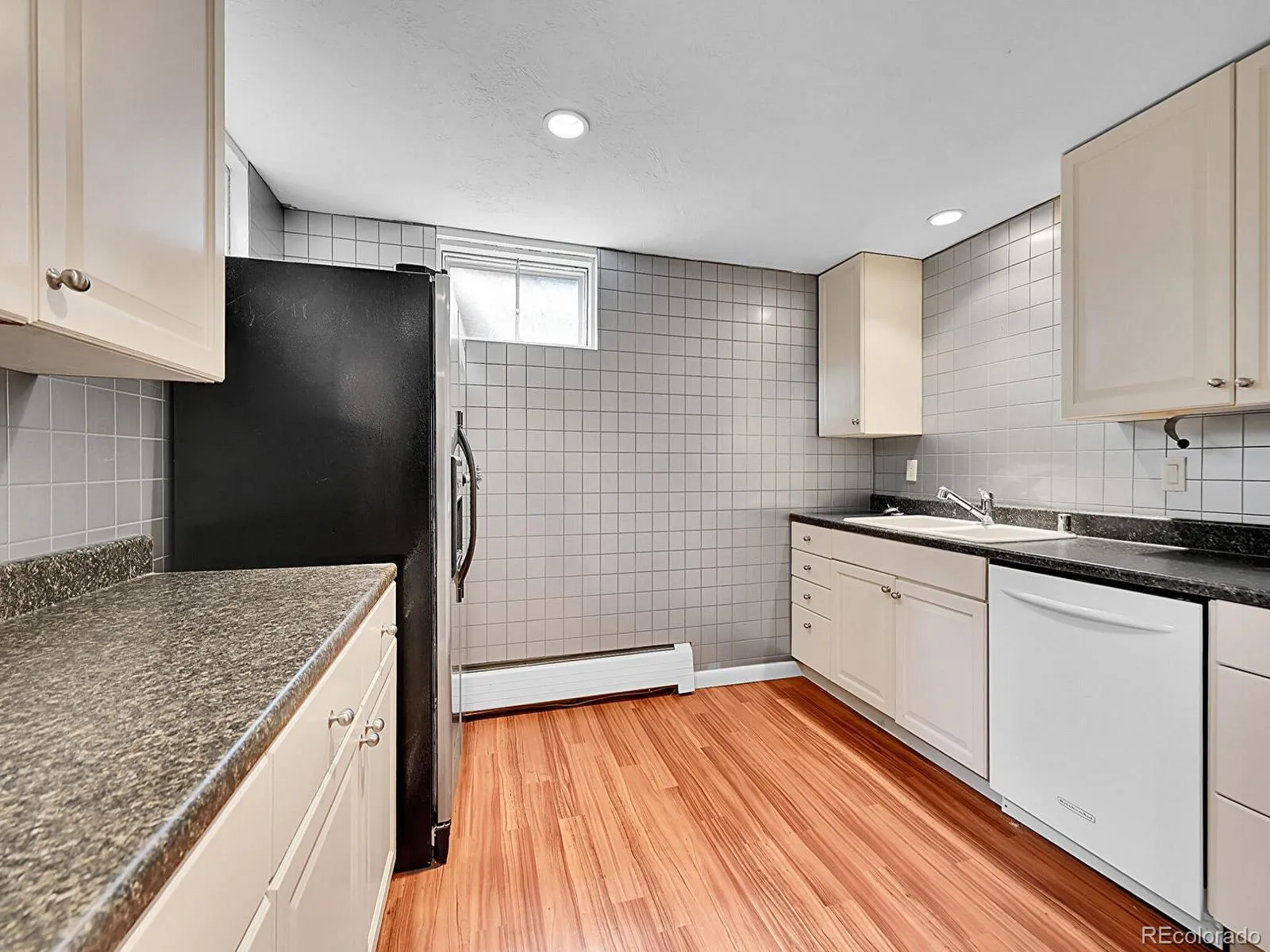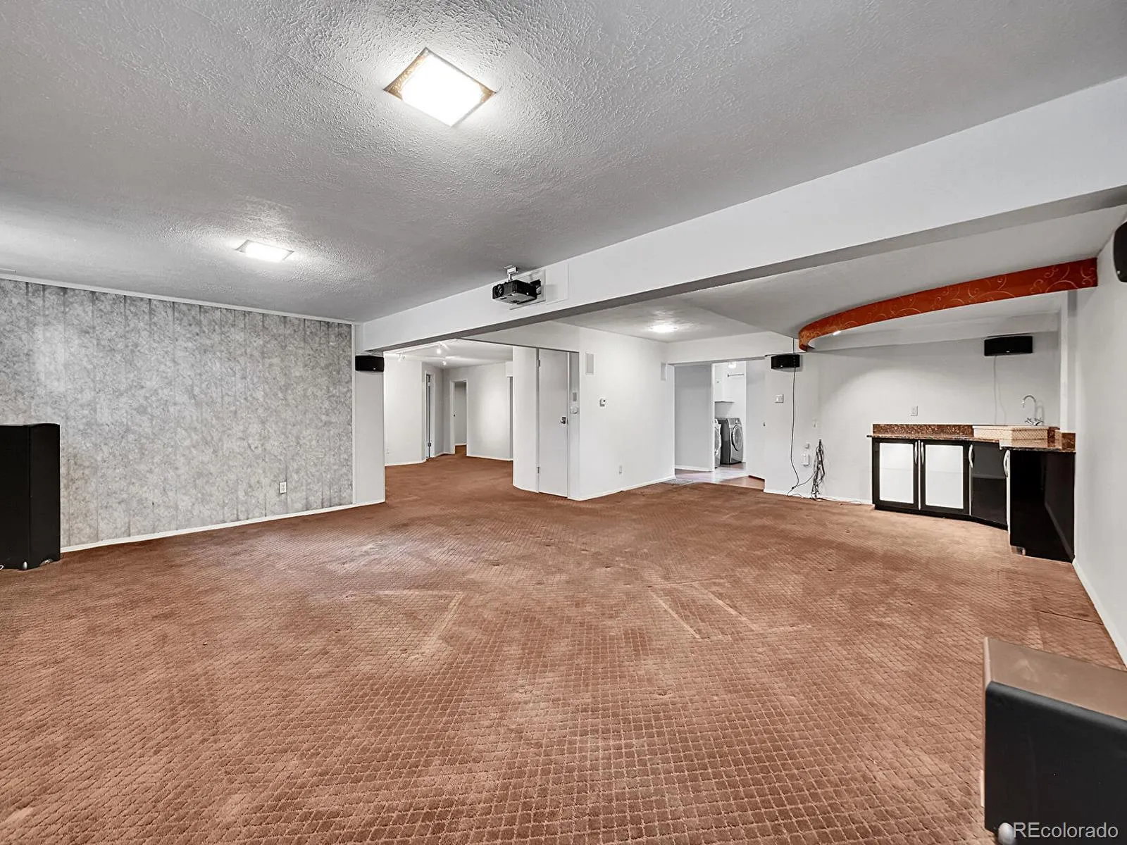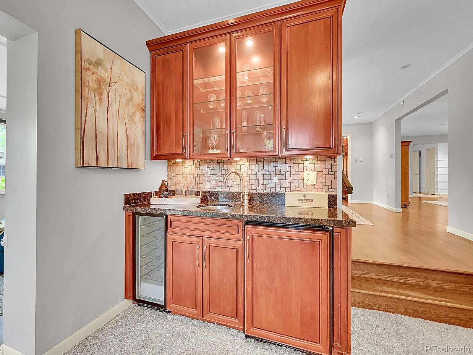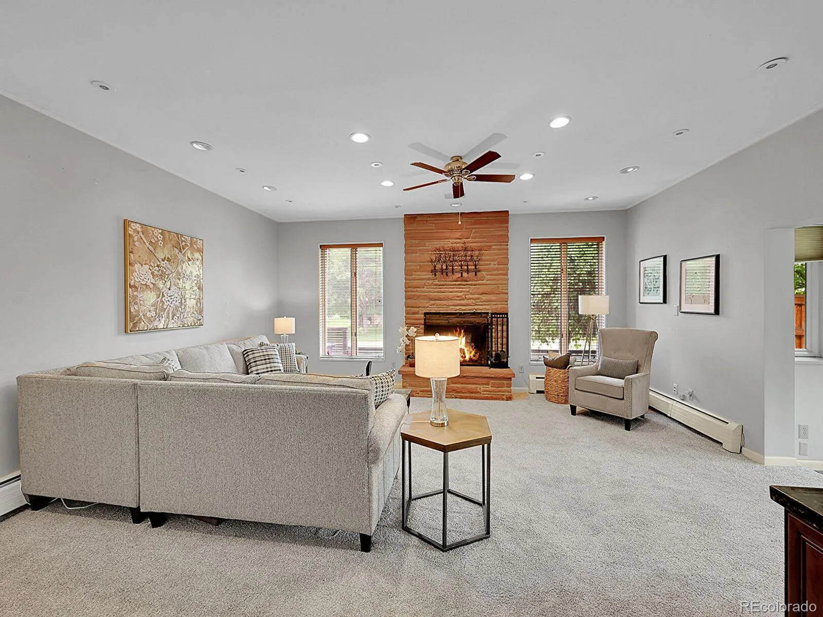 Nestled on a lush corner lot, this Mid-Century gem offers charming Mayfair Park living with a multigenerational layout! Brick pathways framed by greenery and lantern-topped pillars offer a first glimpse of the home’s welcoming charm. Anchored by hardwood floors and bathed in natural light, the main level flows effortlessly from a spacious living room—a natural gathering spot filled with sunlight—into an elegant dining area framed by a bright bay window and illuminated by a classic chandelier. A chef-worthy kitchen awaits with granite countertops, double ovens, a 6-burner range with down-draft, and sleek stainless-steel appliances—opening directly to the backyard for al fresco dining. A few steps down reveal a warm family room anchored by a rustic stone fireplace, a half bath, and a handy wet bar—flowing into a bright sunroom with elegant tile flooring and direct access to the backyard, creating a peaceful retreat. Main-level living continues down the hall to the spacious primary bedroom featuring natural light, a seating area, walk-in closet, and an elegant 5-piece ensuite with double sinks, skylight, spa-like jet tub, and glass shower. Two well-appointed bedrooms share a nearby full bath and laundry room, creating a functional and comfortable layout. The finished basement offers a refined private retreat with a spacious rec room, custom built-ins, state-of-the-art cinema room, sleek wet bar, and bespoke wine cellar. Two bedrooms share a full bath, laundry, and kitchen nook with sink, dishwasher, and fridge, creating an ideal private layout for multigenerational living. Relax in the serene backyard oasis with covered patio, thriving garden beds, mature trees, and grilling area. Owned solar means no electric bills, plus extra attic insulation, new roof, new windows, and new fencing. With Crestmore and Crescent Parks, Wings Over the Rockies Museum, and the acclaimed International School of Denver just steps away.