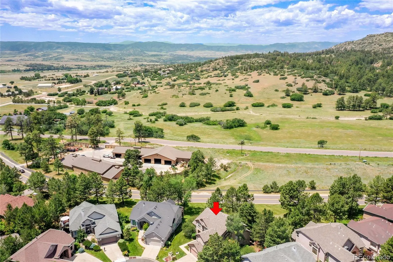 Located in the coveted Village at Castle Pines community, this 5 bed | 5 bath retreat is a true mountain view sanctuary. The inviting foyer leads to an updated open concept family room | kitchen. The family room features a stone fireplace surround, custom shelves and a beautiful view of the Cherokee Ranch. Kitchen highlights include granite counters, two dishwashers, large gas stove, double over, tile backsplash, walk in pantry and a large breakfast nook. All seamlessly flowing to a large deck with retractable sunshades that floats among the trees. The patio overlooks the Cherokee Ranch open space where you can enjoy watching beautiful sunsets and countless wildlife. This residence offers a main level primary bedrooms with en suite bathroom. Completing the main level are a private study, powder room and updated laundry room. Continuing upstairs are 3 large bedrooms and two updated bathrooms. The lower level opens to a great room with a wet bar featuring granite tile counters and beverage fridge. There is plenty of space to entertain, play games, workout, create a home office or relax. The fifth bedroom is located in the basement with a large on-suite bath. Step outside to a concrete patio with large flagstone patio area and abundant privacy.