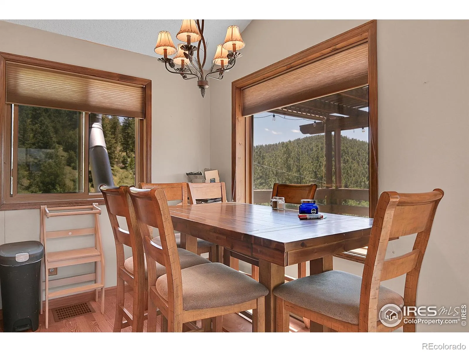 Yes- one of the only homes in the area with a large primary suite and walk in closet! Nestled in Wamblee Valley, just minutes from Evergreen. Set on a picturesque 1~ acre lot which feels much larger being surrounded by towering pine trees, this home provides the ultimate escape in a serene, wooded setting. Inside, the open-concept living and kitchen area boasts vaulted ceilings and an updated kitchen designed for easy entertaining. The spacious primary bedroom is a retreat with a cozy gas stove, vaulted ceilings, and dual walk-in closets. The remodeled primary bathroom is a luxurious haven, featuring custom cabinetry, a quartz countertop, and a beautifully tiled shower. The home exudes warmth, with three freestanding natural gas stoves and a recently installed wood stove, bringing the cozy charm of mountain living to life, especially during the colder months. The lower level features a spacious family room and a newly remodeled bedroom with an ensuite bathroom and private entrance, offering endless possibilities as a rental unit, office, or craft room. The oversized two-car garage, equipped with a new garage door, 220V service, and a gas hookup, is perfect for the home mechanic or hobbyist. The utility/laundry room is conveniently outfitted with a natural gas hookup and a backup generator connection, adding peace of mind. In spring and summer, the property comes alive with the vibrant colors of aspen trees, raspberry bushes, and wildflowers. Whether you’re sipping your morning coffee or enjoying a glass of wine, the wrap around deck offers sweeping views, with evening sunsets over Mount Evans providing a captivating backdrop. Located along a county-maintained school bus route with easy access to Hwy 285, this home is 25 minutes from the Denver metro area, and about an hour from DIA. Ski resorts are just a scenic drive away. This is the perfect combination of peaceful mountain living, stunning views, and a prime location in the highly sought-after Wamblee Valley.
