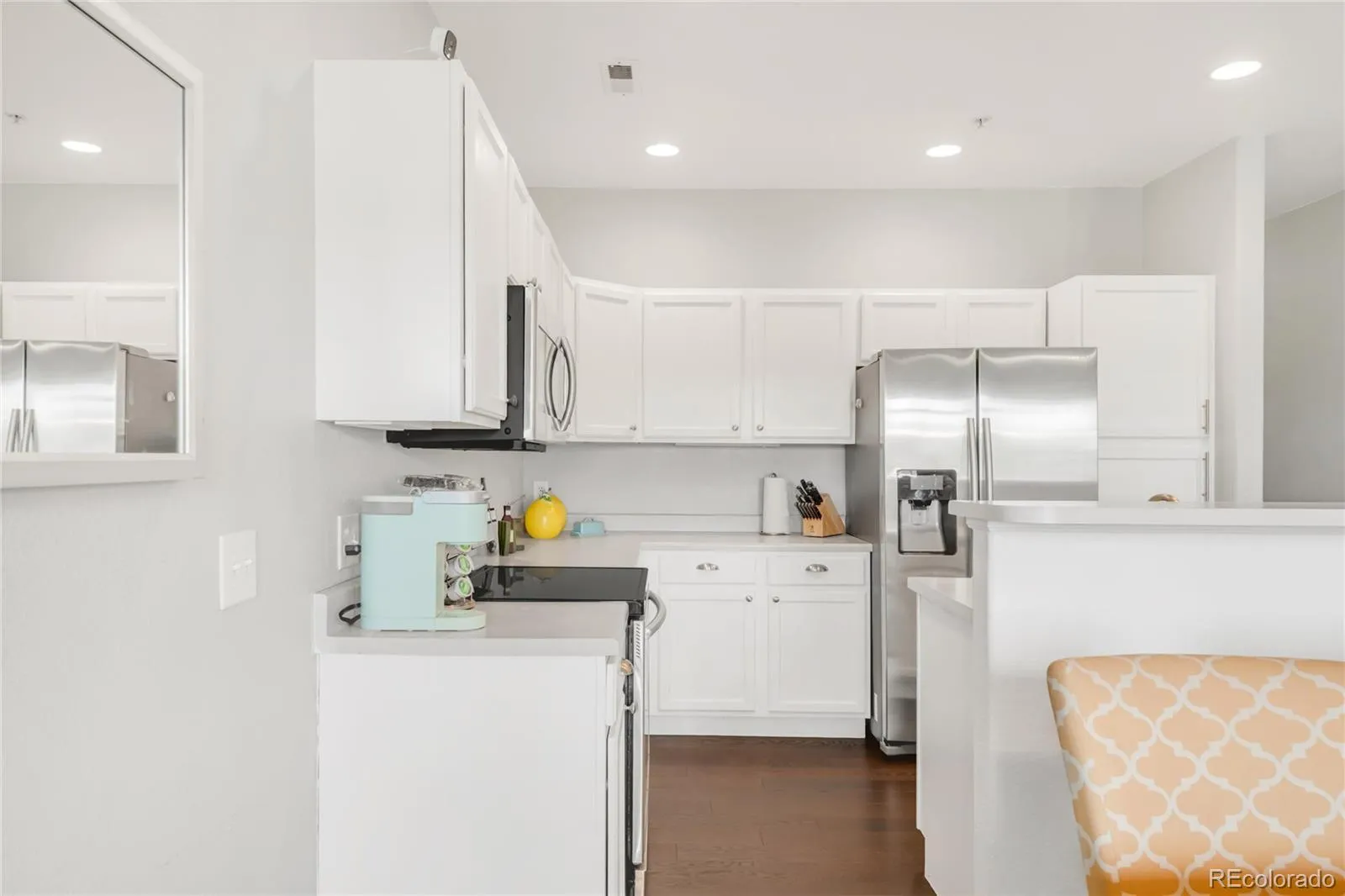 The well-appointed kitchen boasts an island, ample countertop space, and a pantry, complemented by stainless steel appliances, making it a chef’s delight. The thoughtfully designed layout places the bedrooms towards the back of the unit for added privacy.