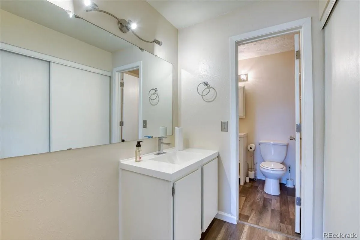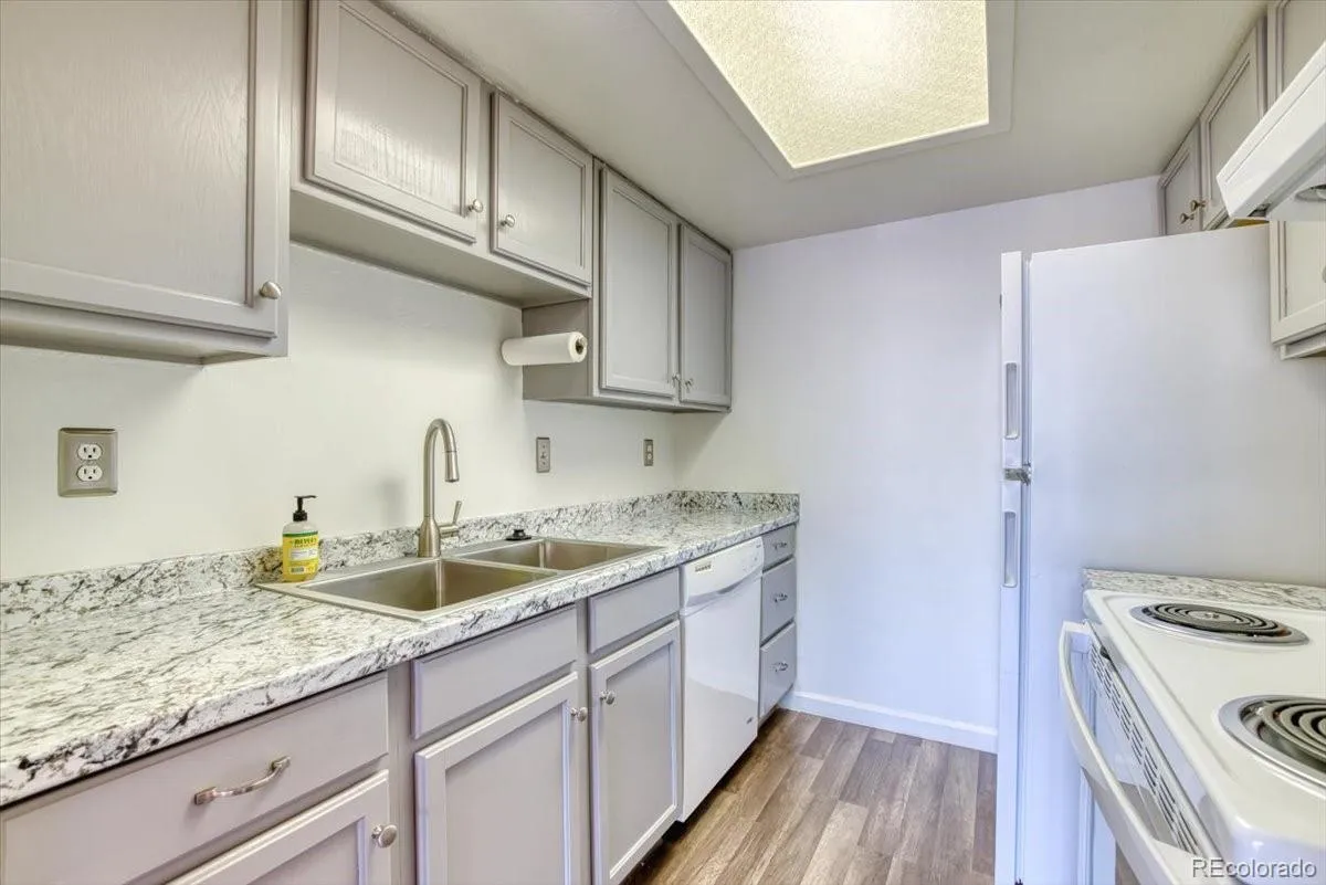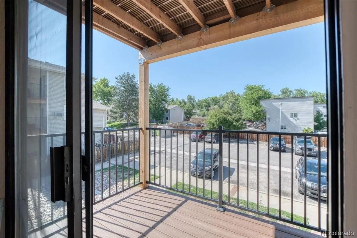 Welcome to this charming, updated condo ideally located in the heart of Arvada Gardens. This thoughtfully designed two-bedroom, one-bath home offers a functional and open floor plan with tasteful upgrades throughout. Step into the living room, where a cozy wood-burning fireplace creates a warm and inviting atmosphere. The adjacent kitchen features a brand-new stove, sink, and faucet, and flows into a dedicated dining area perfect for everyday meals or entertaining. The spacious primary suite includes a private balcony, a separate vanity area, and direct access to the full bathroom, which has been refreshed with modern fixtures, a tile surround, and mosaic accents. A second balcony, updated closet doors, and new lighting and hardware add to the home’s stylish appeal. Enjoy the convenience of an in-unit laundry room with a lightly used washer and dryer, plus a large private storage unit (D) located on the main level. This 2nd-floor unit is just steps from parking and within walking distance to Old Town Arvada, Memorial Park, the scenic Ralston Creek Trailhead and dozens of local shops, bars, and restaurants. With easy access to public transit, a high walk score, and a low-maintenance lifestyle, this home offers both comfort and convenience. The professionally managed HOA includes water, sewer, trash, snow removal, and access to amenities such as a clubhouse and maintained grounds. Perfect for a first-time buyer, downsizer, or investor—this home is a rare find in a highly desirable location.
